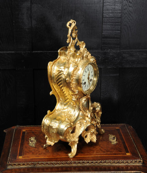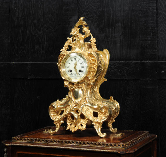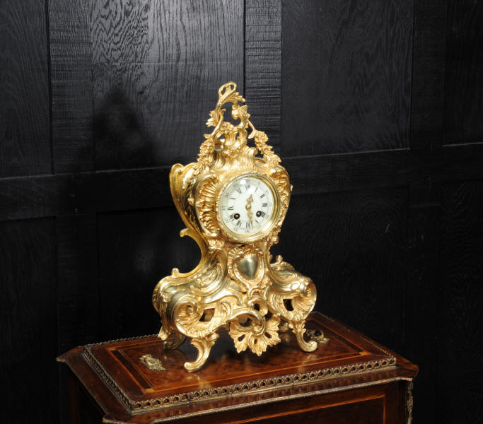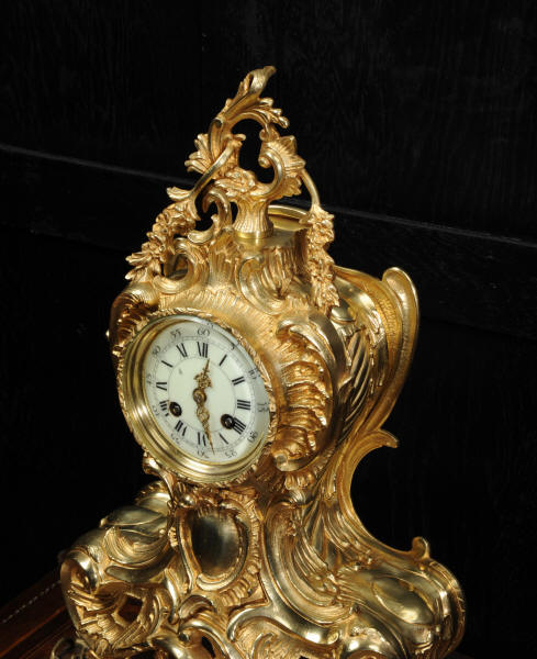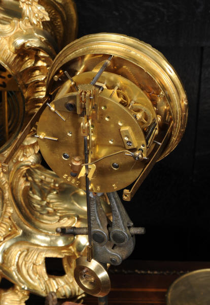 The French movement is of high quality and is by Malet et Cie of Paris. It is in excellent clean and running condition having been fully overhauled by our clockmaker. Pendulum is original. It runs for 8 days and strikes the hours and halves on a sonorous coiled gong. Click the video clip below to hear the gong and watch the clock running! The Paris clockmaker Malet et Cie is listed in Tardy Dictionnaire Des Horologers as working in the St-Antoine Arrondissement of Paris from 1850. Condition of the case is excellent, the original gilding is beautifully clean and bright with just occasional discolouration/tarnish and wear. The dial is also in excellent condition just some tiny nibbles to the winding holes.