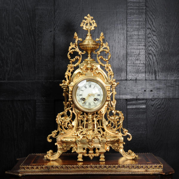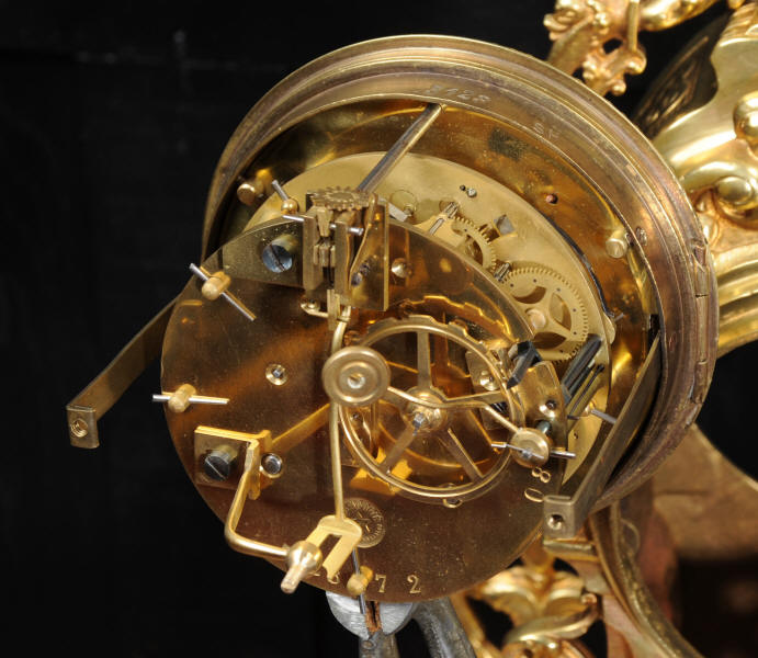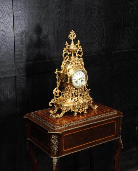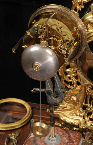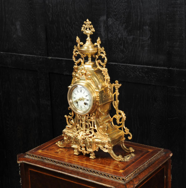 The dial is cream porcelain enamel on copper with separately lettered minute ring and finely cut gilt brass hands. The bezel is glazed with convex glass, the rear door is also glazed to allow the movement to be seen. The French movement is by A. D. Mougin and is of high quality. It is in excellent clean and running condition having been fully overhauled by our clockmaker. Pendulum is a replacement. It runs for 8 days and strikes the hours and halves on a bell. Click the video clip below to hear the bell and watch the clock running! Condition of the case is excellent, the original gilding is beautifully clean and bright with hardly any wear or discolouration and there are no losses. The dial is also in excellent condition with no damage.