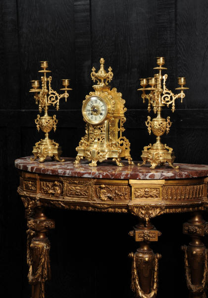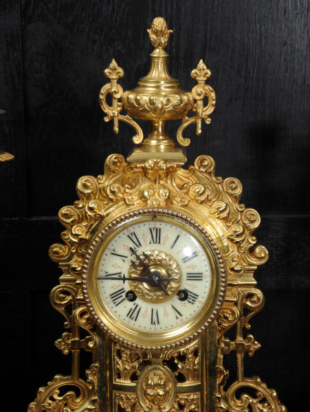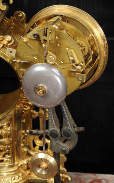 The dial is porcelain enamel on copper with a gilt bronze centre and blued steel hands. The French movement is of high quality and is in excellent clean and running condition having been fully overhauled by our clockmaker. Pendulum is a replacement. It runs for 8 days and strikes the hours and halves on a bell. Click the video clip below to hear the bell and watch the clock running!