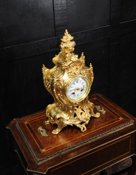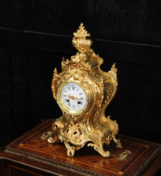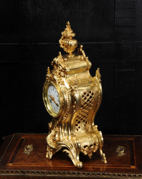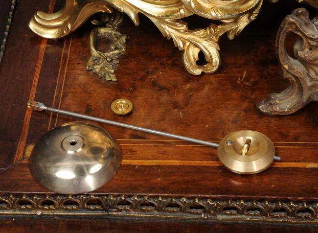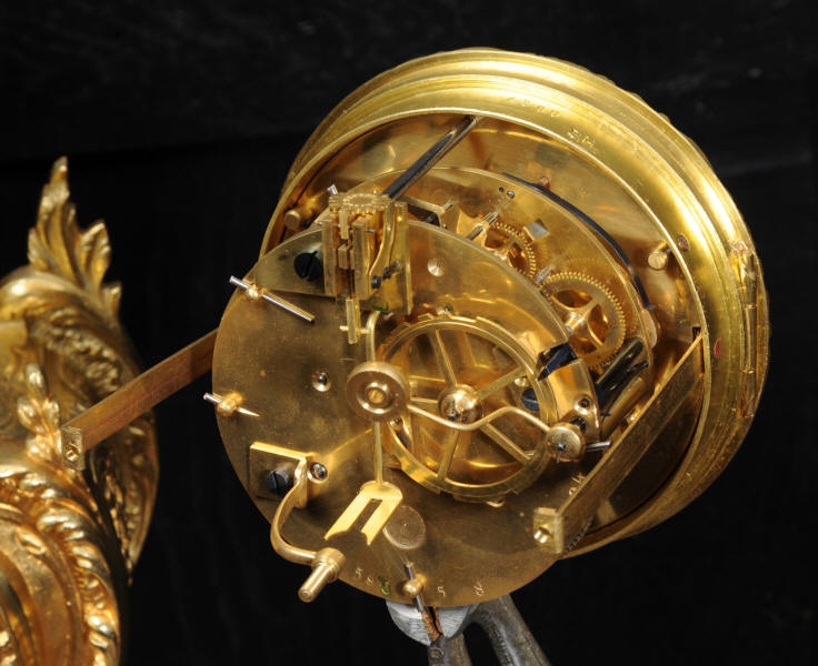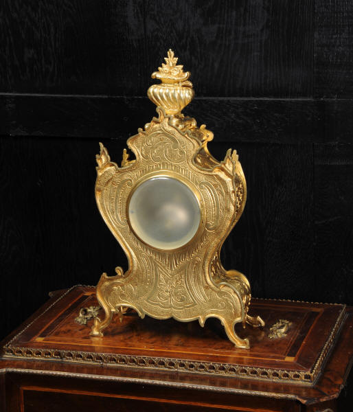The dial is porcelain enamel on copper with delicately cut gilt hands and separate minute ring. The rear door is glazed with frosted glass. The French movement is of high quality and has the Vincenti mark on the backplate. It is in excellent clean and running condition having been fully overhauled by our clockmaker. Pendulum is a replacement. It runs for 8 days and strikes the hours and halves on a bell. Click the video clip below to hear the bell and watch the clock running! Condition of the case is excellent, the original gilding is beautifully clean and bright with hardly any wear or discolouration and there are no losses. The dial is also in excellent condition with no damage.