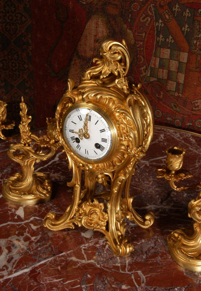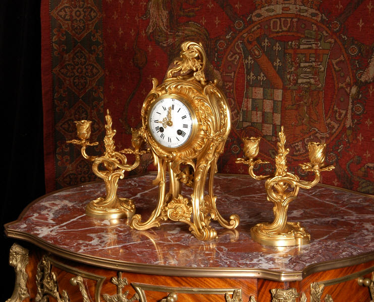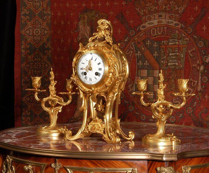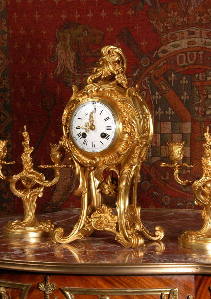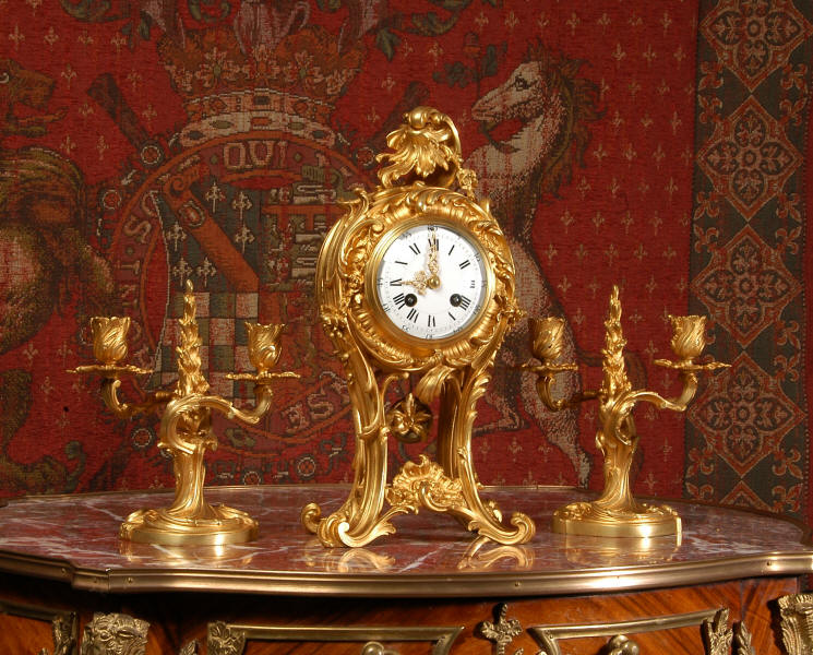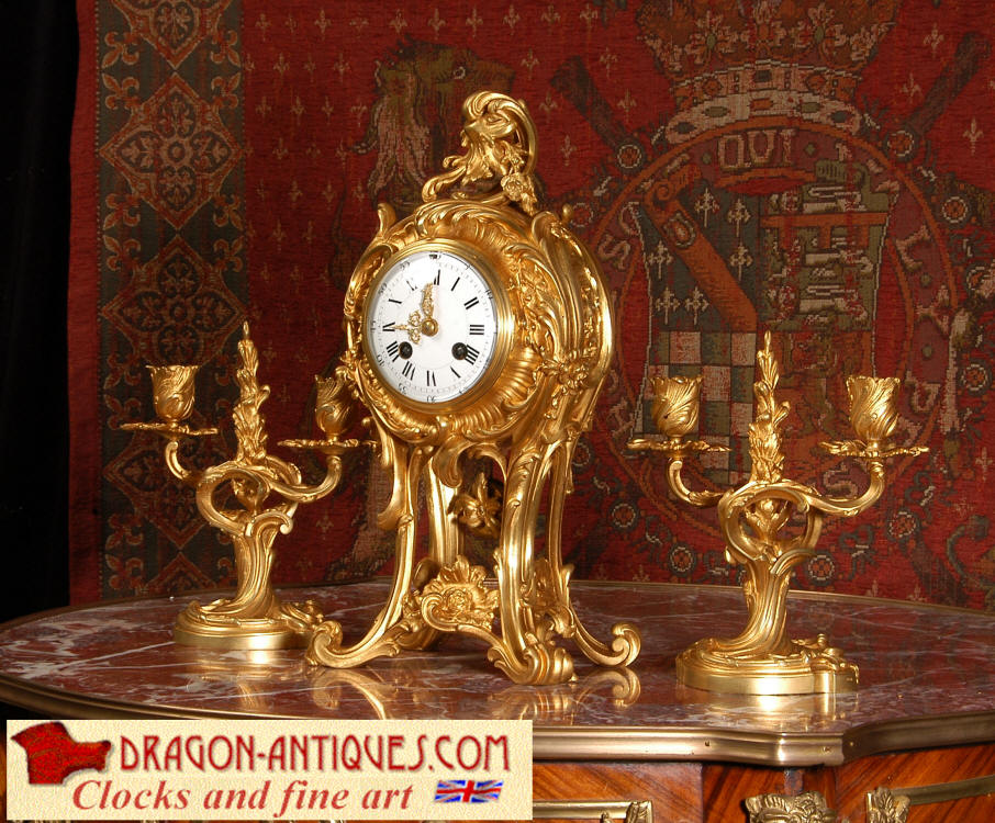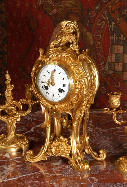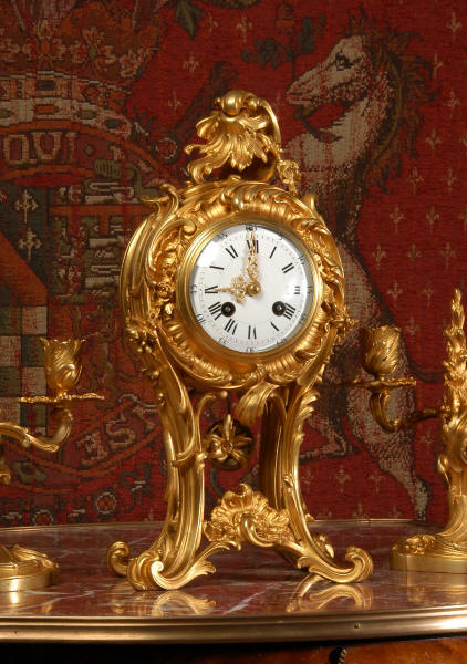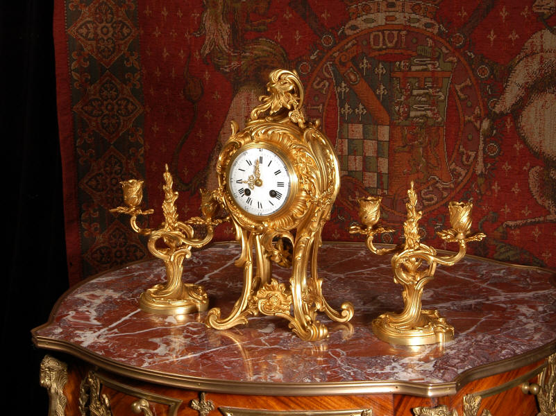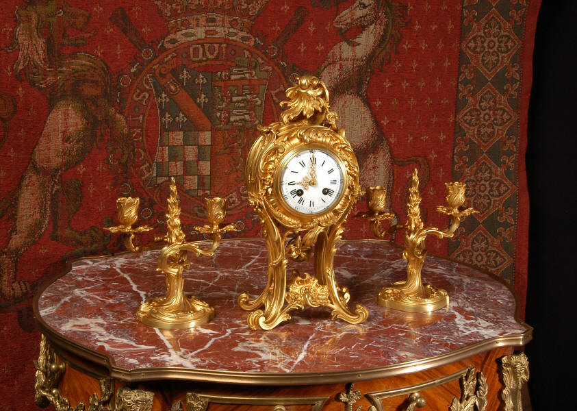 clock set, finely modelled in ormolu (fine gilded bronze). It is unusual in