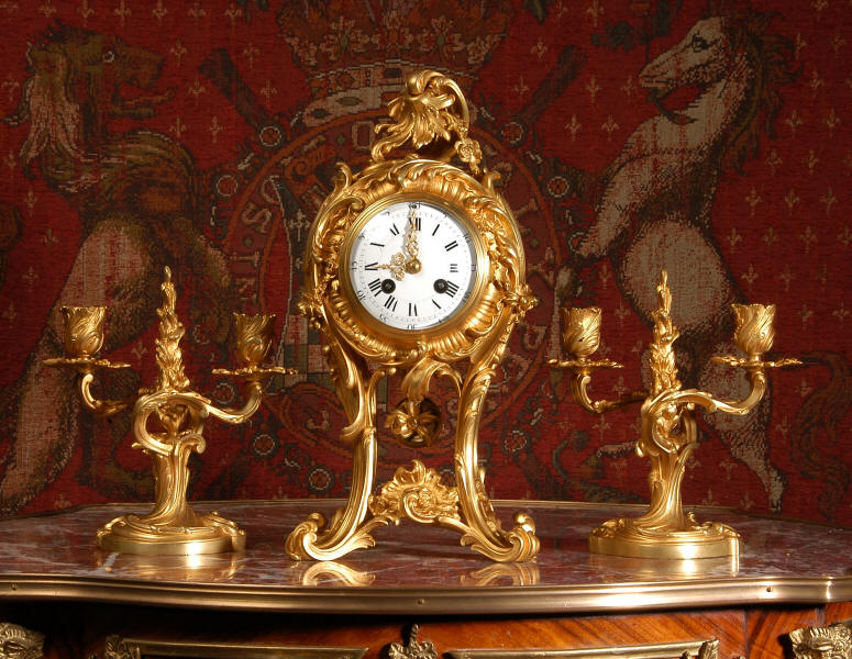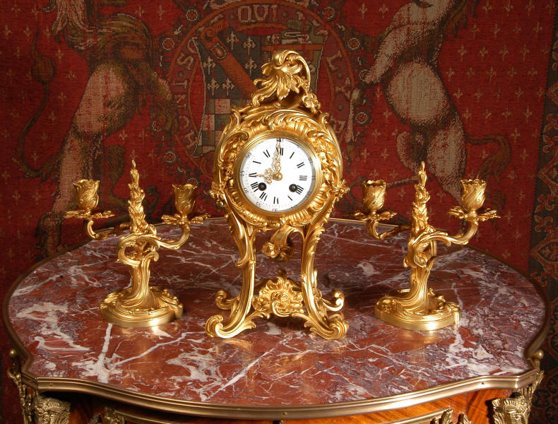 Rococo Ormolu Clock Set with Visible Pendulum. ~ Antique French
