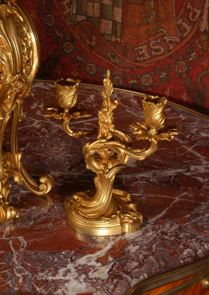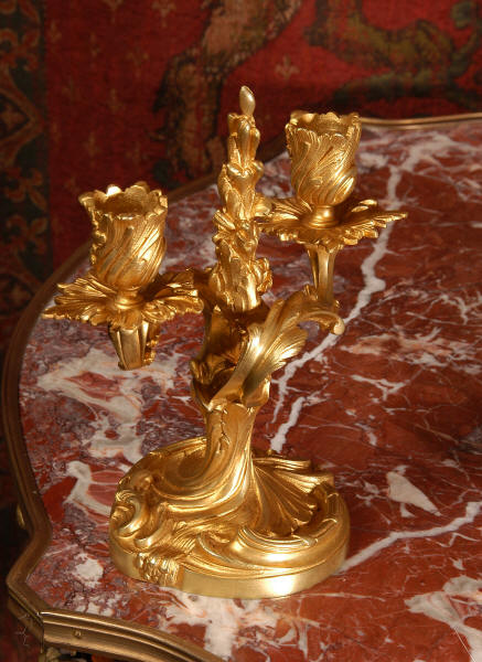 candelabra. It is a beautiful Rococo balloon shape, flamboyant acanthus legs