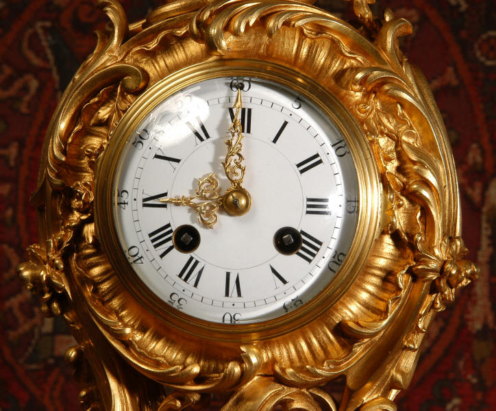gently below. Above the dial is an elaborate 'C' scroll and stylised floral