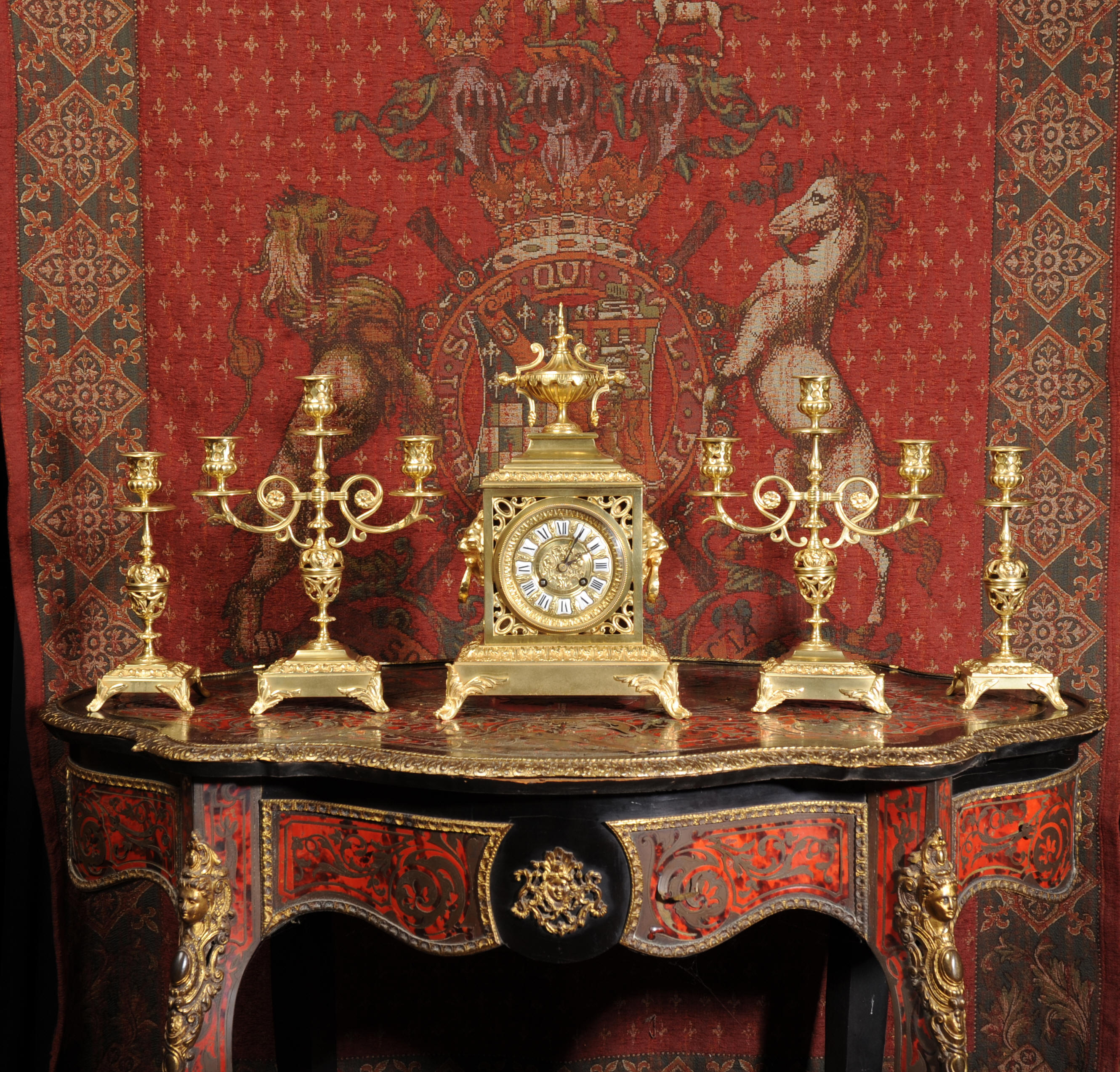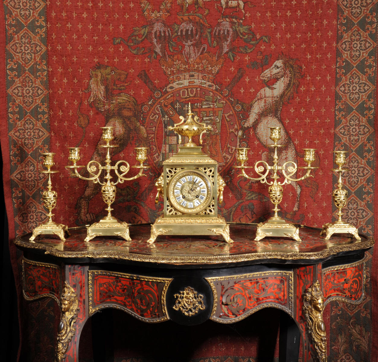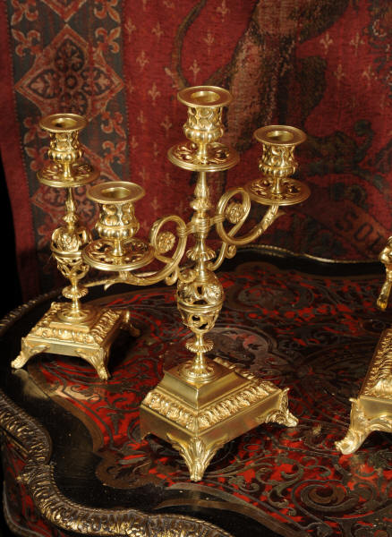 condition just a tiny nibble to the number 8 cartouche. Candelabra are slightly distorted. The set makes a stunning
