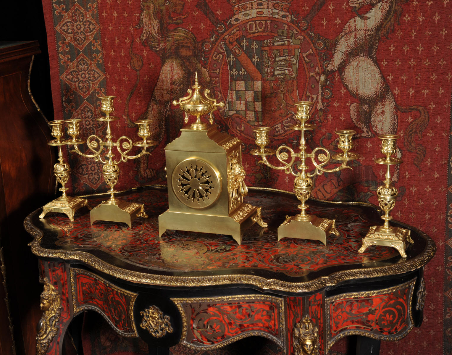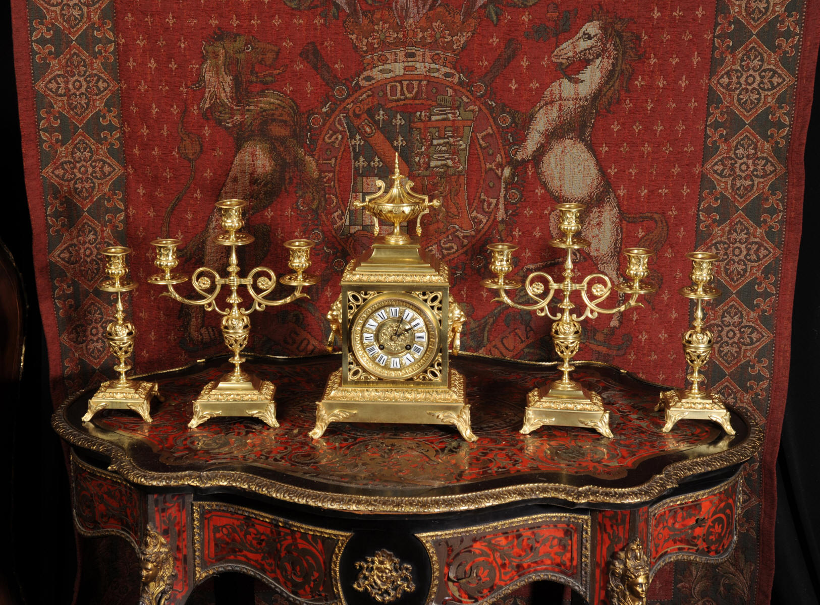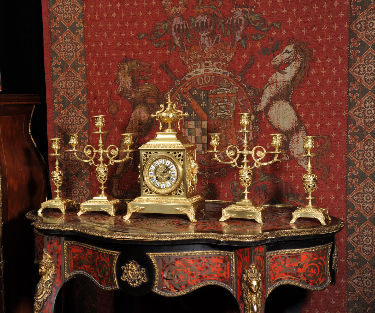 condition just a tiny nibble to the number 8 cartouche. Candelabra are slightly distorted. The set makes a stunning