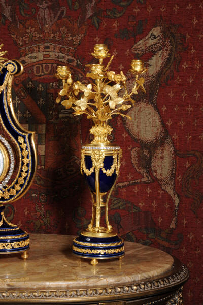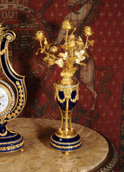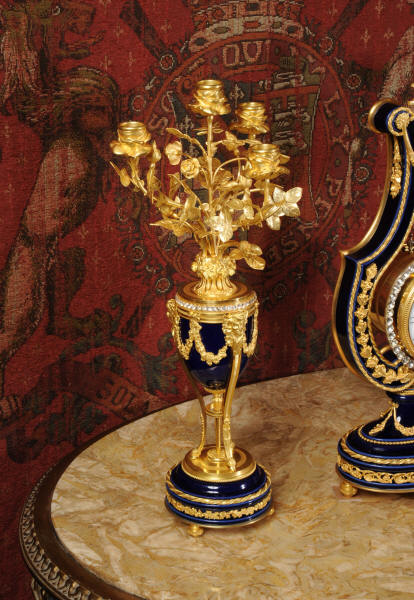 Condition of the case is excellent, the original gilding is beautifully clean and bright with just some very slight marks / discolouration. The porcelain is perfect with one or two tiny original firing marks. The dial is also in excellent condition with no damage. The set makes a stunning display as you can see below.