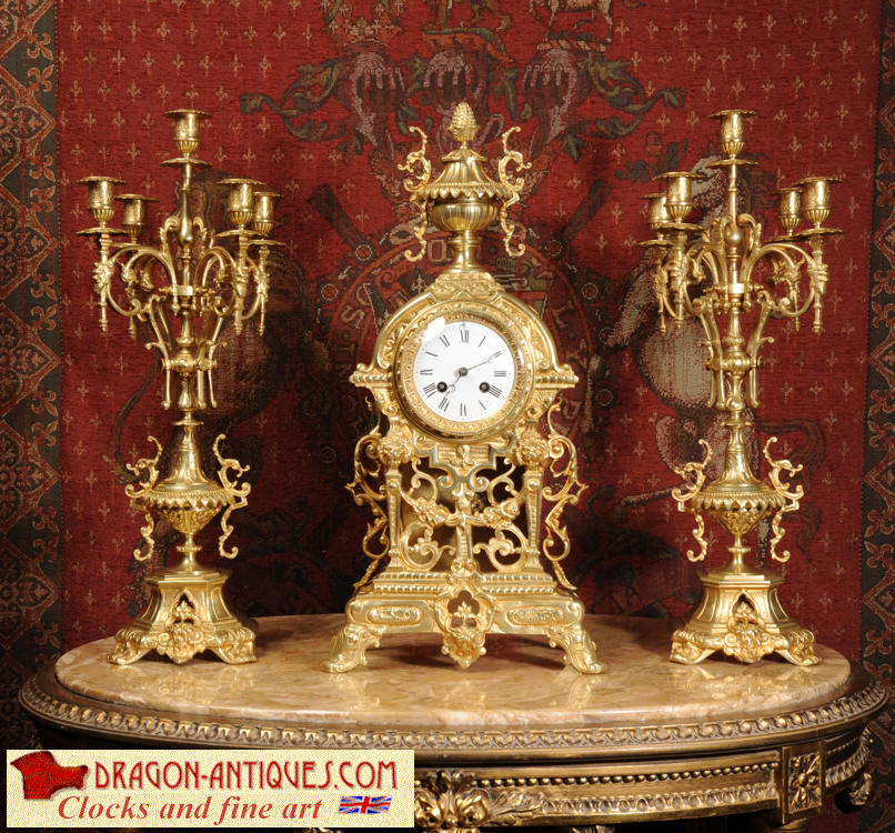 Condition of the case is excellent, beautifully clean and bright with hardly any wear or discolouration and there are no losses. The dial is also in excellent condition just some tiny nibbles to the edge at 10 O'clock and 3 O'clock that are only noticeable on close inspection. Candelabra are slightly distorted. The set makes a stunning display as you can see below.