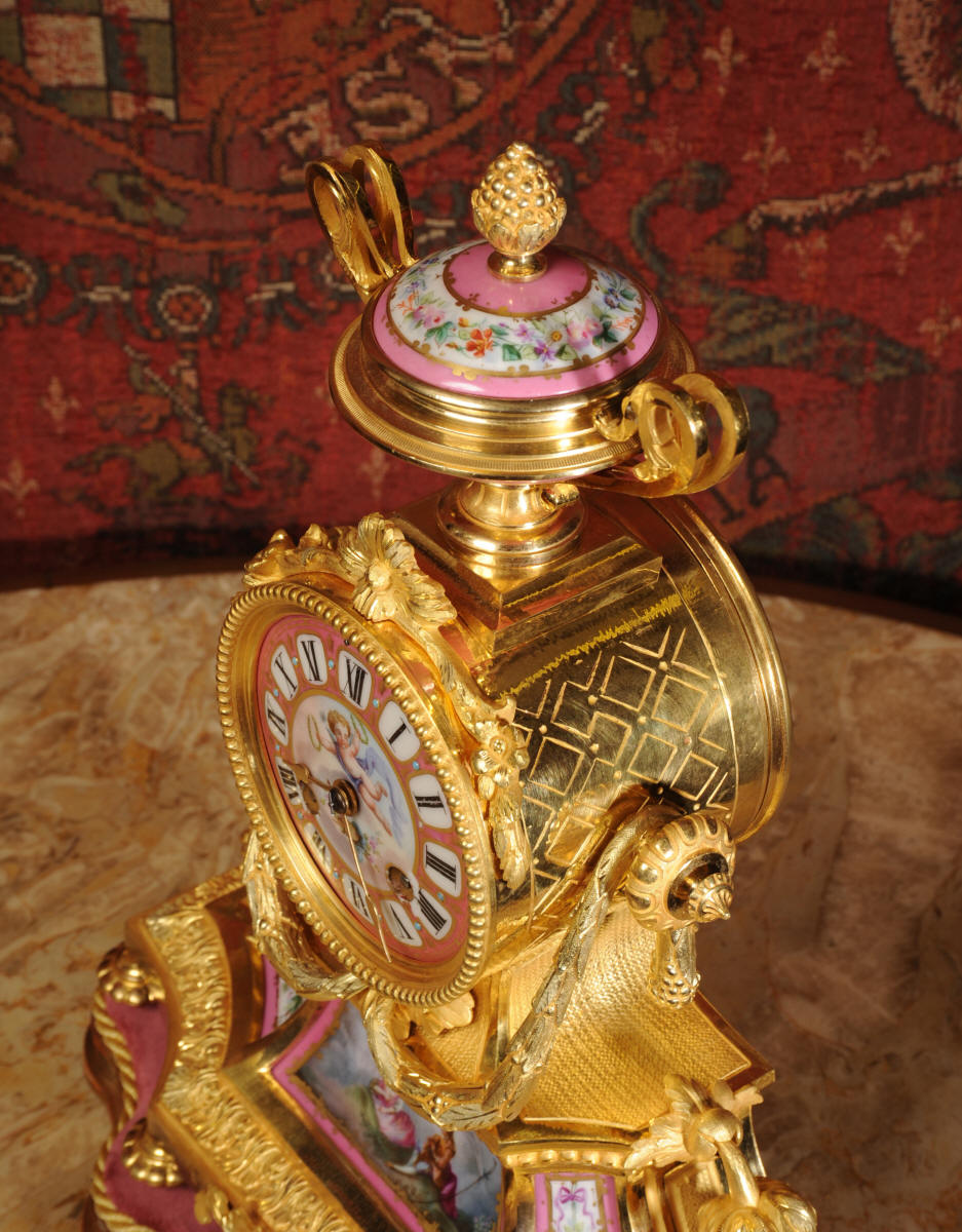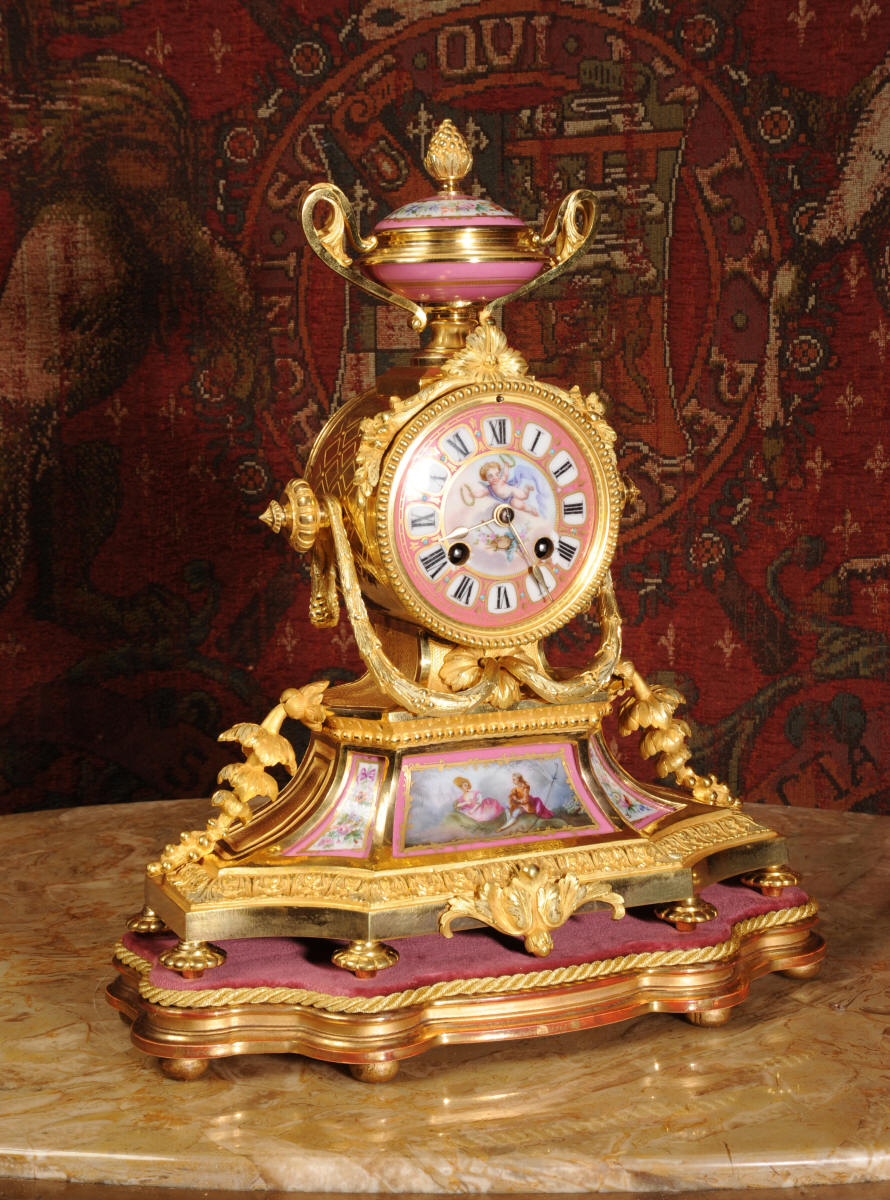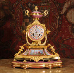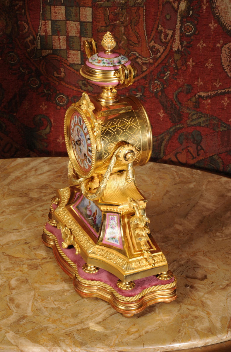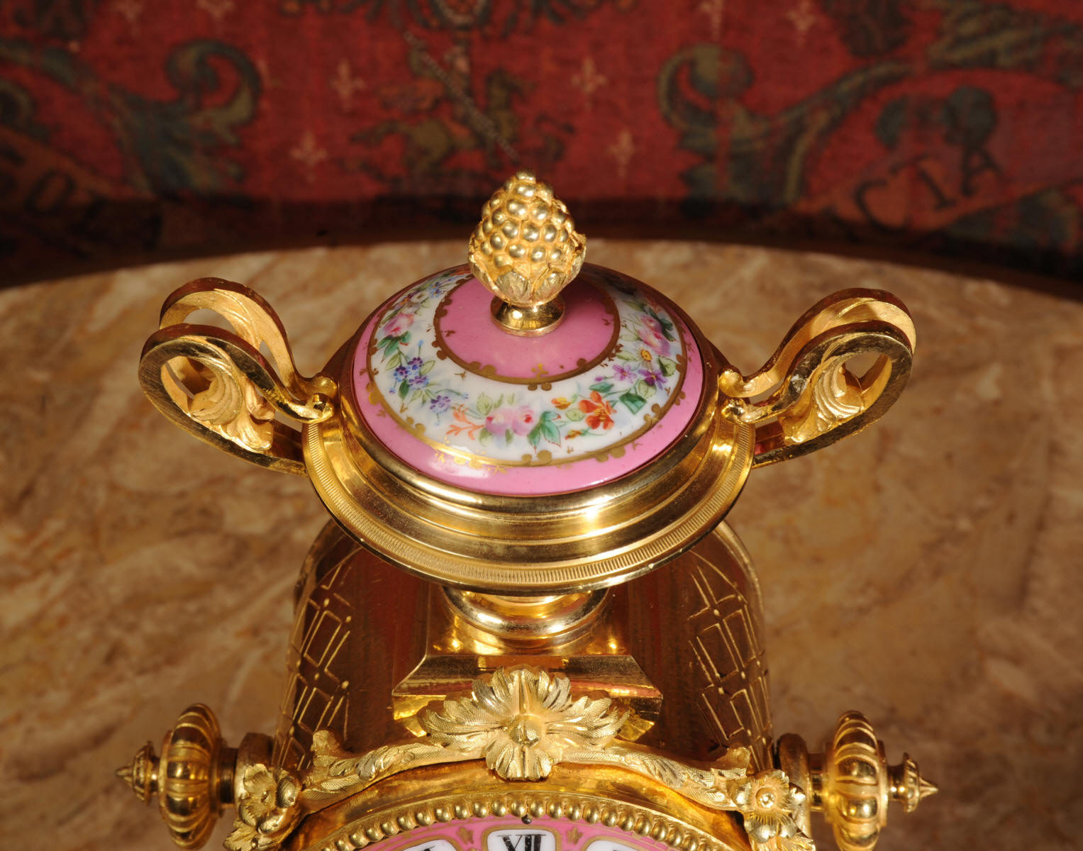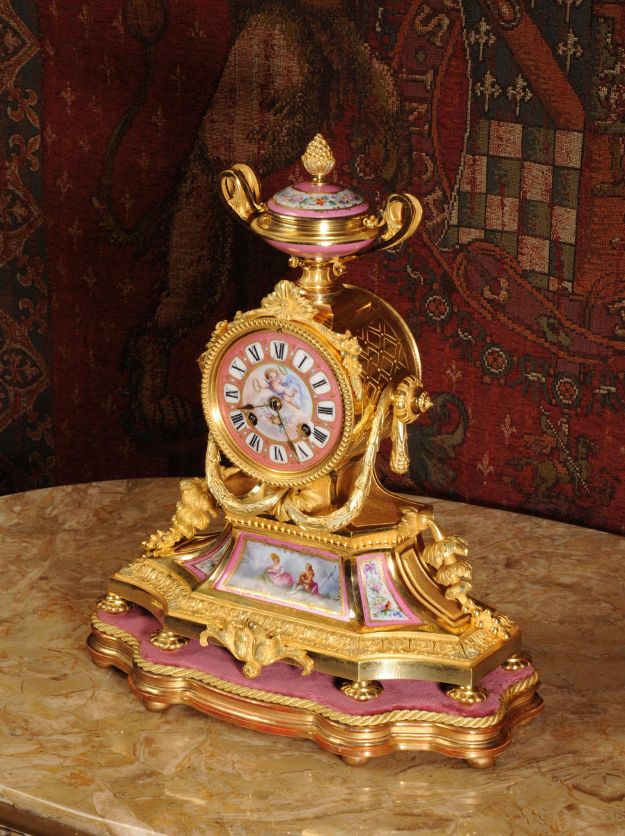 Freres Ormolu and Sevres Porcelain Boudoir Clock
