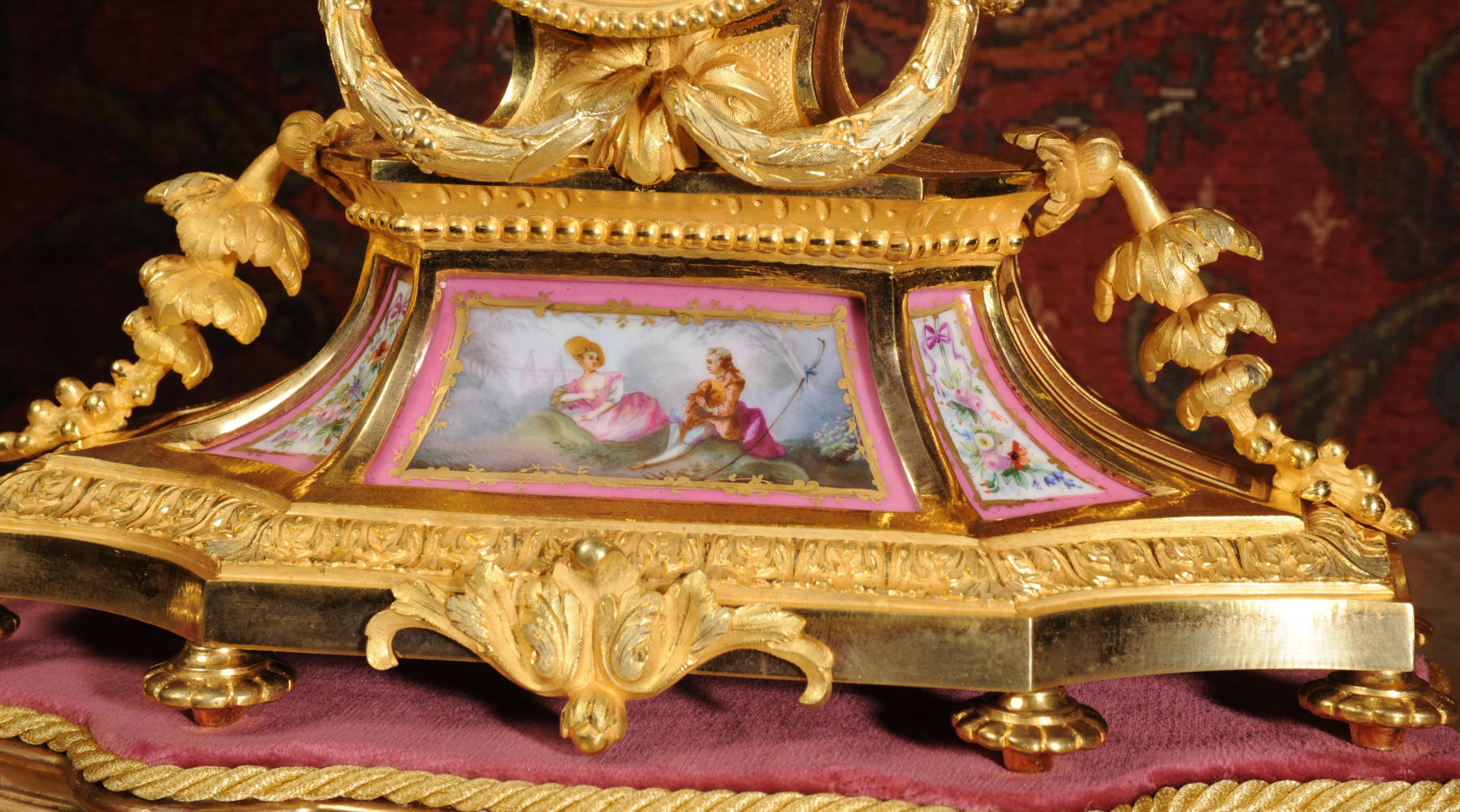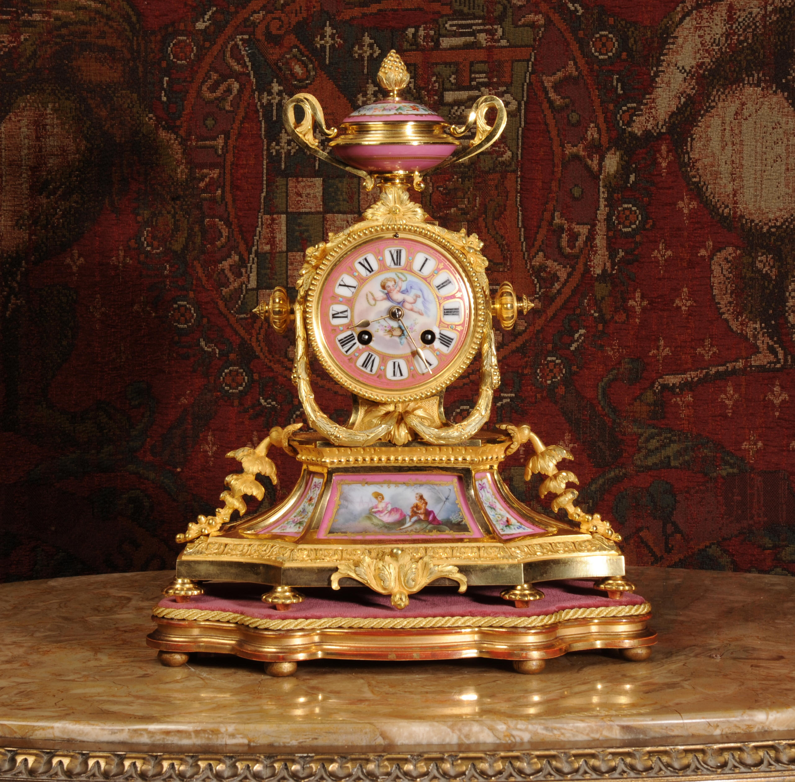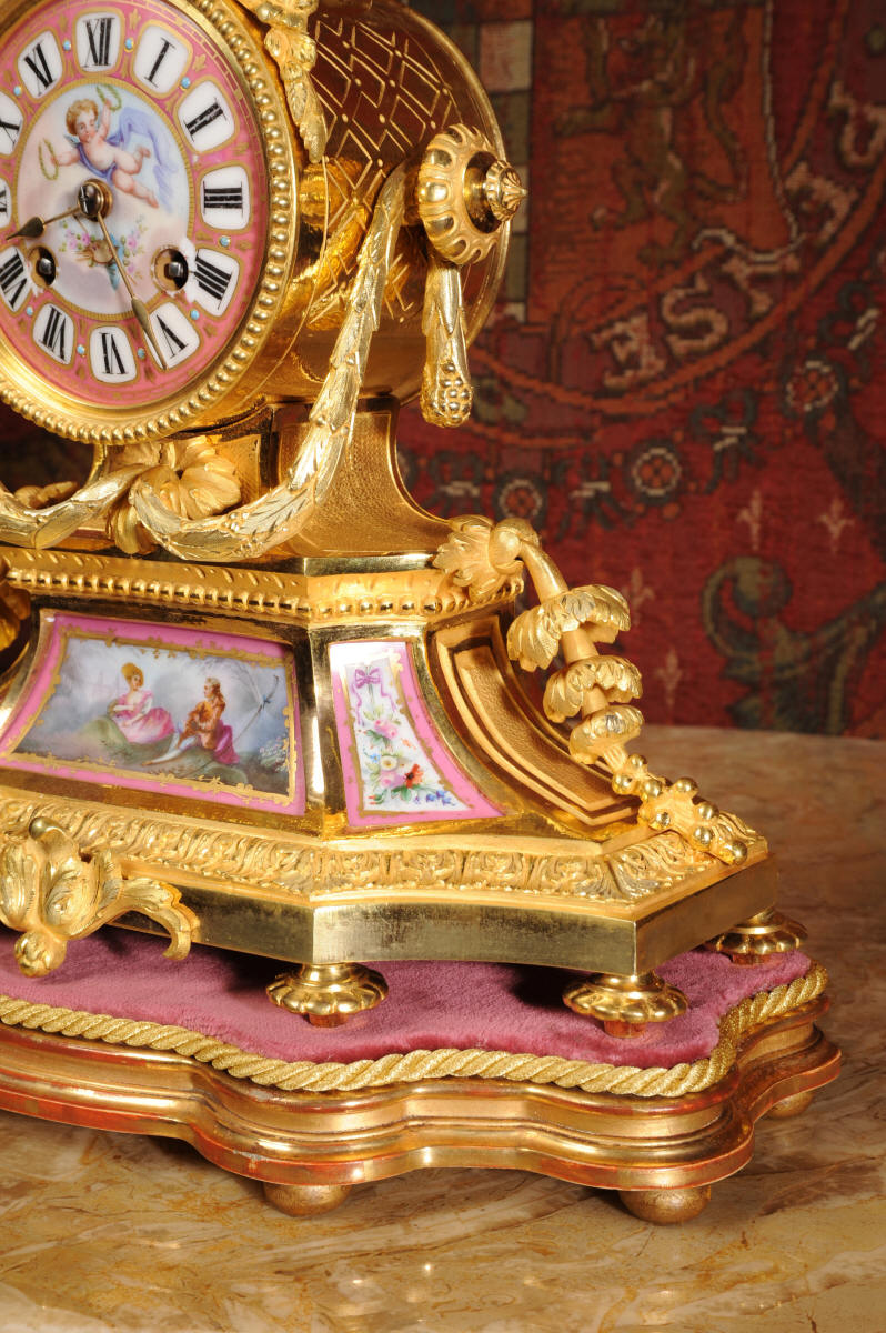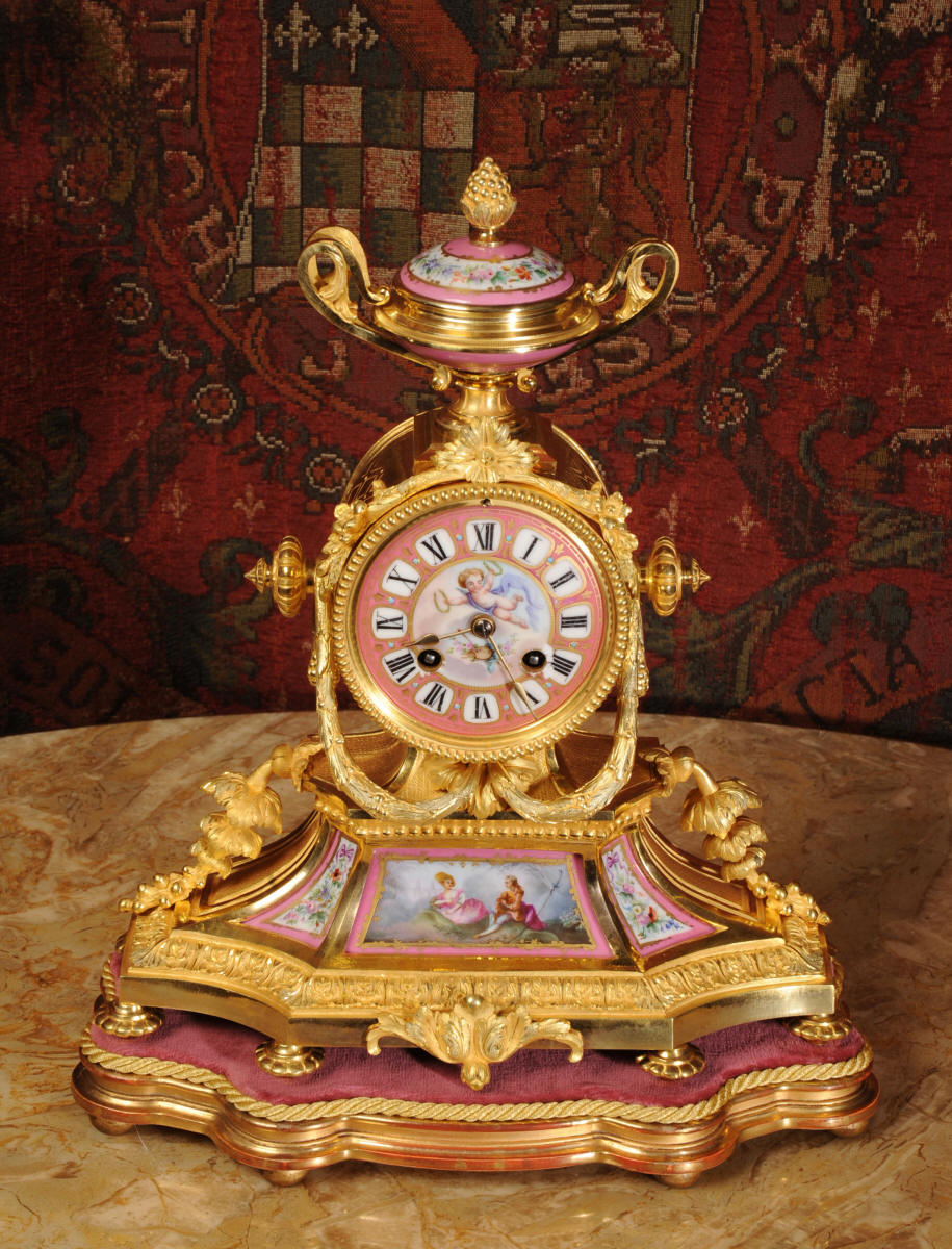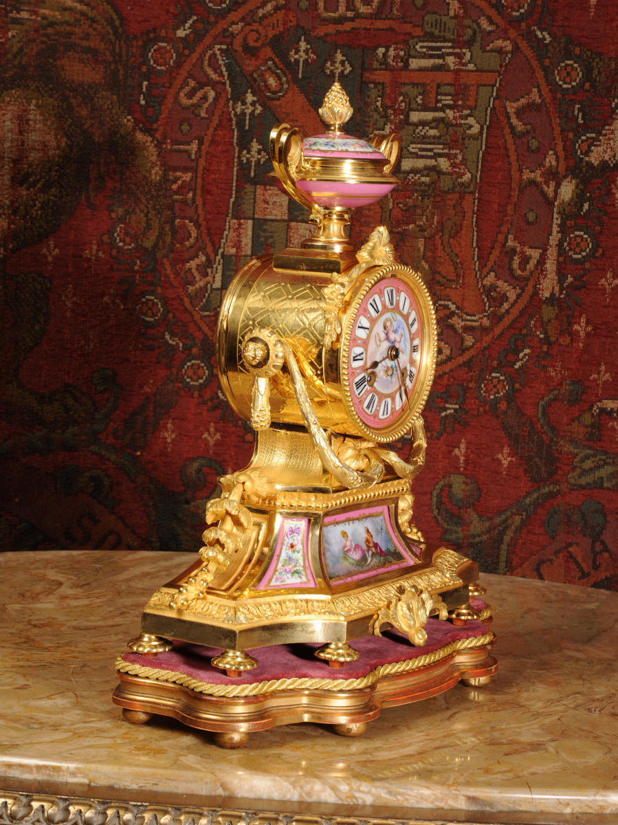 Freres Ormolu and Sevres Porcelain Boudoir Clock