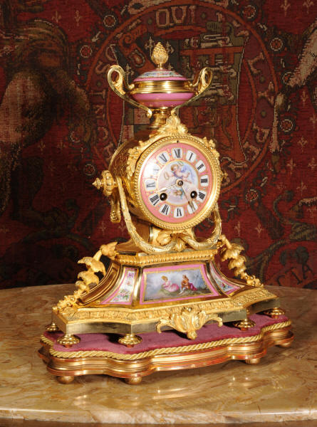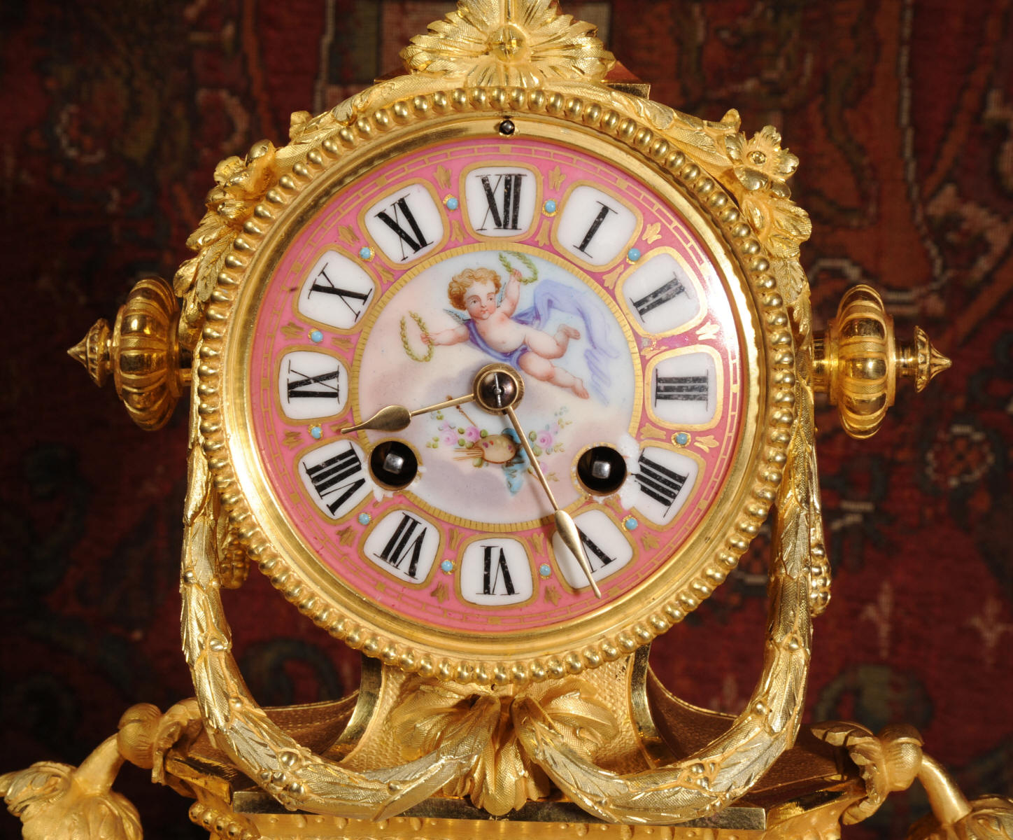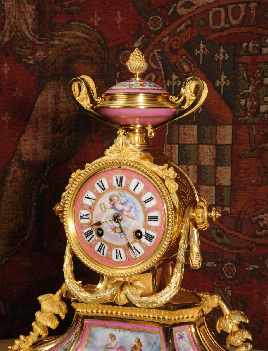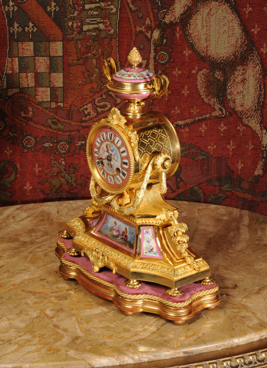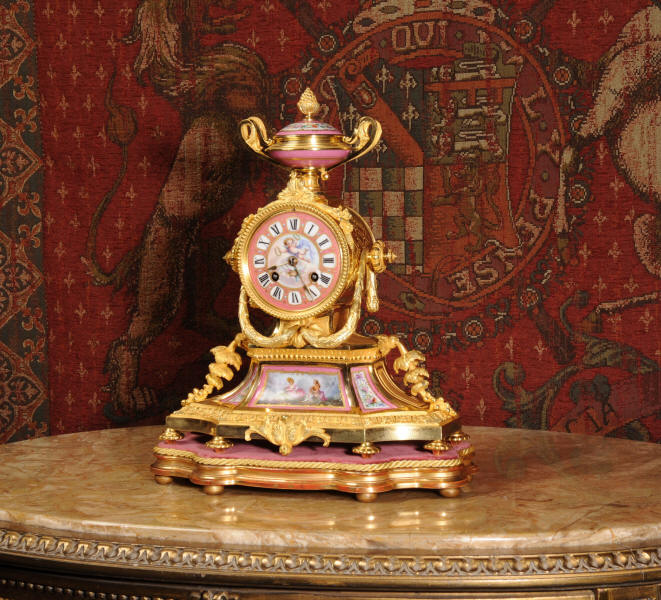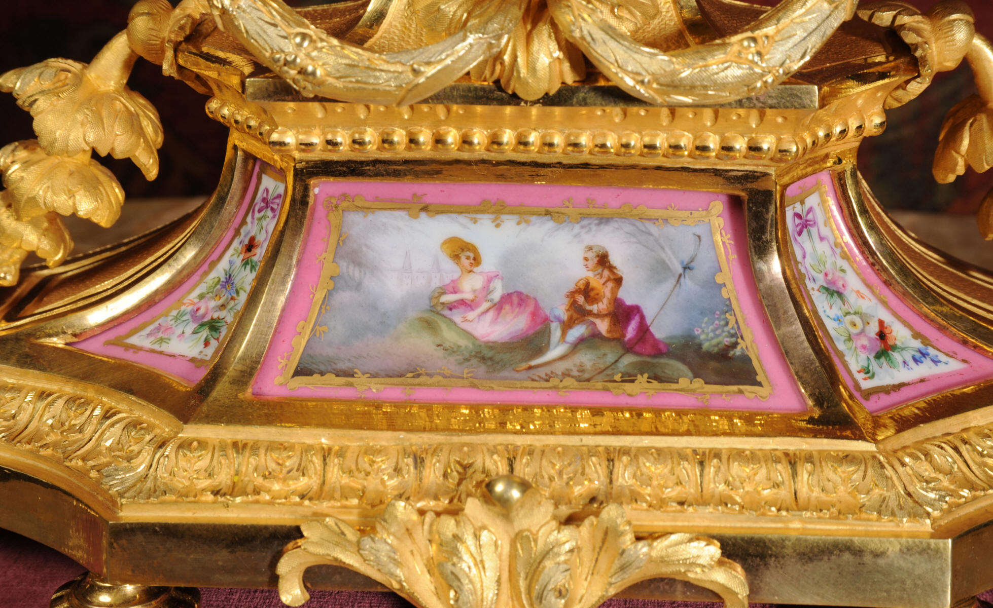 Freres Ormolu and Sevres Porcelain Boudoir Clock