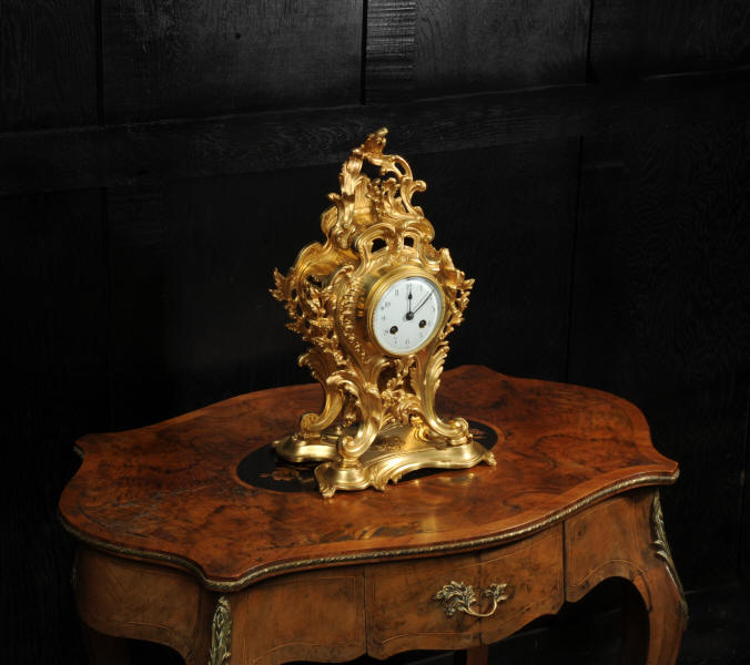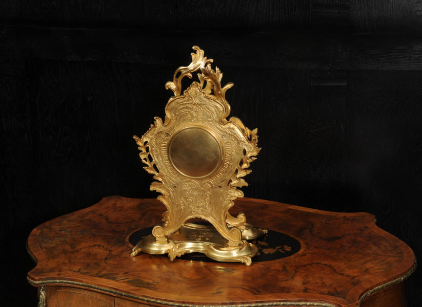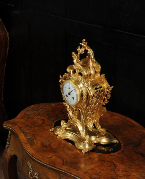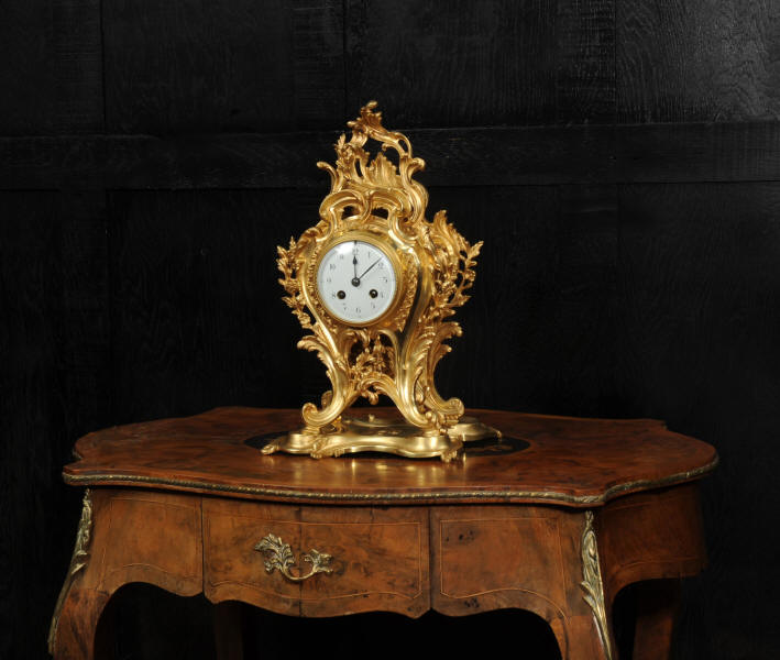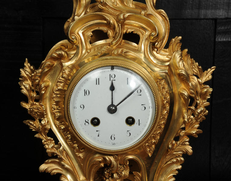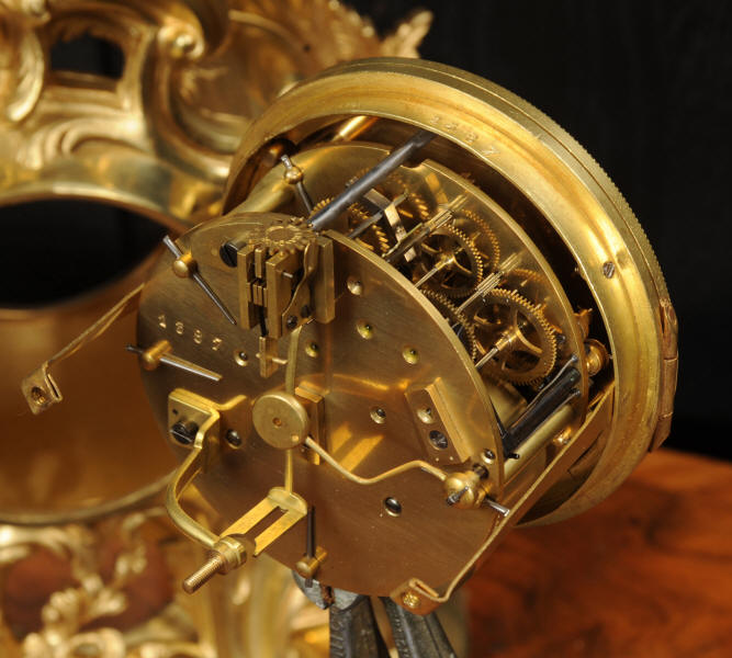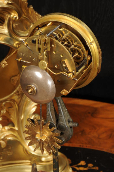 The dial is porcelain enamel on copper, beautifully chic with fine lettering and blued steel hands. The French movement is of high quality and is in excellent clean and running condition having been fully overhauled by our clockmaker. Pendulum is original. It runs for 8 days and strikes the hours and halves on a bell. Click the video to hear the bell and watch the clock running.