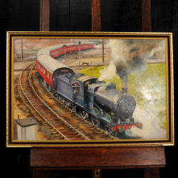 By the accomplished railway artist Ken Allsebrook, (there is one of his works on the BBC your paintings website) we have been fortunate to secure