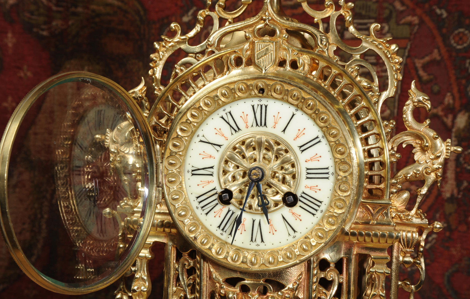 The beautiful enamel on copper dial had a brass centre and delicately fretted blued steel hands. Bezel is deeply recessed with an egg and dart border.