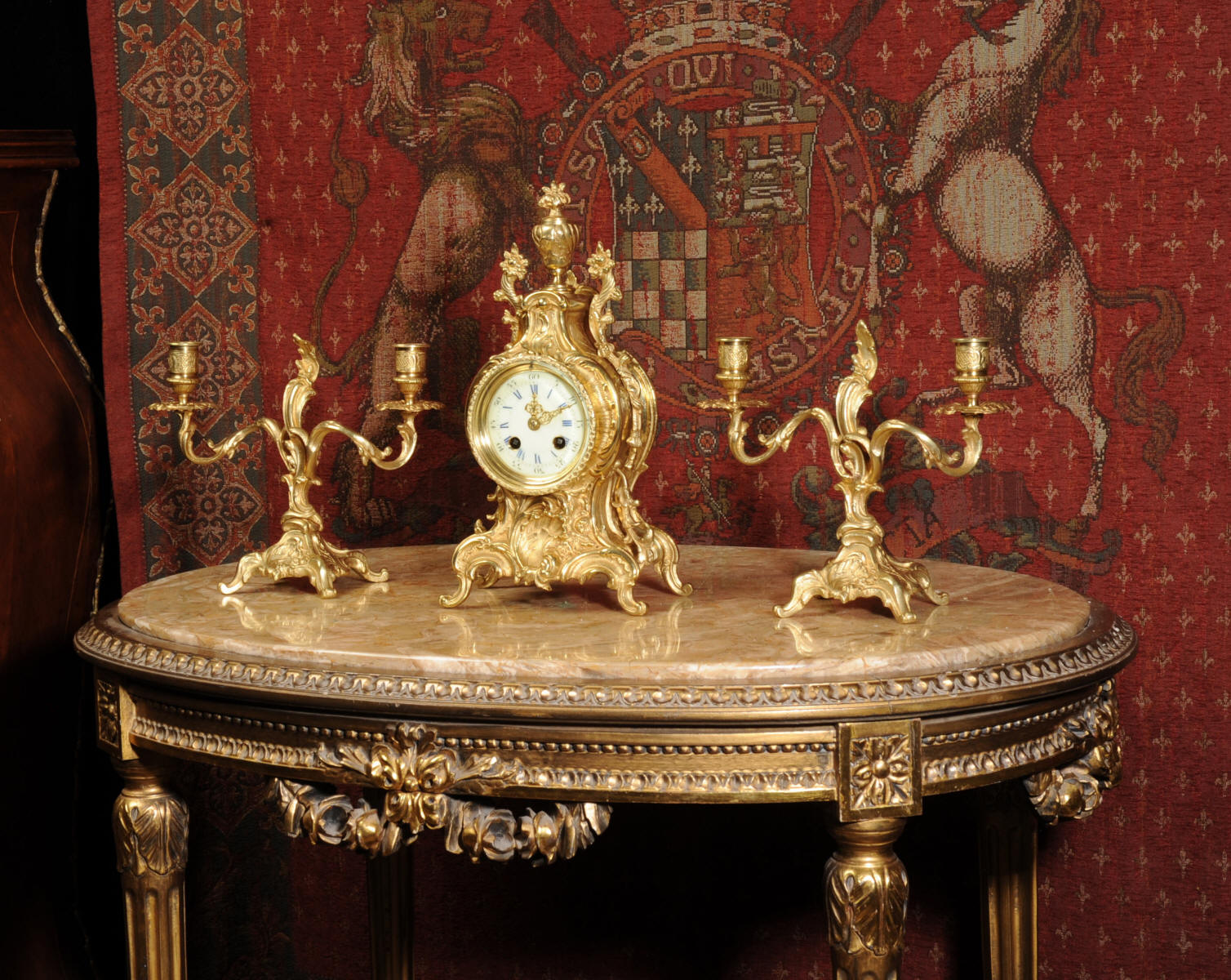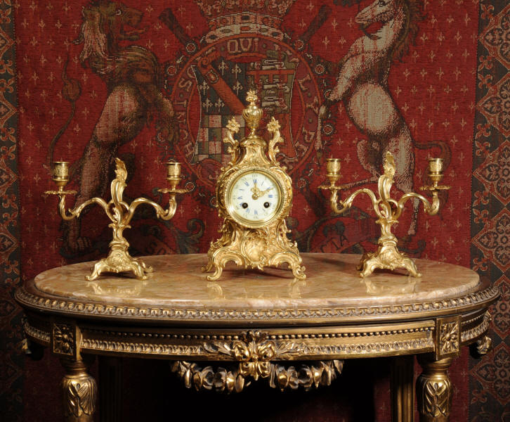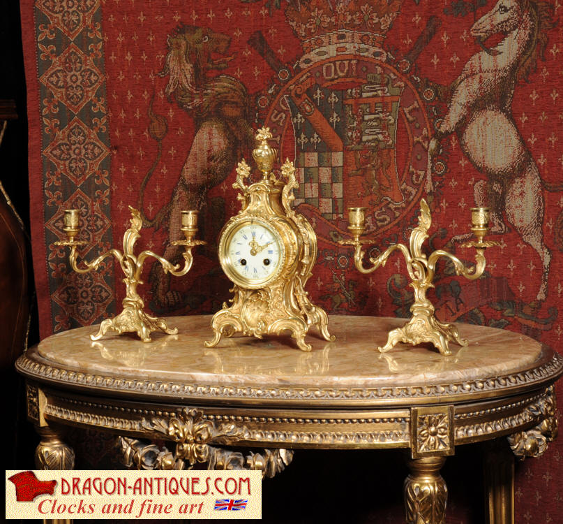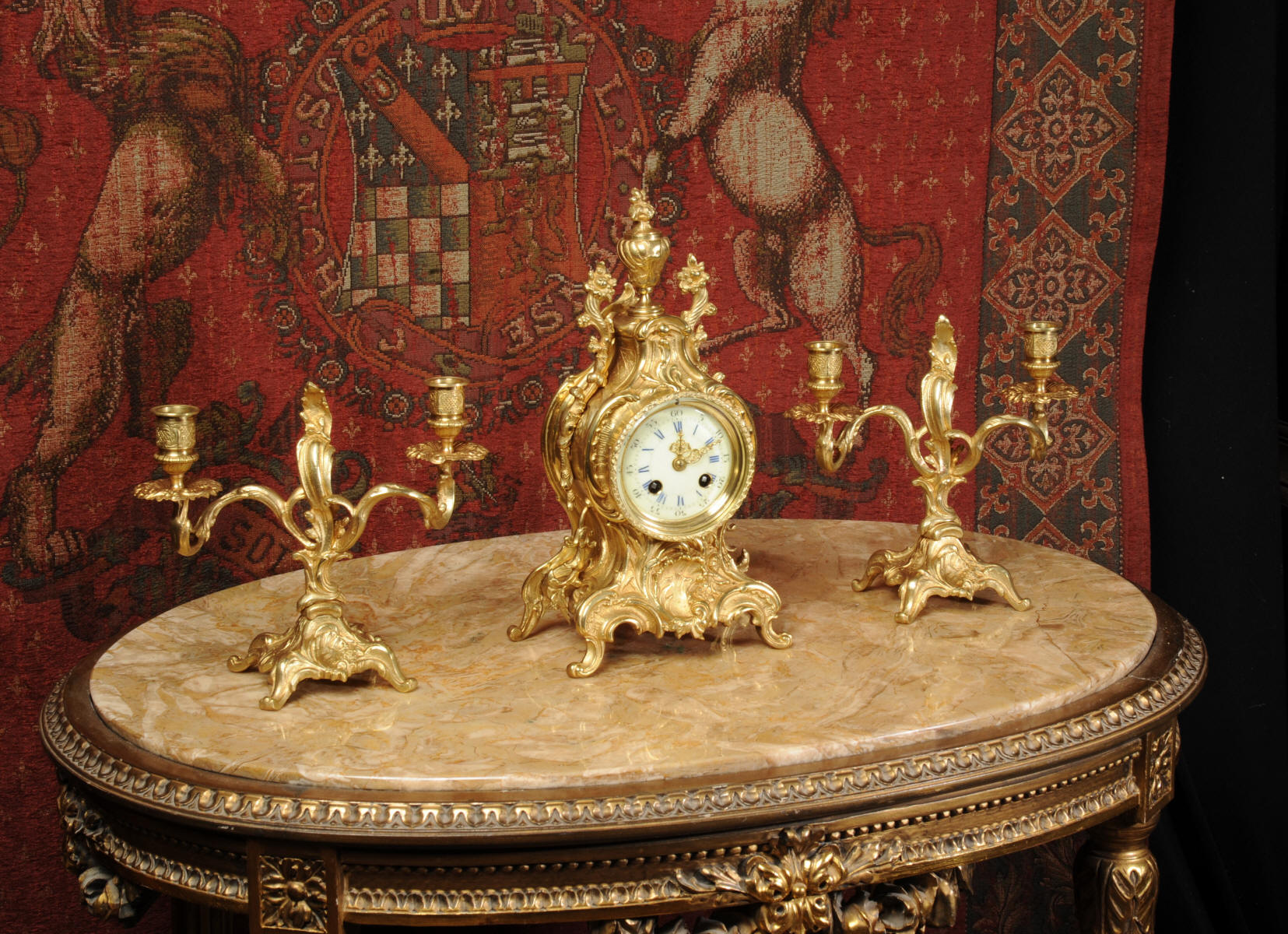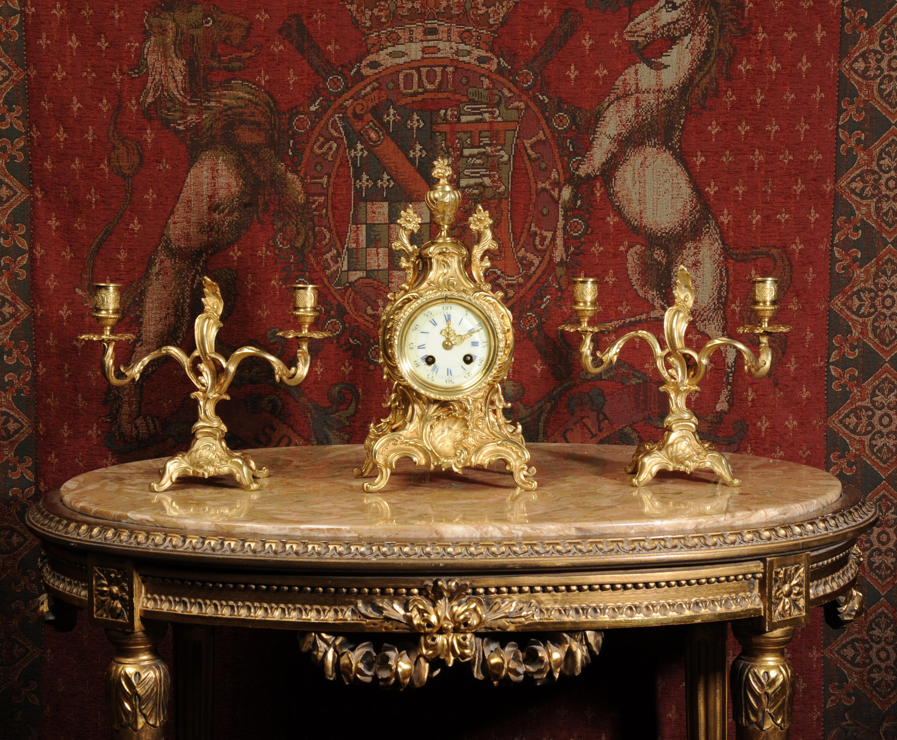 Condition of the case is excellent, the original gilding is beautifully clean and bright with hardly any wear or discolouration and there are no losses. The dial is also in excellent condition just some slight fading to some of the letters. The set makes a stunning display as you can see below.