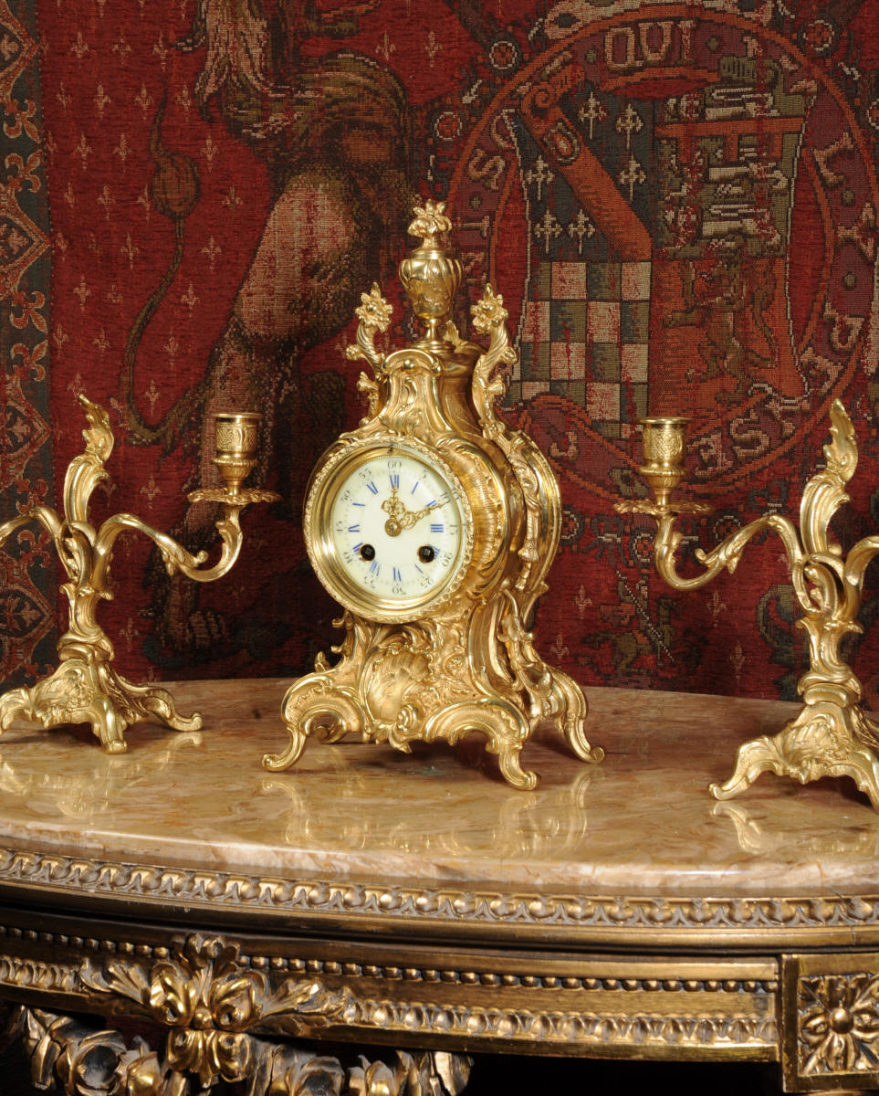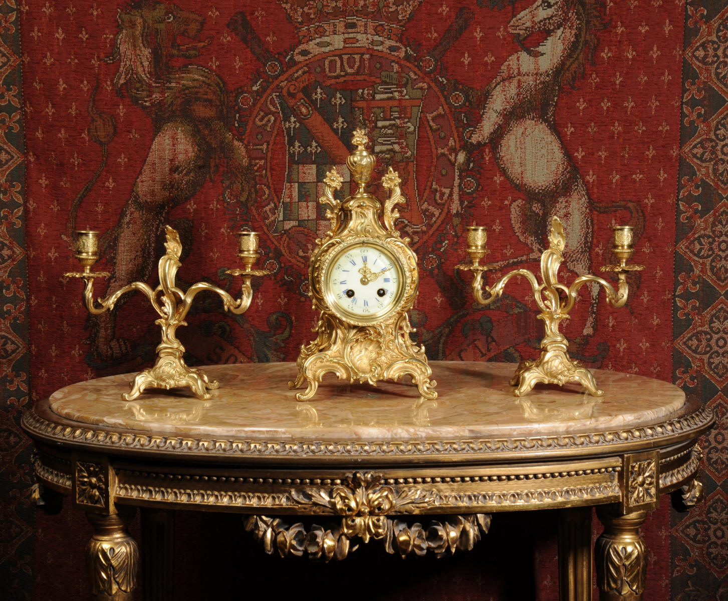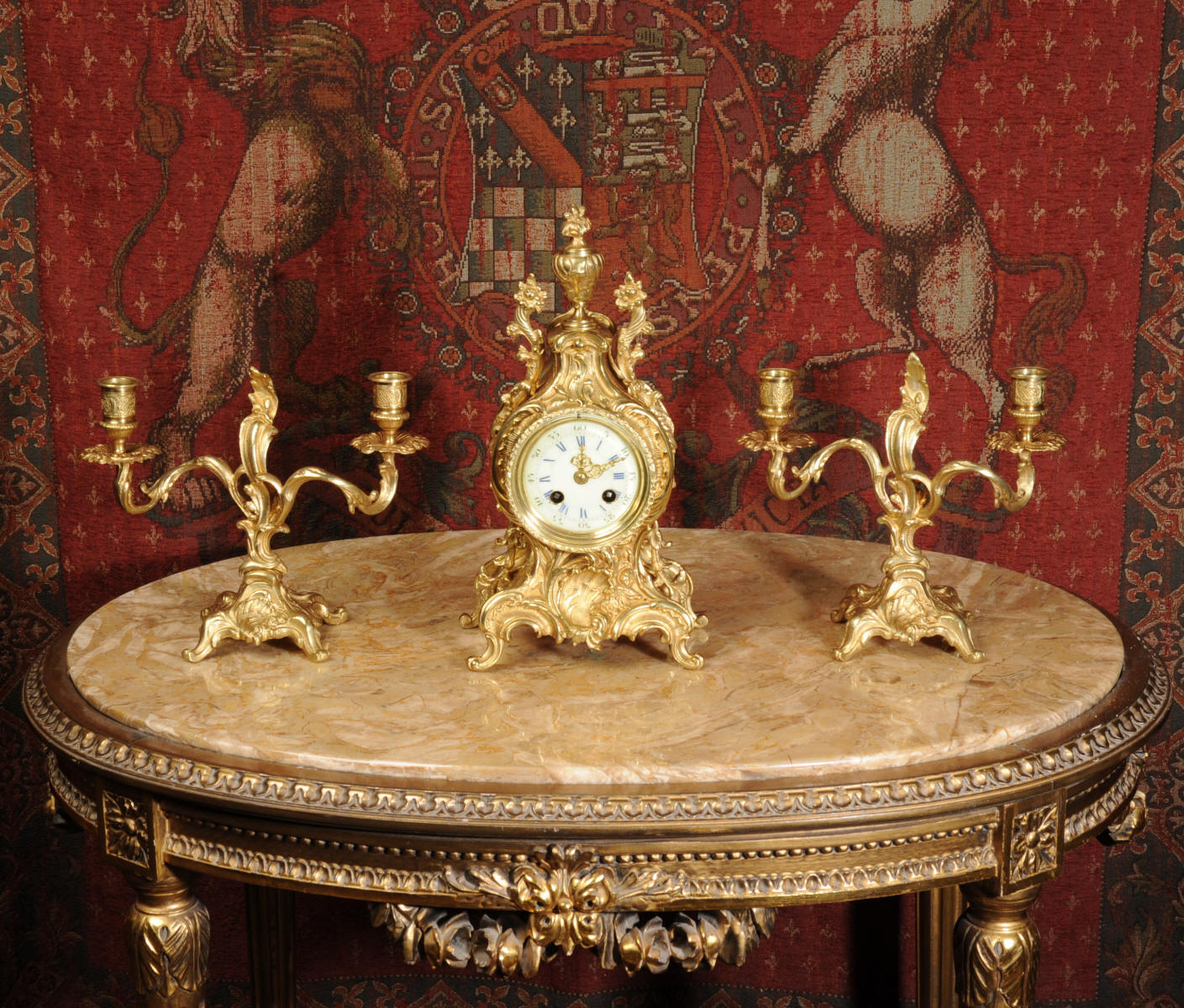 Condition of the case is excellent, the original gilding is beautifully clean and bright with hardly any wear or discolouration and there are no losses. The dial is also in excellent condition just some slight fading to some of the letters. The set makes a stunning display as you can see below.
