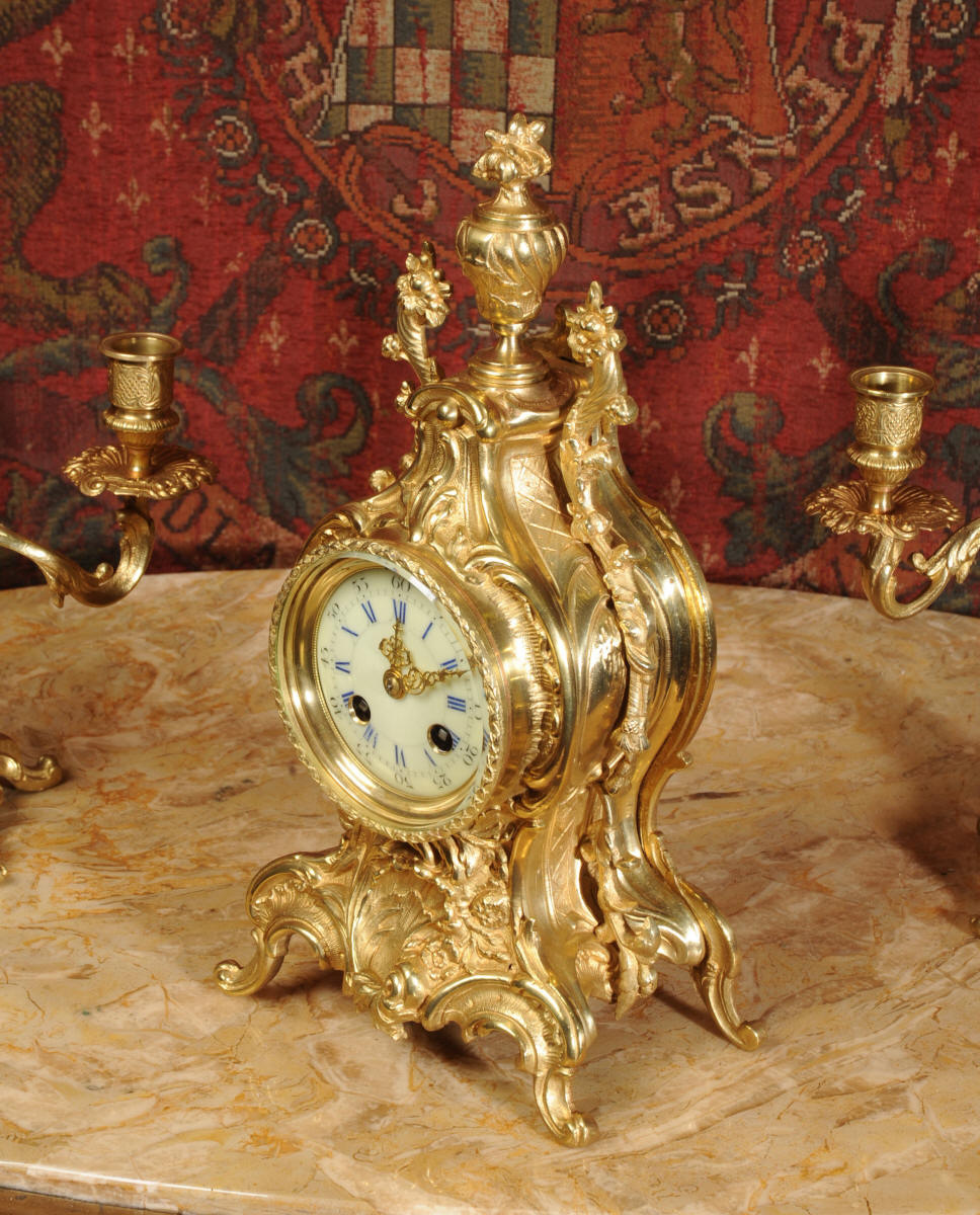 The French movement is of high quality and has the Louis Japy mark on the backplate along with that of the Paris retailer Henri Riondet and is in excellent clean and running condition having been fully overhauled by our clockmaker. Pendulum is a replacement. It runs for 8 days and strikes the hours and halves on a bell. Click the video clip below to hear the bell and watch the clock running!