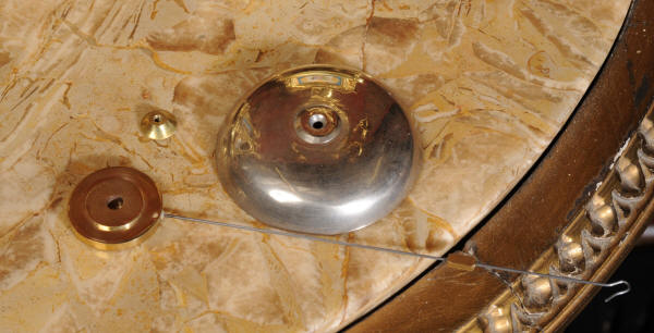 The French movement is of excellent quality and is the early design with silk suspension and outside hammer stop spring. The backplate of the movement is marked "M" for the retailer and unusually the case is also marked with the same "M". Movement is in excellent, clean and running condition having been fully cleaned and serviced by our clockmaker. Pendulum is a replacement. Click the movie below to hear the bell and watch the clock running.