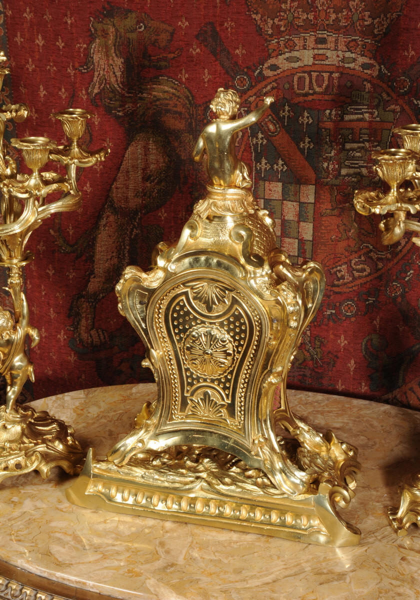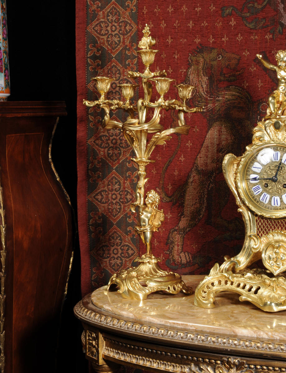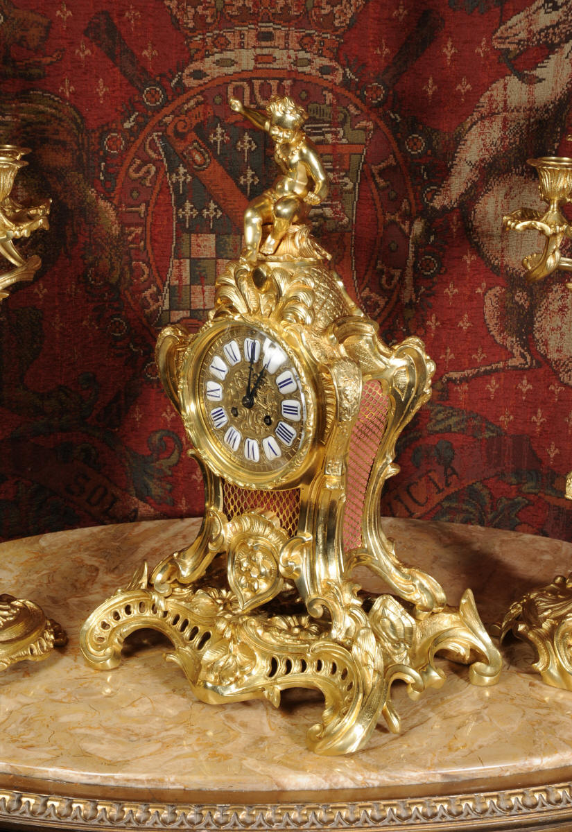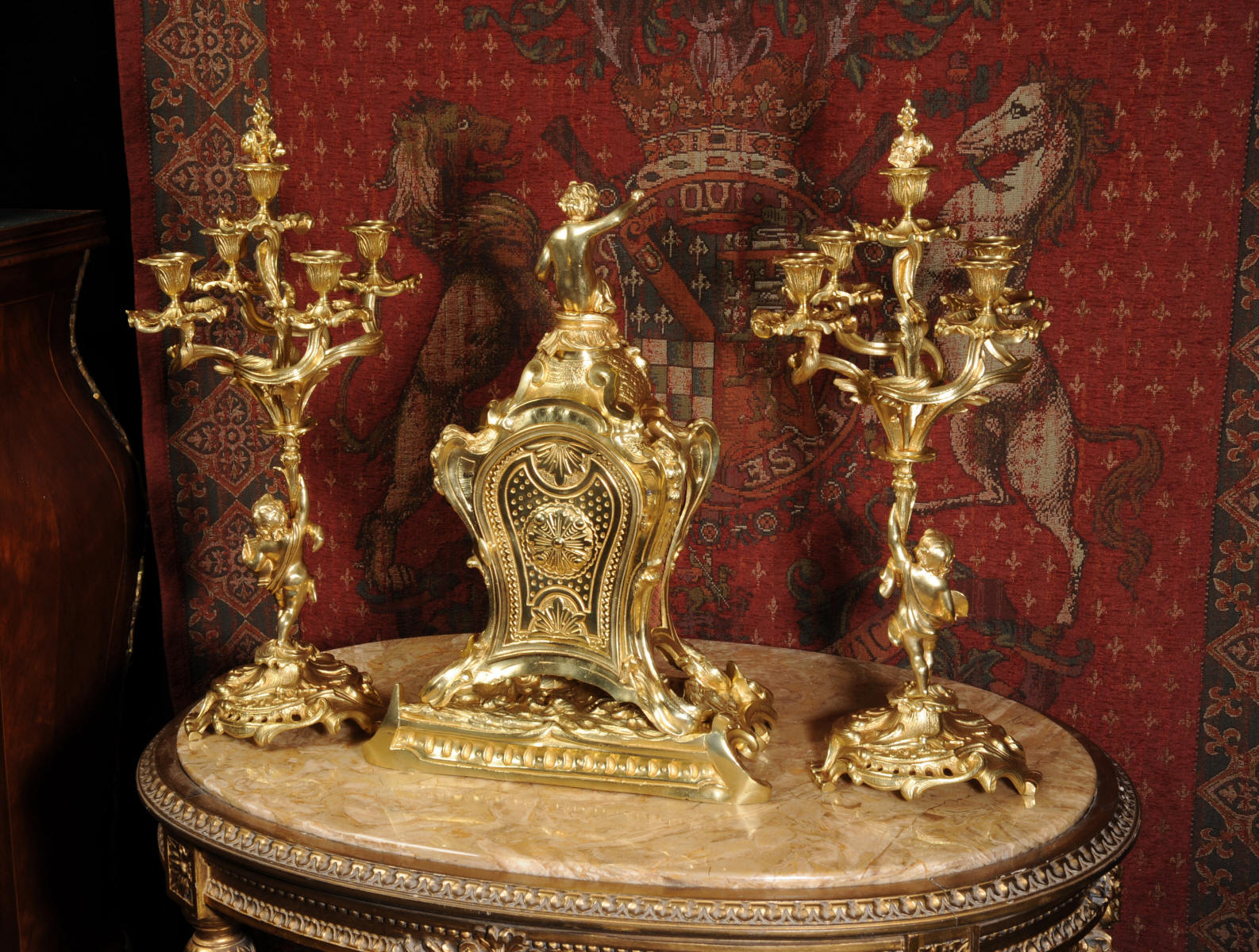 Condition of the case is excellent, the original gilding is beautifully clean and bright with hardly any wear or discolouration and there are no losses. The dial is also in excellent condition with no faults. We have replaced the red velvet. The set makes a stunning display as you can see below.