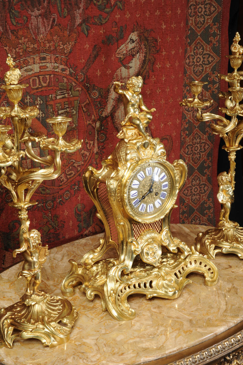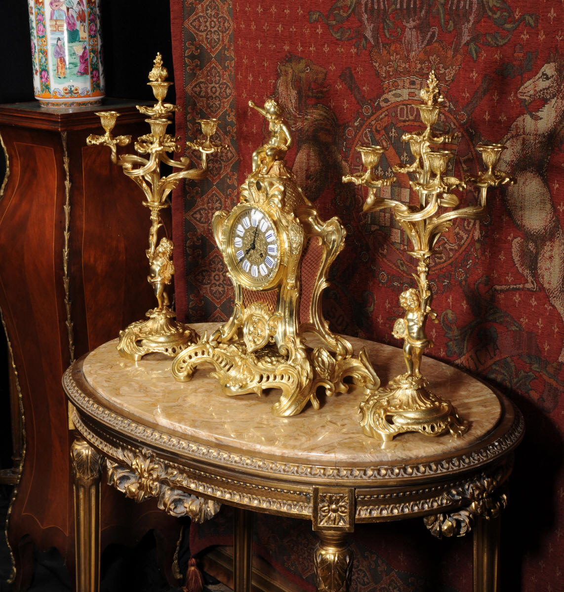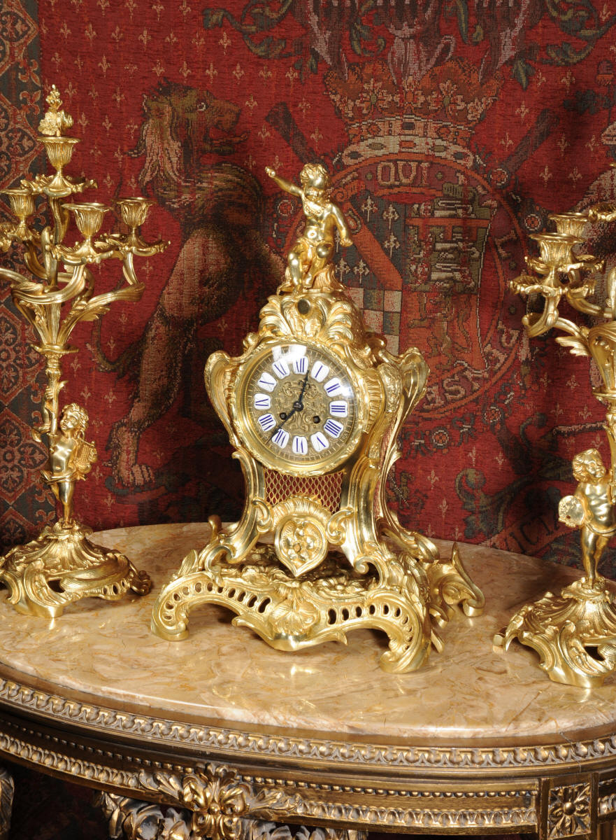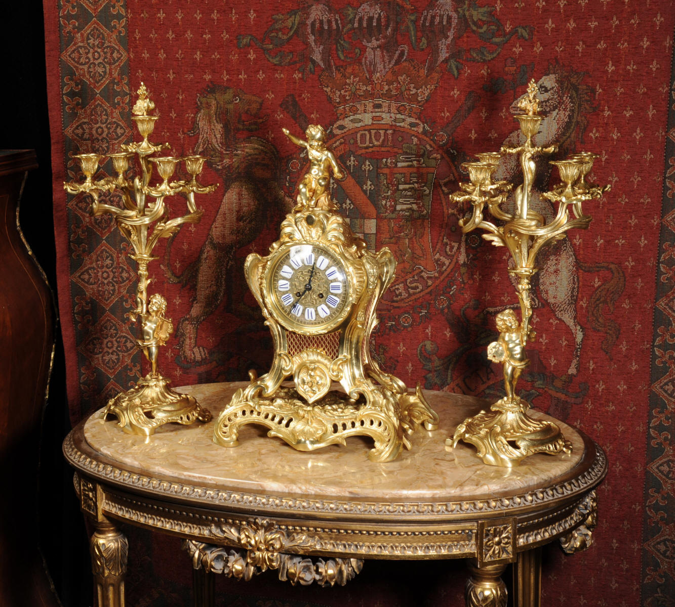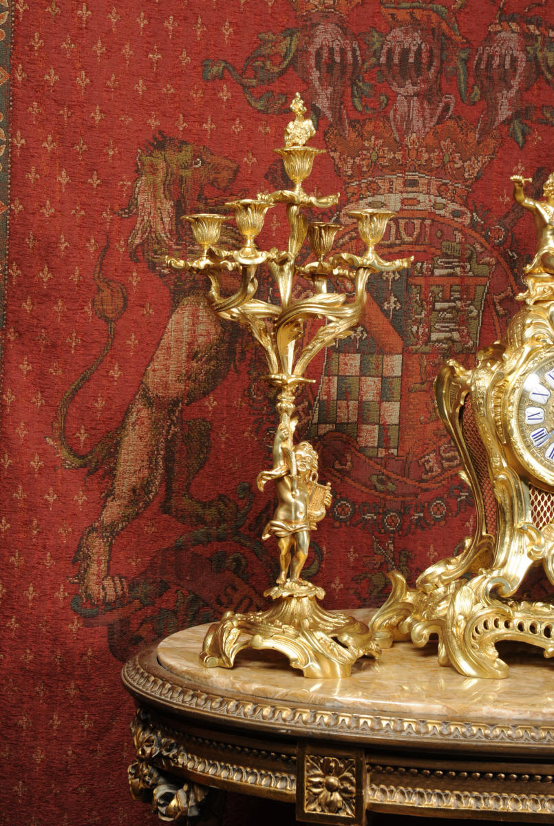 Condition of the case is excellent, the original gilding is beautifully clean and bright with hardly any wear or discolouration and there are no losses. The dial is also in excellent condition with no faults. We have replaced the red velvet. The set makes a stunning display as you can see below.