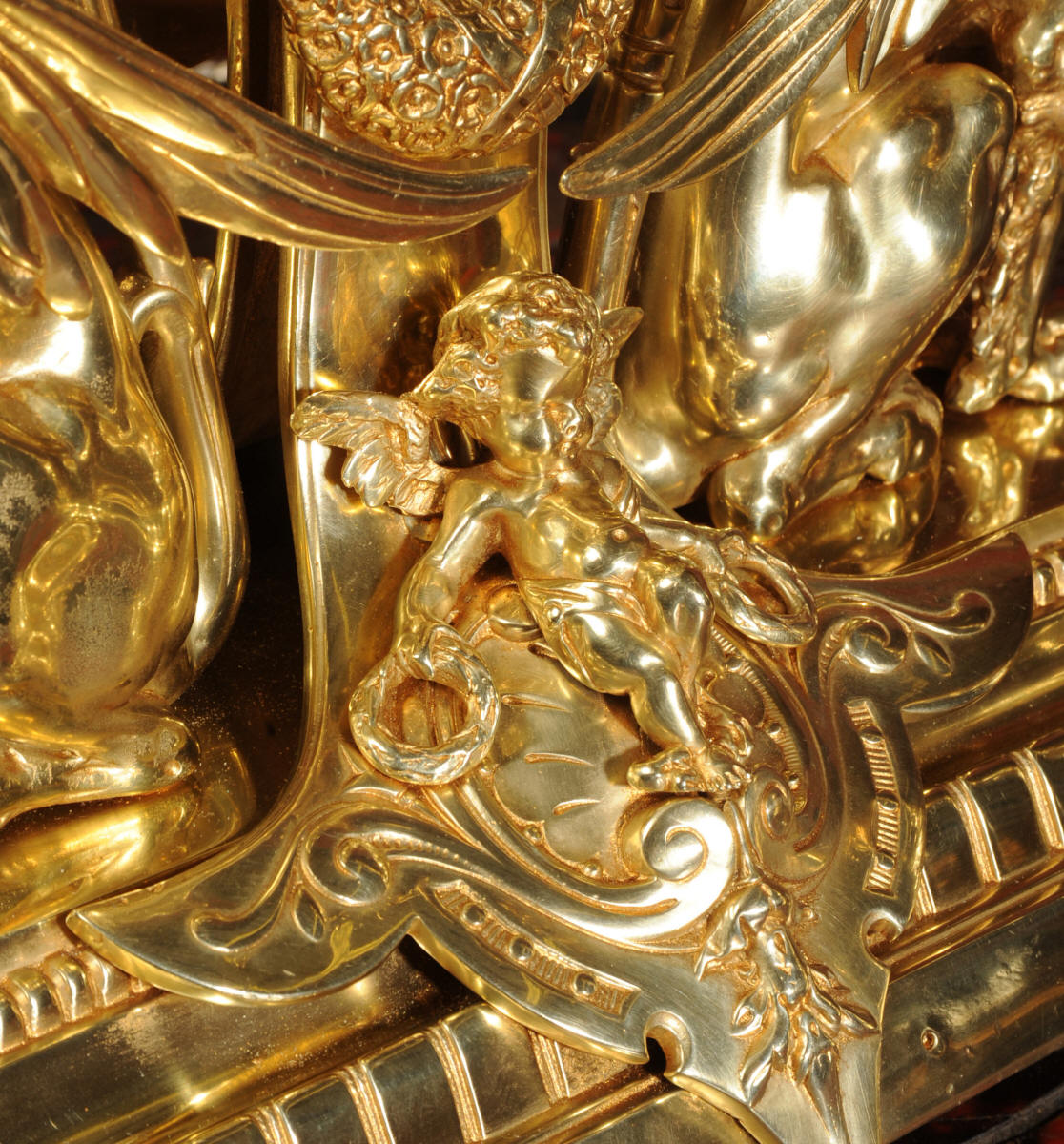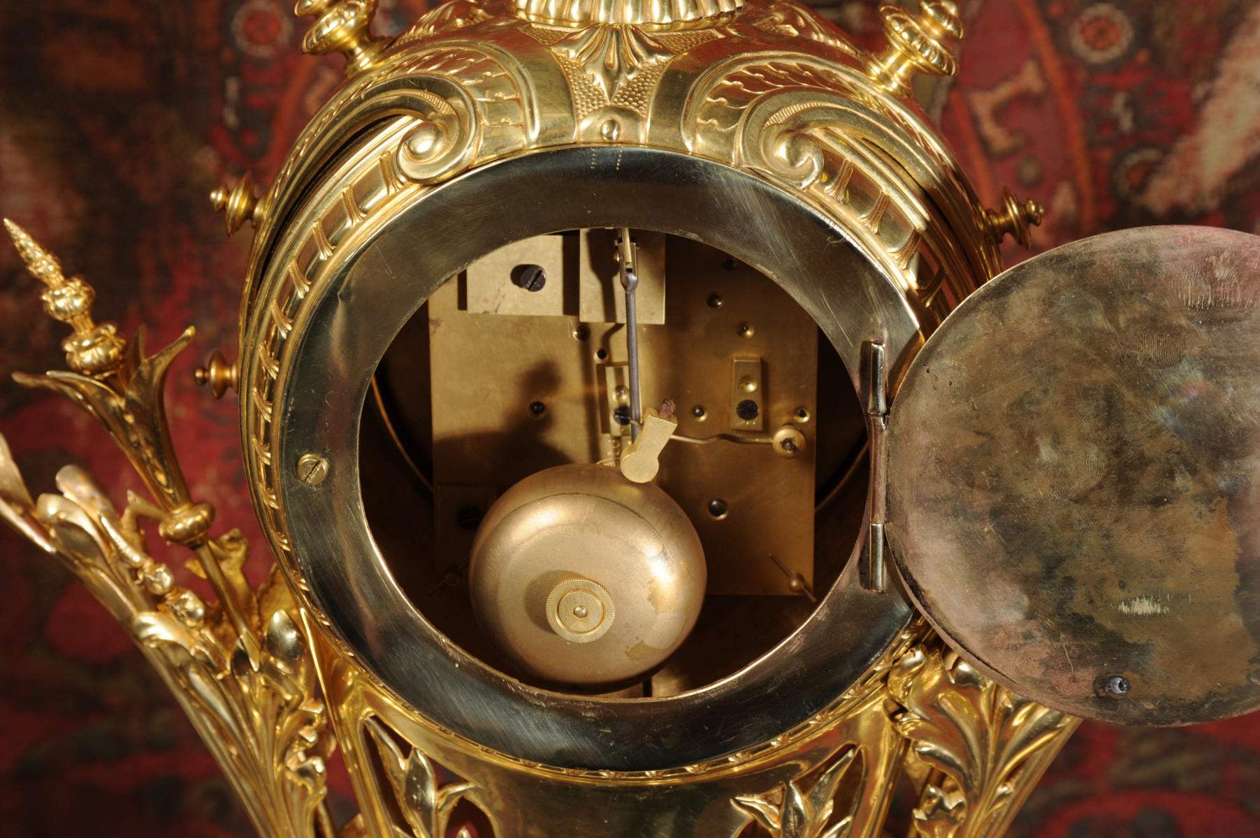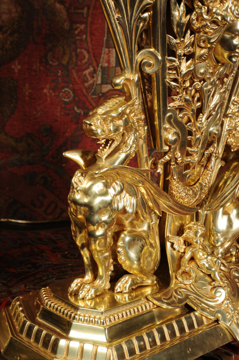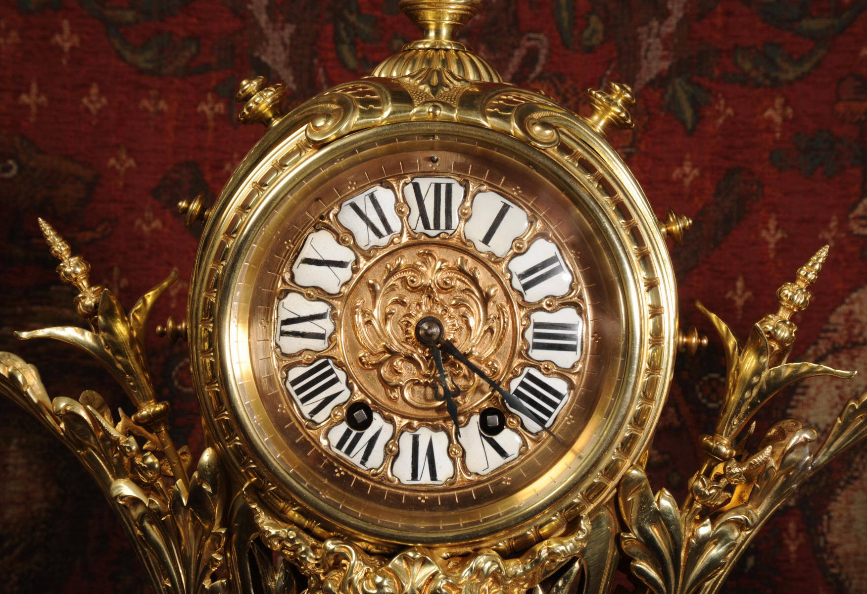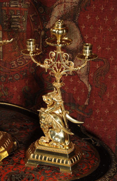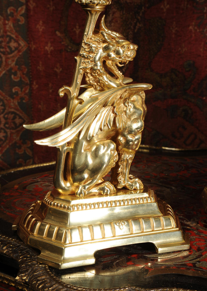 Condition of the case is excellent, the original gilding is beautifully clean and bright with just some slight wear and discolouration in places. The reverse of one dragon has a small piece of wing missing, this is at the rear of the clock case. The rear door has been re-built at some time. The dial is also in good condition, there is some slight restoration to some of the cartouches. The set makes a stunning display as you can see below.