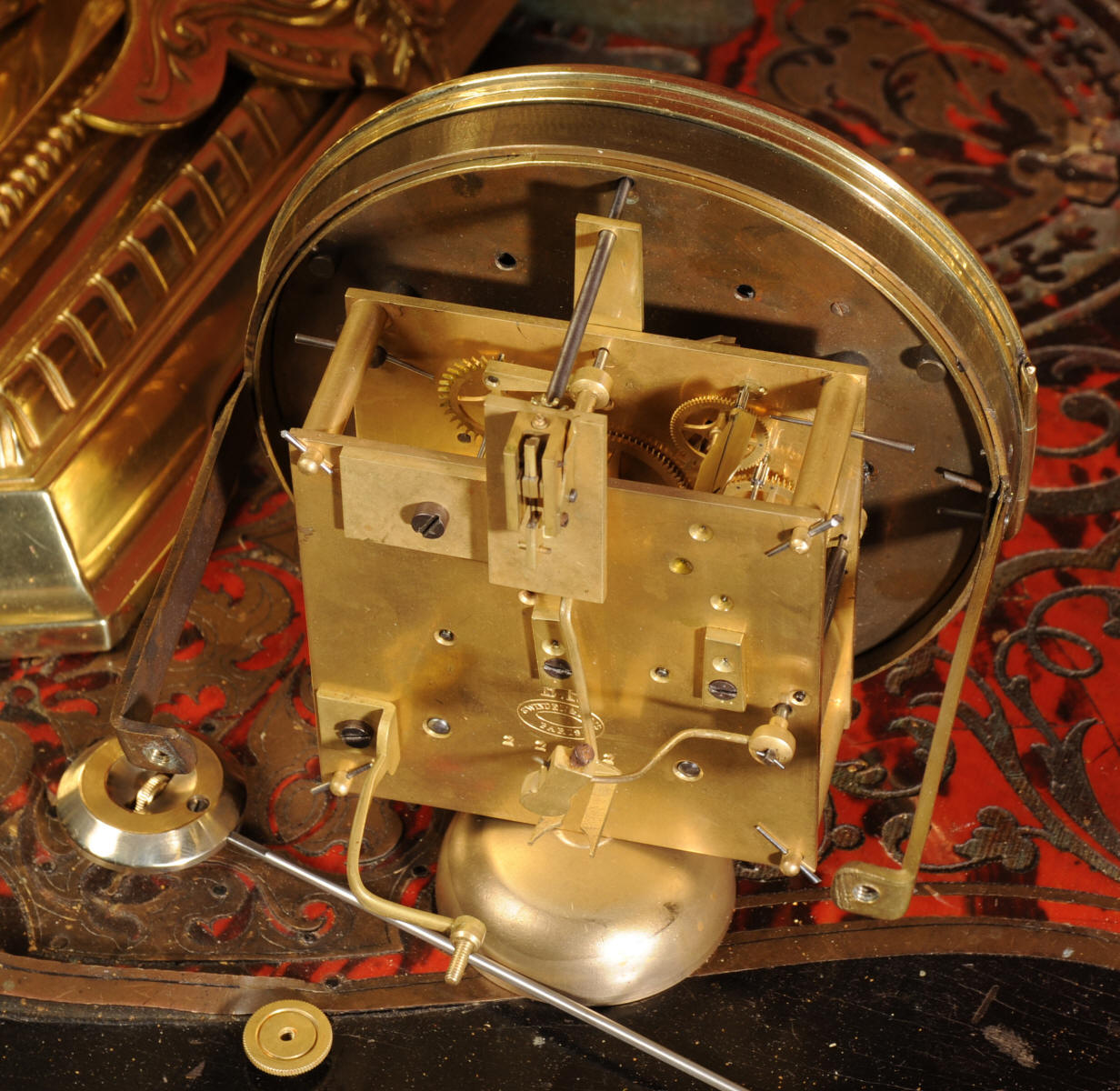 The French movement is of the highest quality and is fitted with a pin-pallet escapement and rack striking. It is the square plated version of the Pendule De Paris design with four pillars and heavy plates. The Swinden & Sons mark is on the backplate. It is in excellent clean and running condition having been fully overhauled by our clockmaker. Pendulum is a replacement. It runs for 8 days and strikes the hours and halves on a bell. Click the video clip below to hear the bell and watch the clock running!