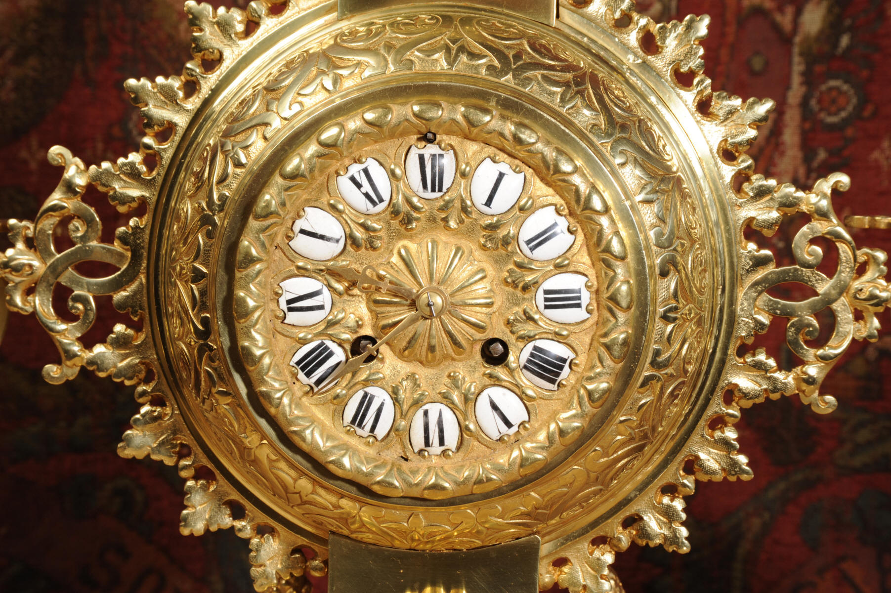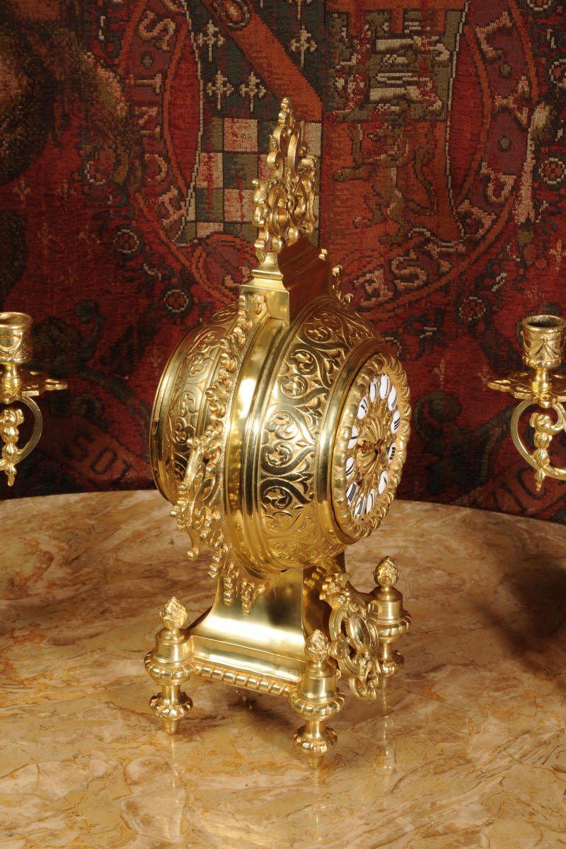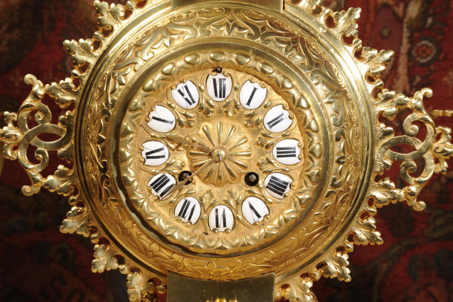 The dial is designed as part of the case, it is deeply moulded in gilt brass and is fitted with 12 individual enamel cartouche letters. It isn't deigned to have a glass bezel.