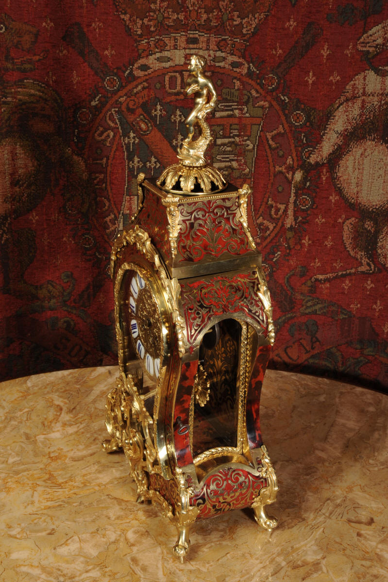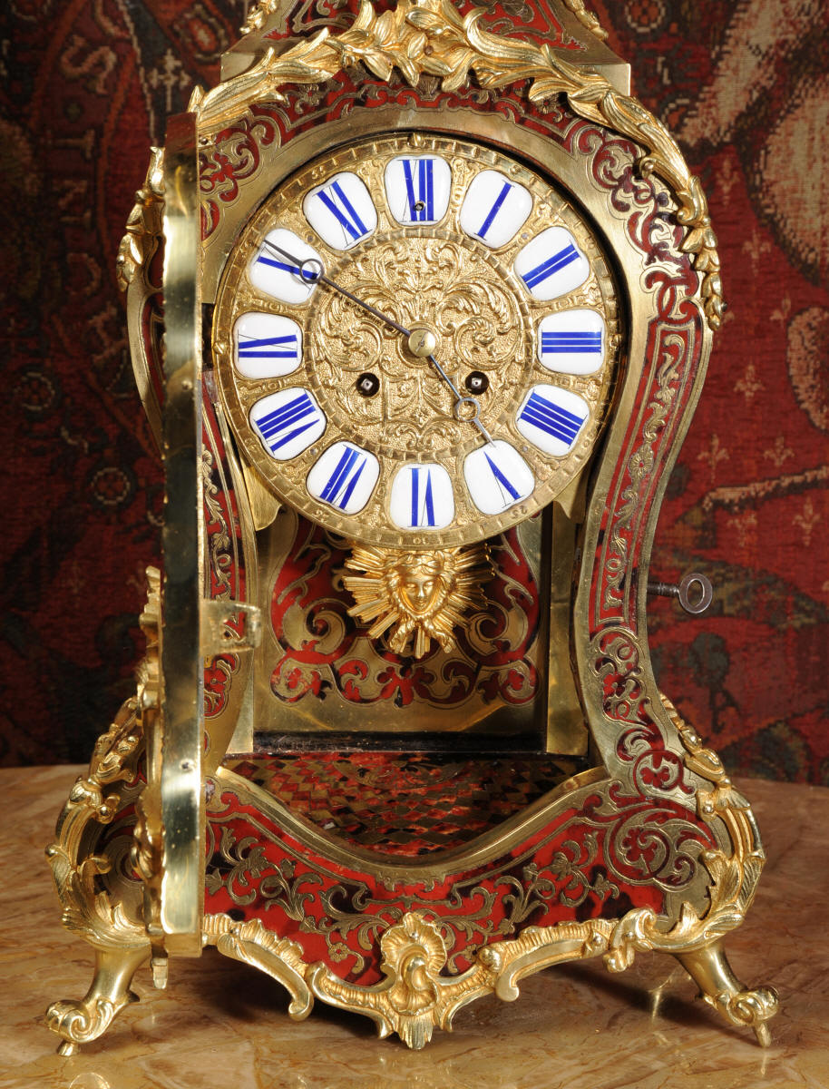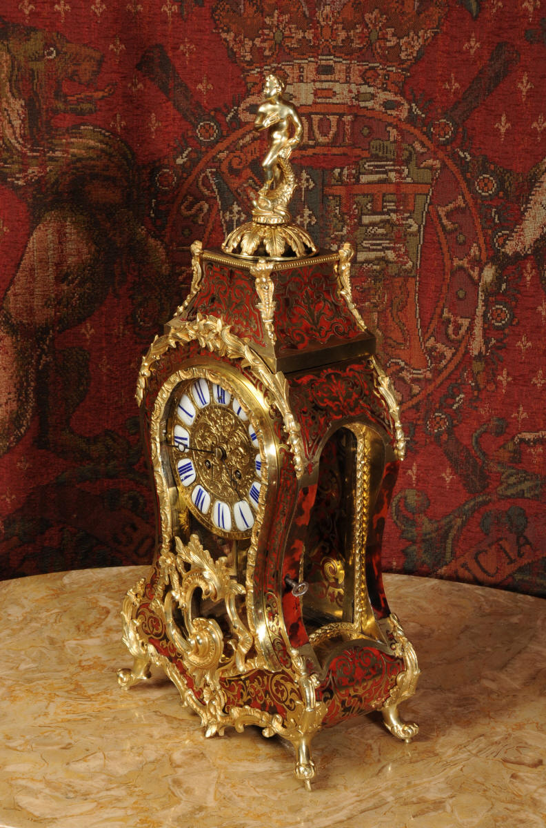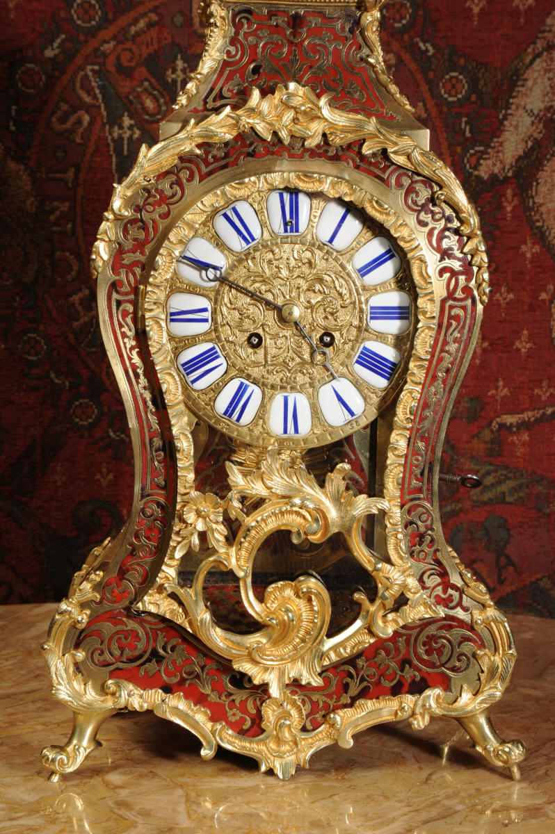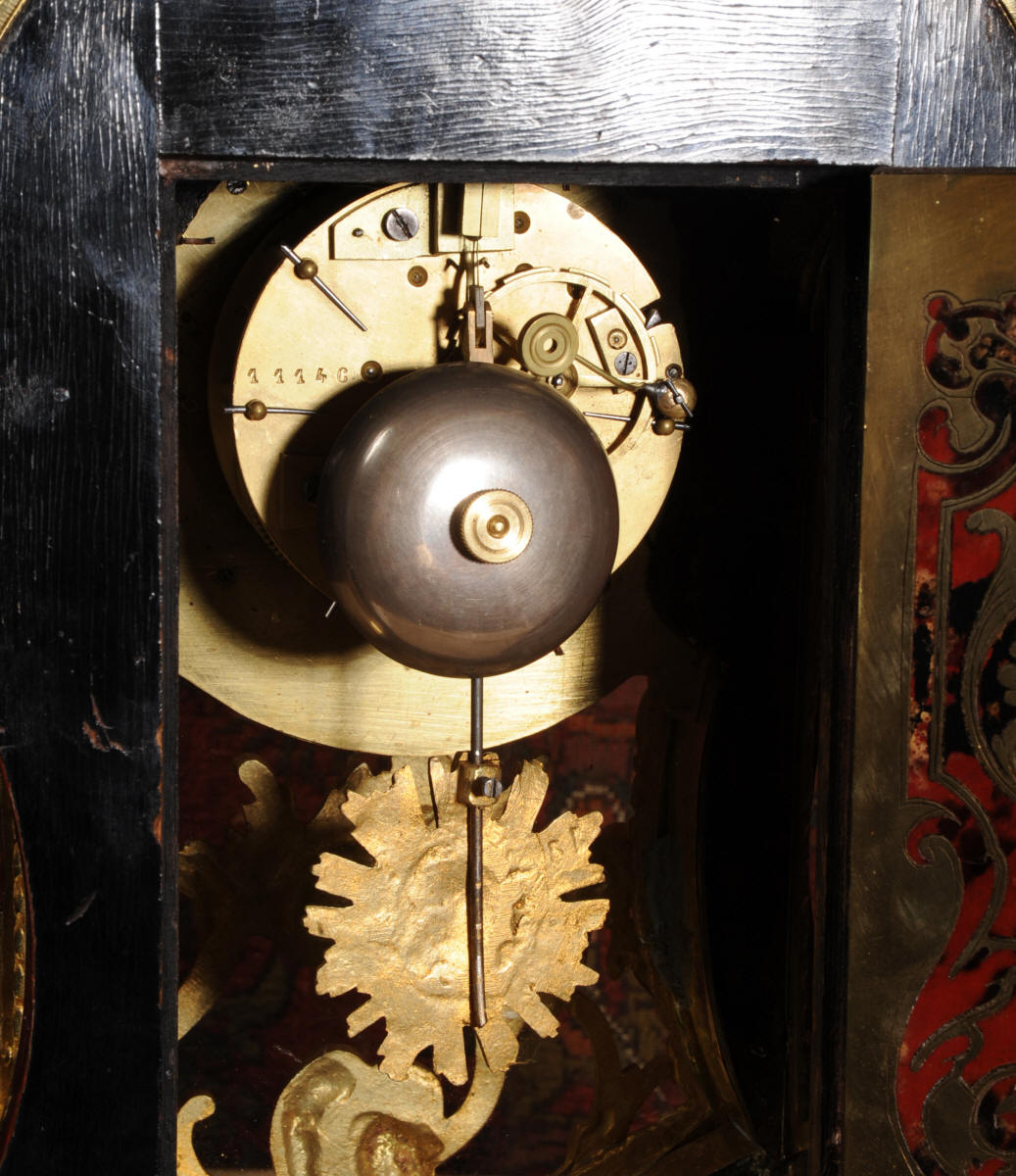 Condition of the case is excellent, Ormolu has a clean and bright finish with hardly any wear and there are no losses. The shell is also in very good condition, some slight cracking, tiny losses and discolouration in places; it has mellowed to a beautiful antique red-brown. Brass inlay is in excellent bright and clean condition, some slight lifting in places and a small loss on the bottom of the left hand side which is not noticable. Dial is also in excellent condition with just a slight mark on the number 12 cartouche. The clock looks stunning as you can see in the pictures below.