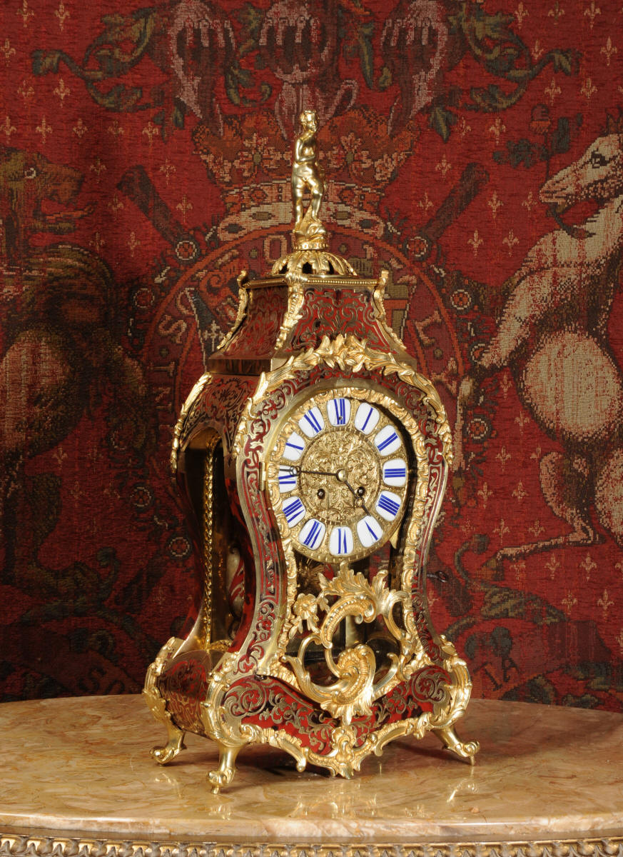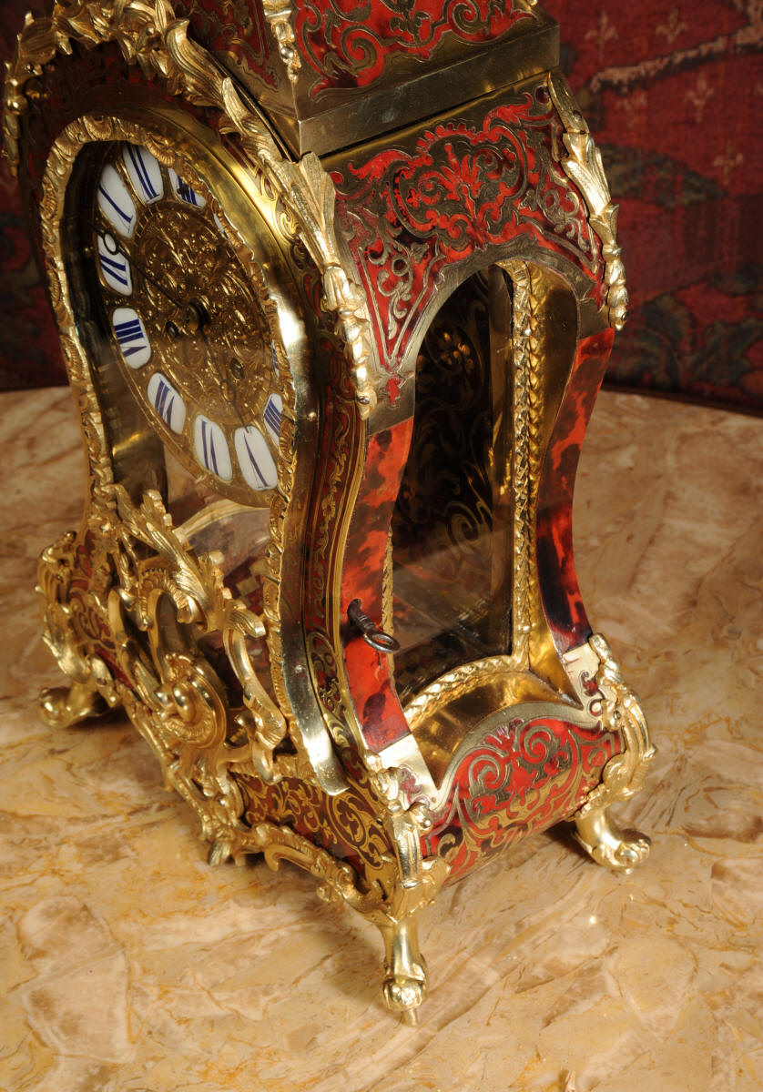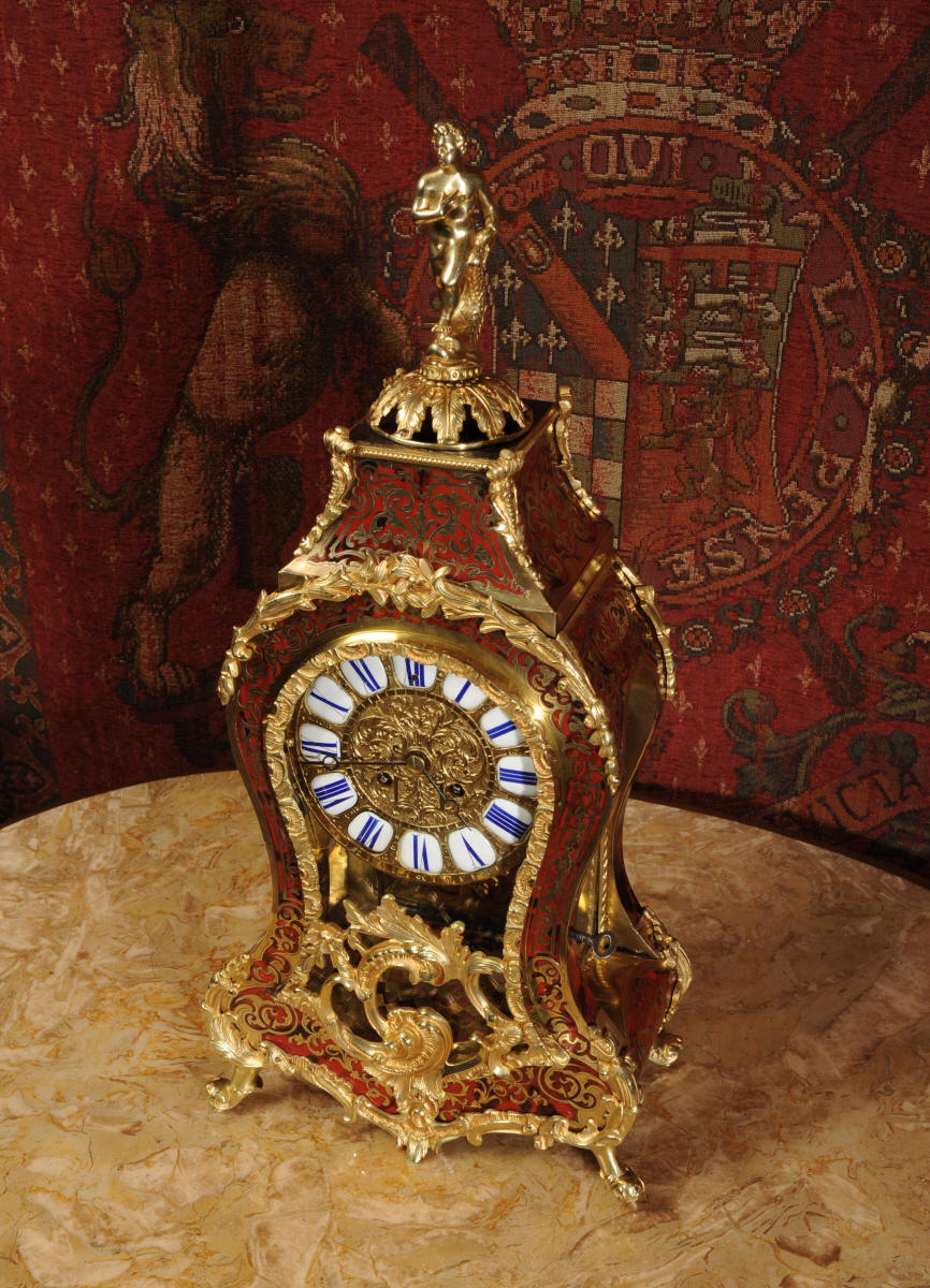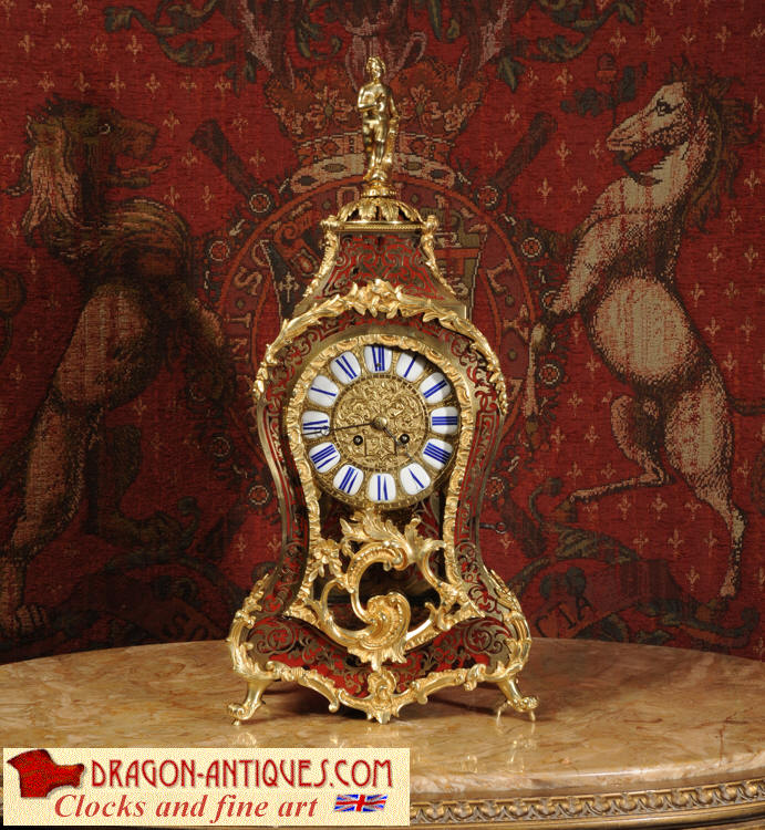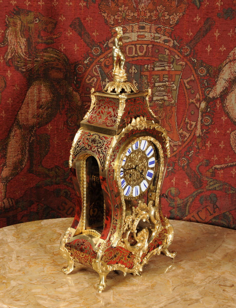Condition of the case is excellent, Ormolu has a clean and bright finish with hardly any wear and there are no losses. The shell is also in very good condition, some slight cracking, tiny losses and discolouration in places; it has mellowed to a beautiful antique red-brown. Brass inlay is in excellent bright and clean condition, some slight lifting in places and a small loss on the bottom of the left hand side which is not noticable. Dial is also in excellent condition with just a slight mark on the number 12 cartouche. The clock looks stunning as you can see in the pictures below.