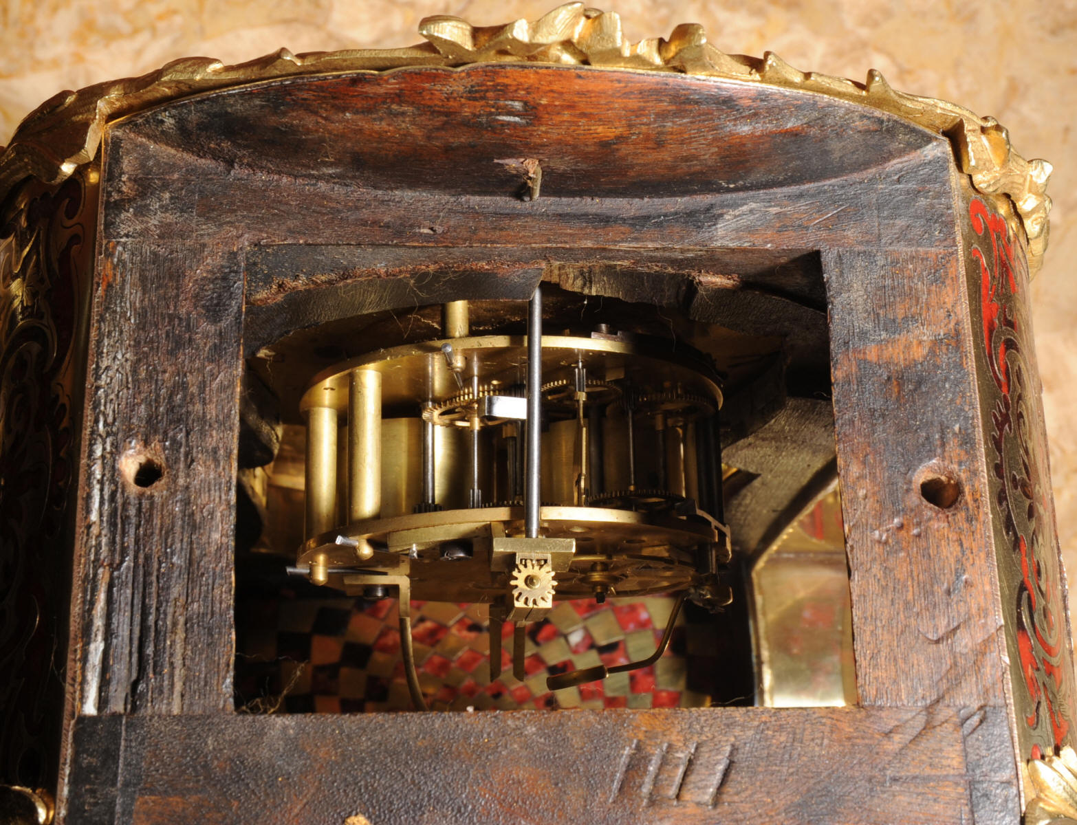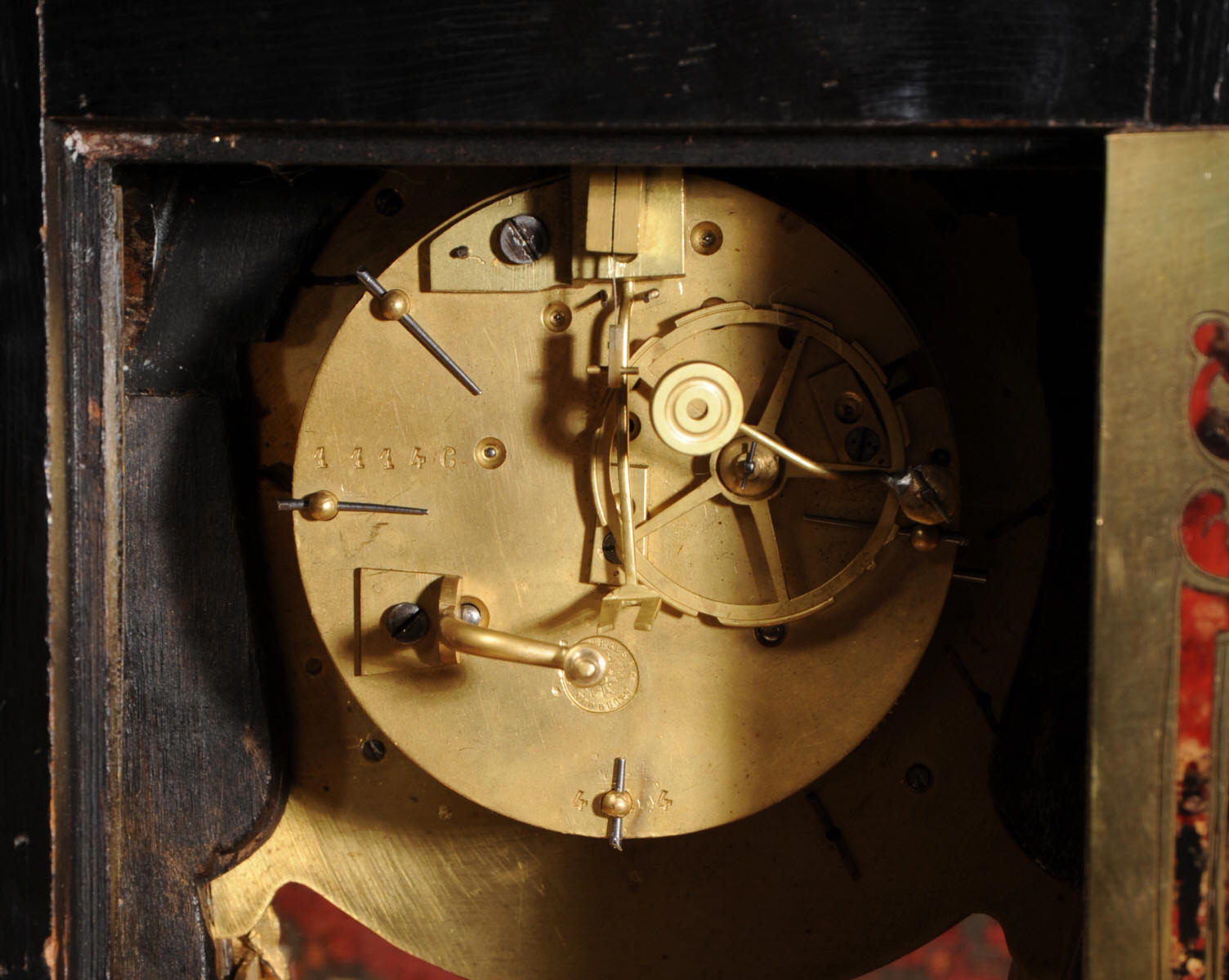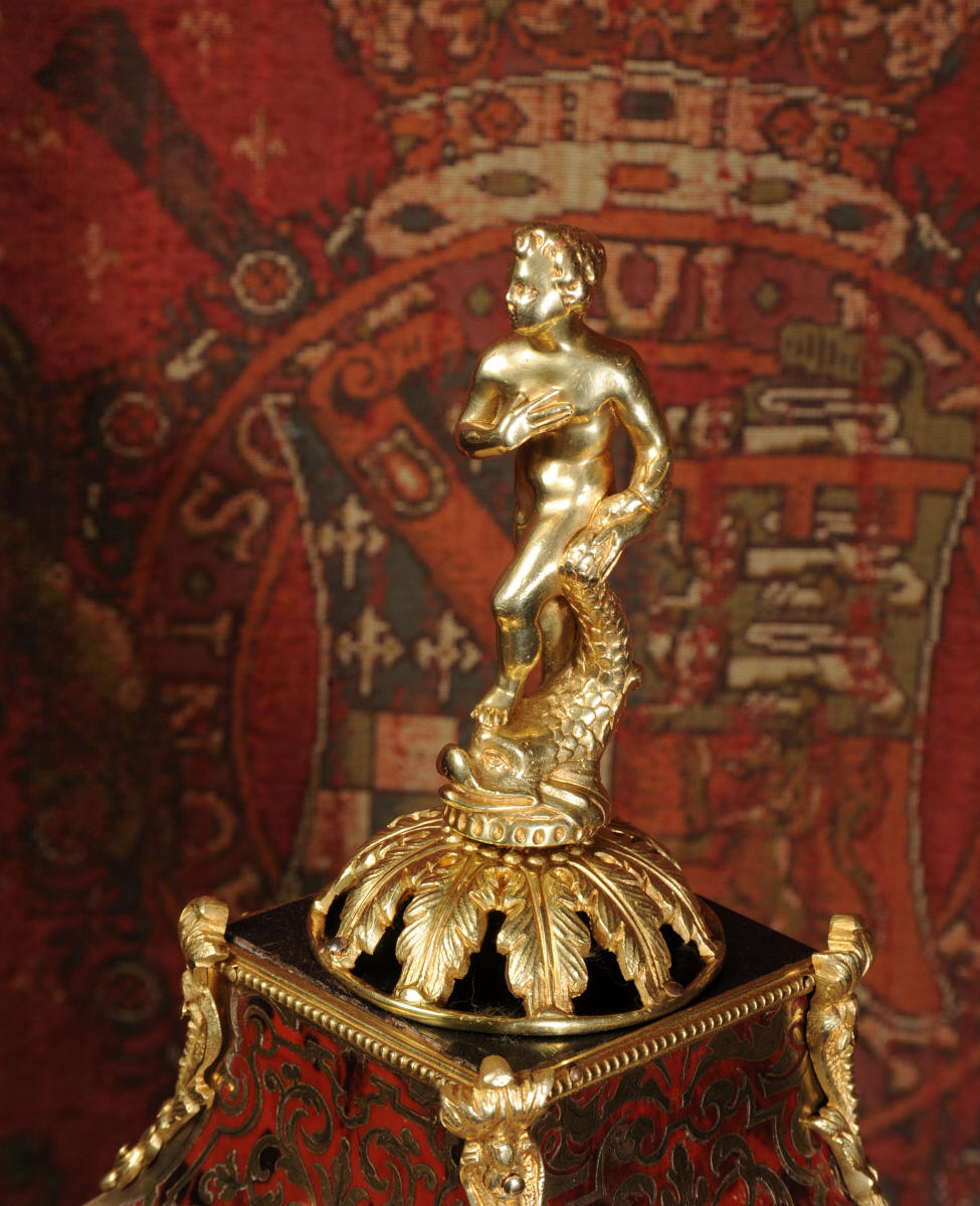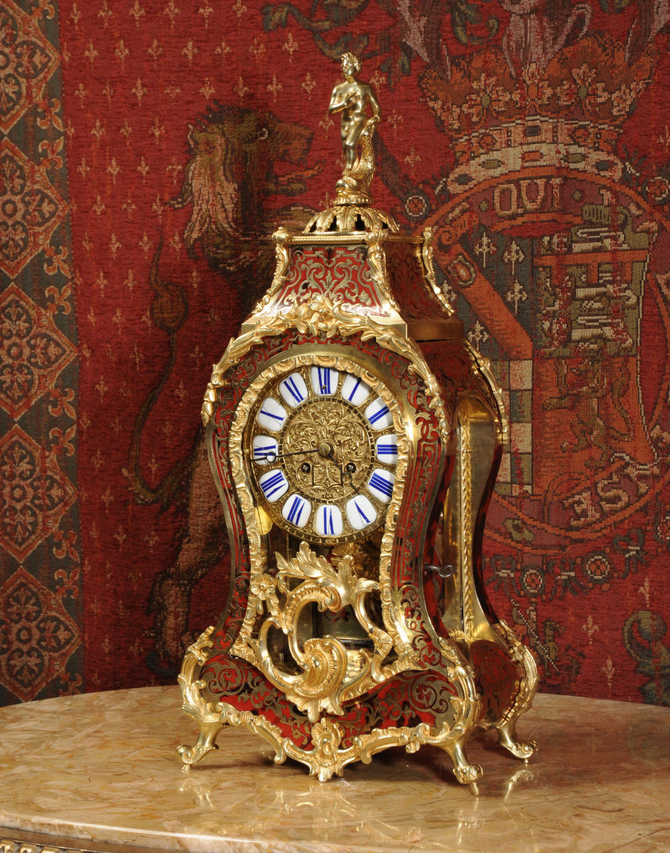 Condition of the case is excellent, Ormolu has a clean and bright finish with hardly any wear and there are no losses. The shell is also in very good condition, some slight cracking, tiny losses and discolouration in places; it has mellowed to a beautiful antique red-brown. Brass inlay is in excellent bright and clean condition, some slight lifting in places and a small loss on the bottom of the left hand side which is not noticable. Dial is also in excellent condition with just a slight mark on the number 12 cartouche. The clock looks stunning as you can see in the pictures below.
