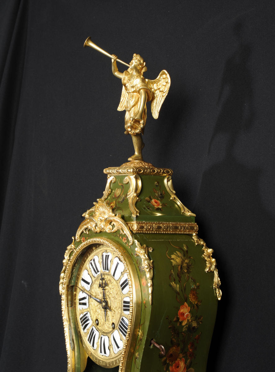 Condition of the case is excellent, The lacquer is in very good condition, there are a few very minor losses, slight scratches, knocks etc and a some small areas of touching in. There is a small hole on the outside of the rear door possibly where someone has fitted a knob at some time. The finish of the lacquer is very good, bright and clean with an slight antique crackelure to some areas. The Ormolu is bright and clean with no losses. Dial is also excellent with no chips or scratches. The front door lock is fully working with the original key.