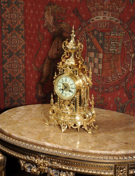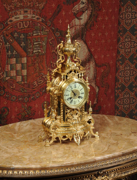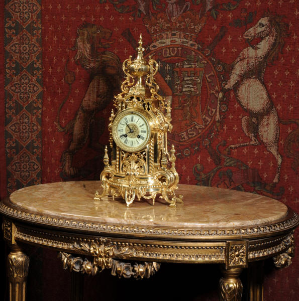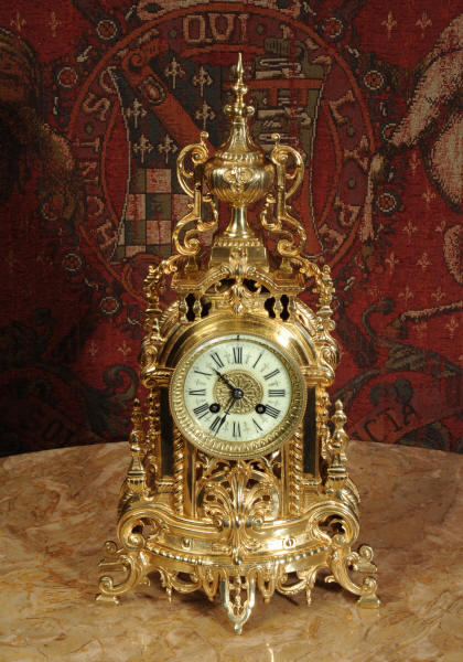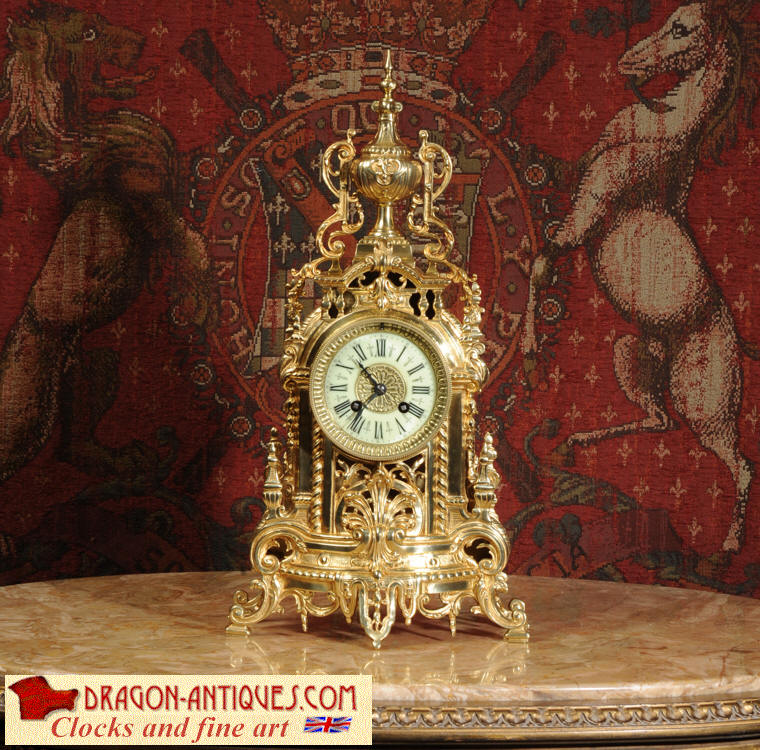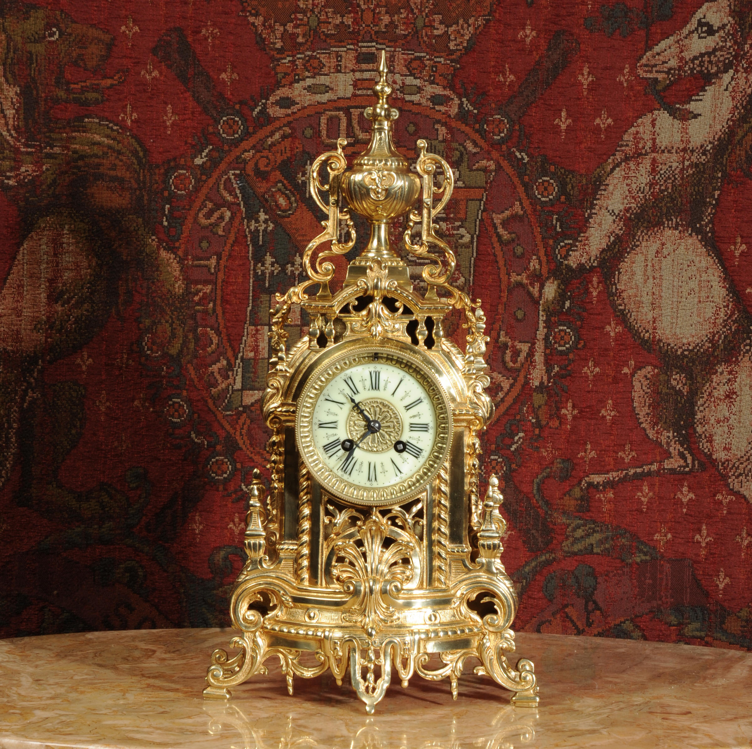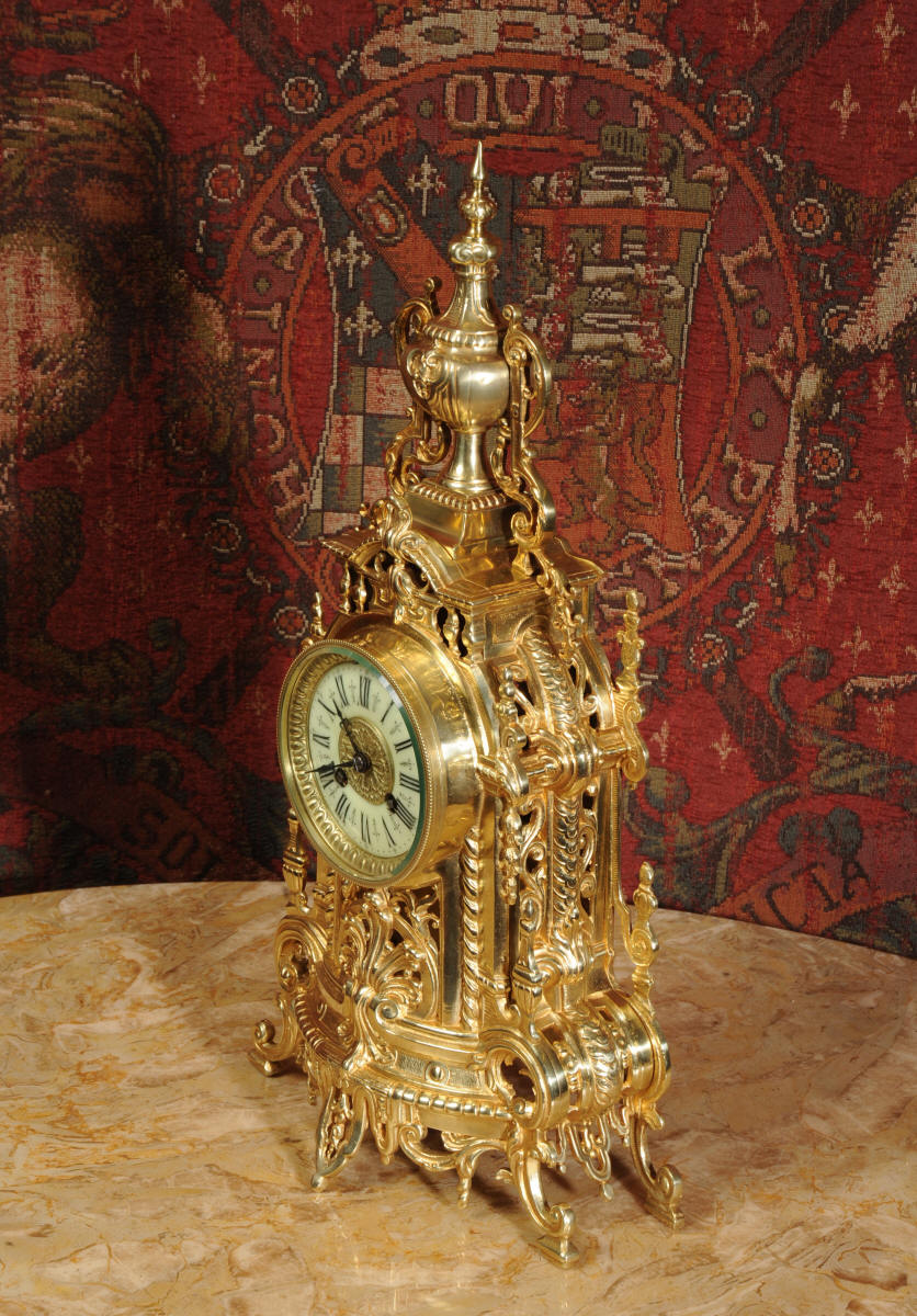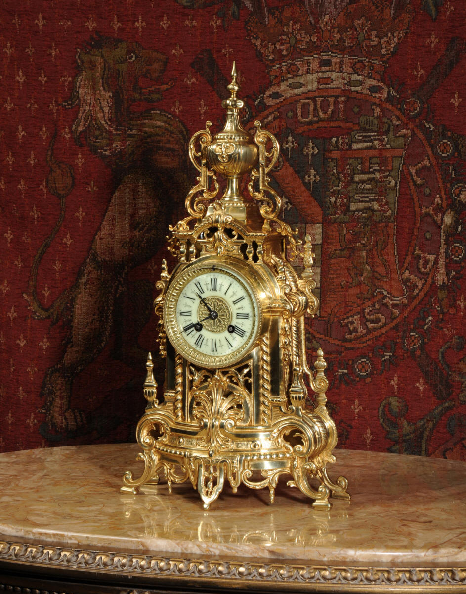 Condition of the case is excellent, the original gilding is beautifully clean and bright with hardly any wear or discolouration and there are no losses. The dial is also in excellent condition with just a faint hairline near the right hand winding hole. The clock makes a stunning display as you can see below.