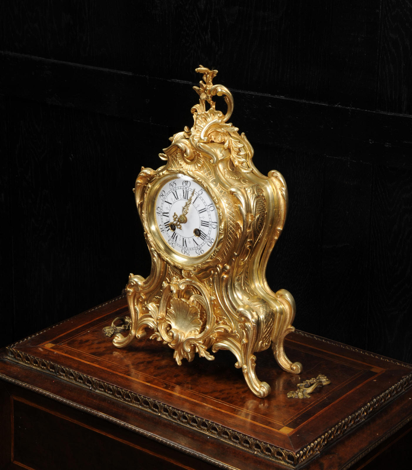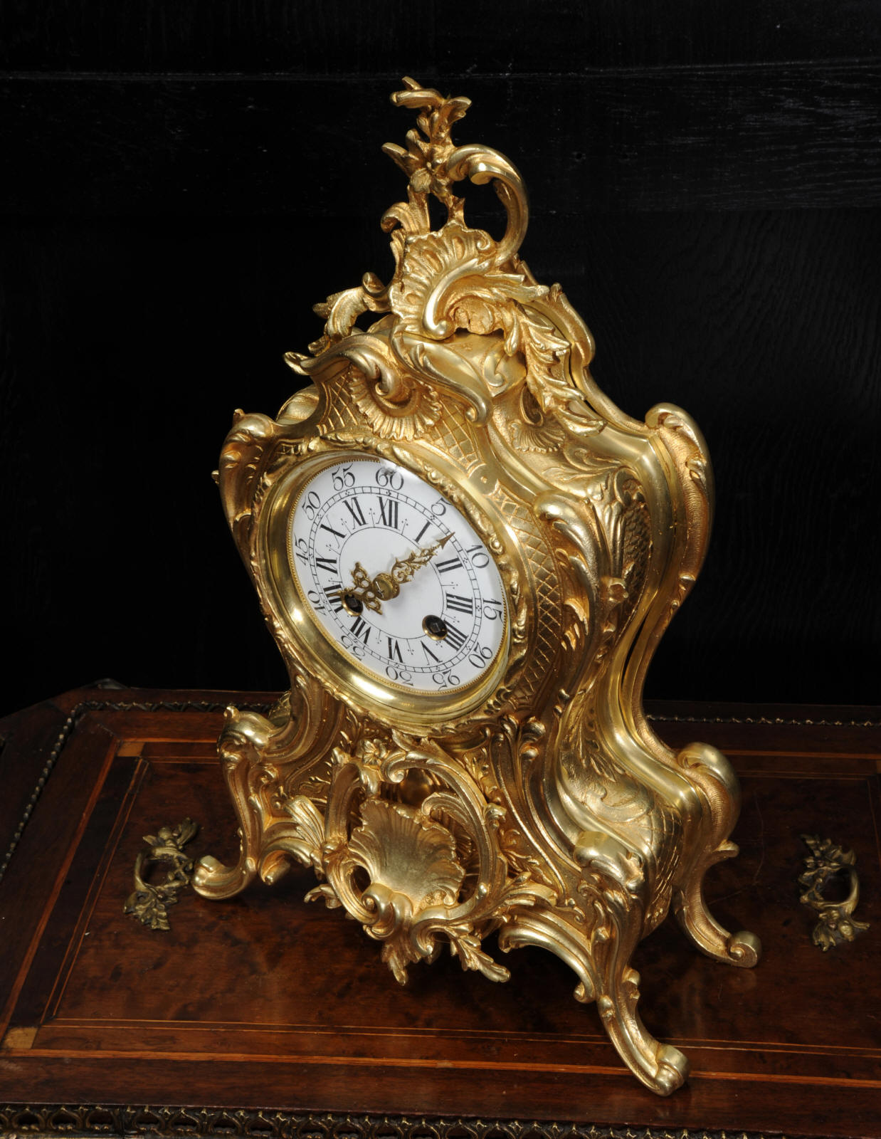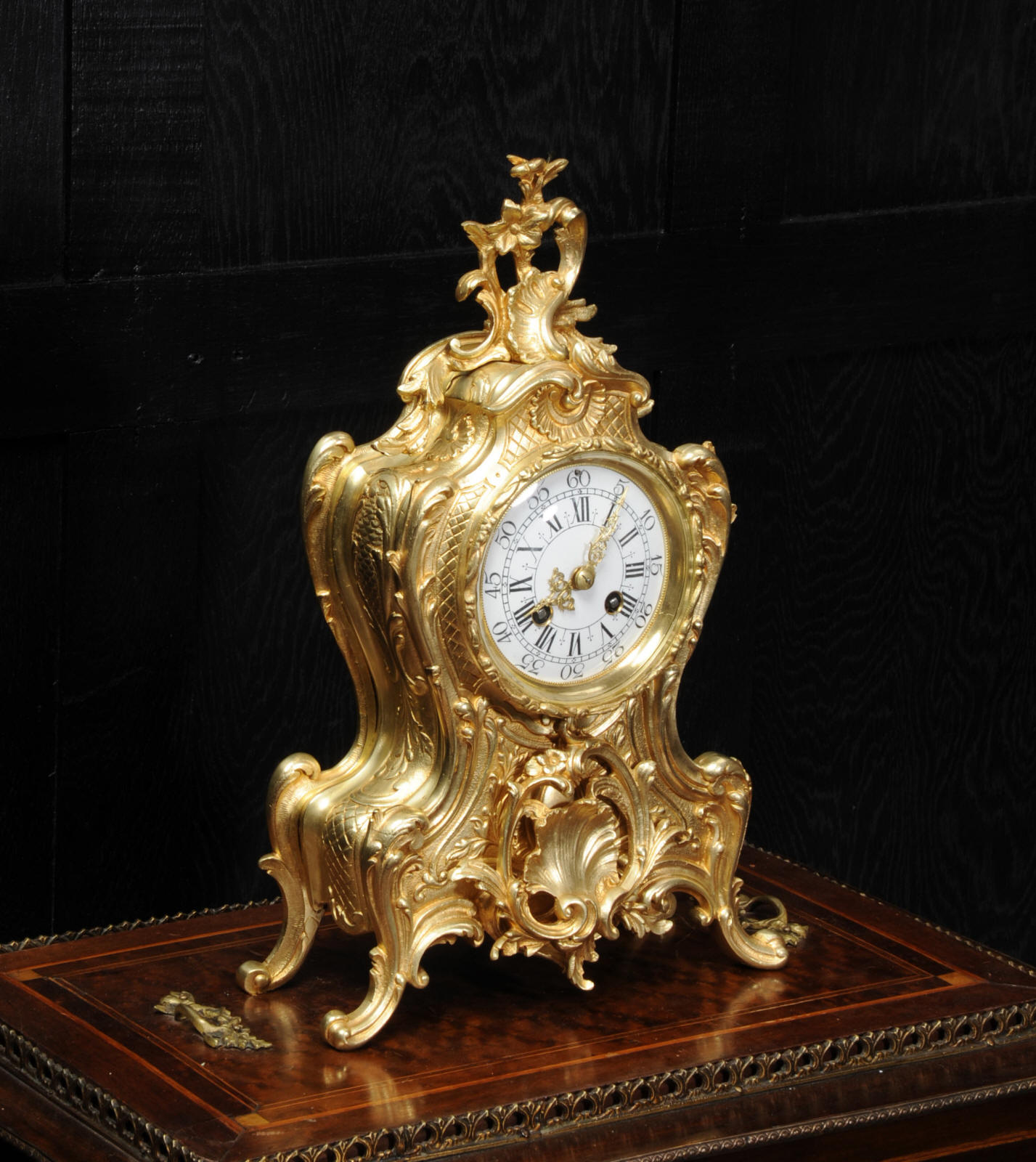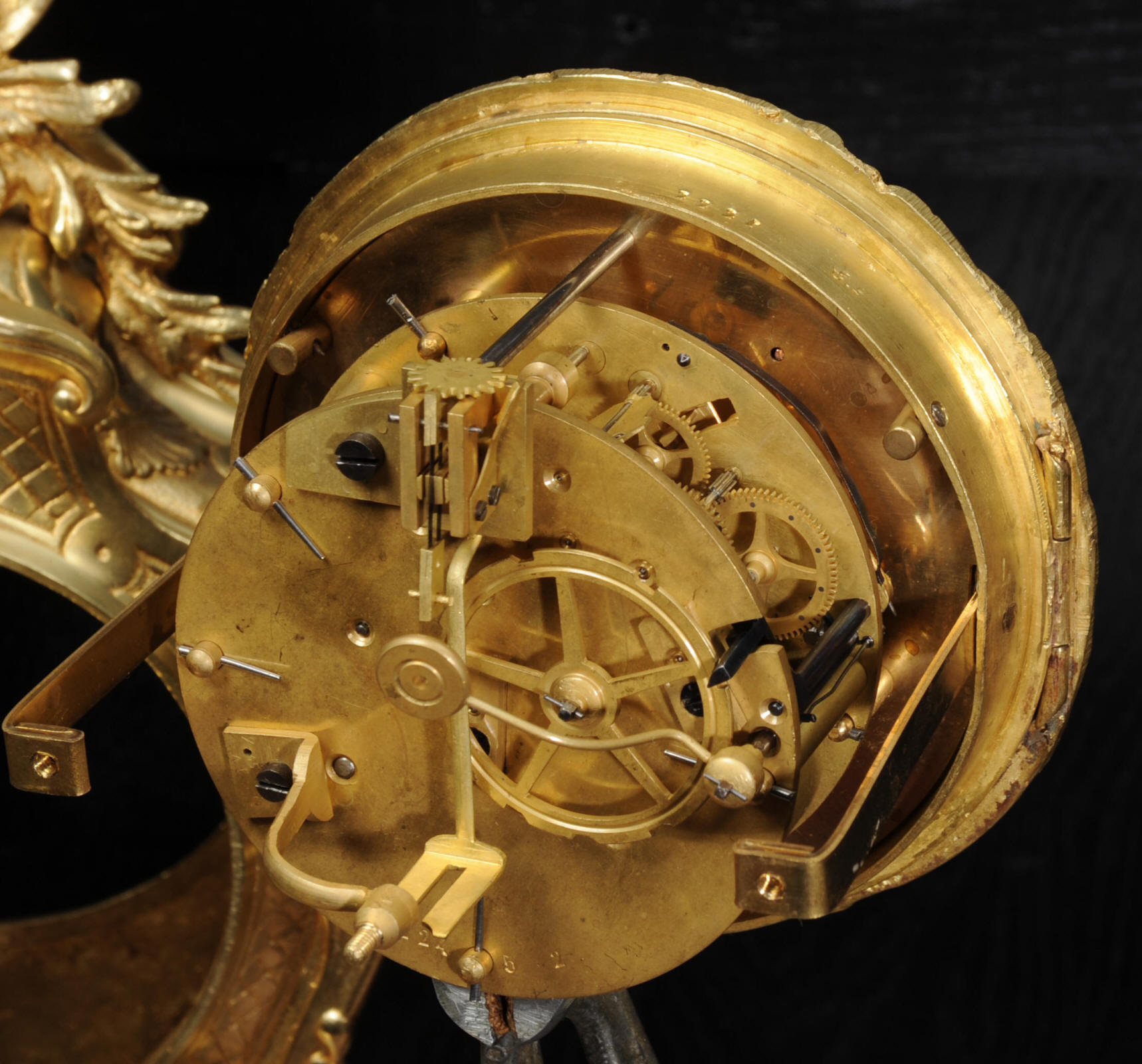 Condition of the case is excellent, the original gilding is beautifully clean and bright with hardly any wear or discolouration and there are no losses. The dial is also in excellent condition with no damage. Complete with pendulum, bell and a suitable key. Full setting up instructions supplied if required.