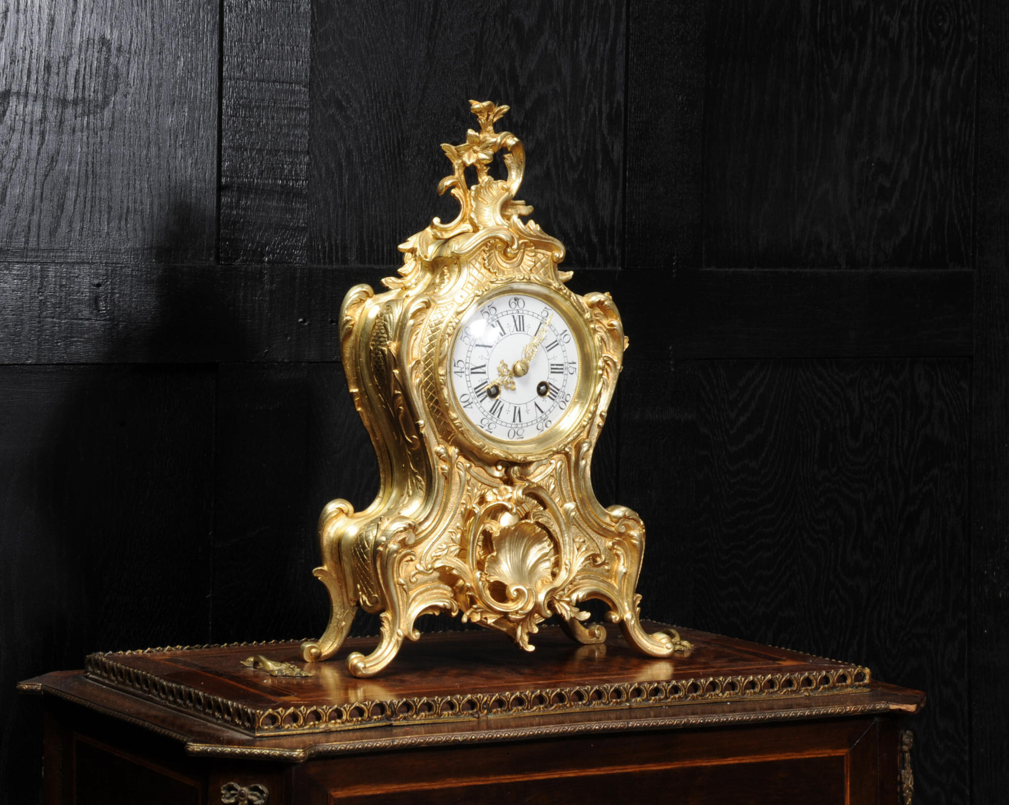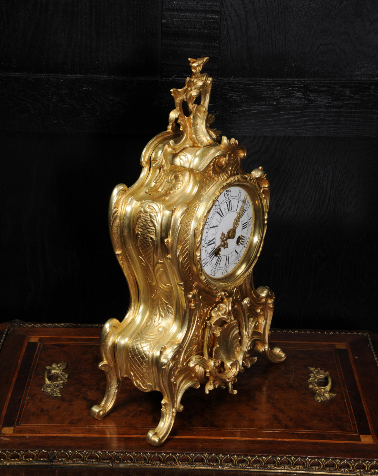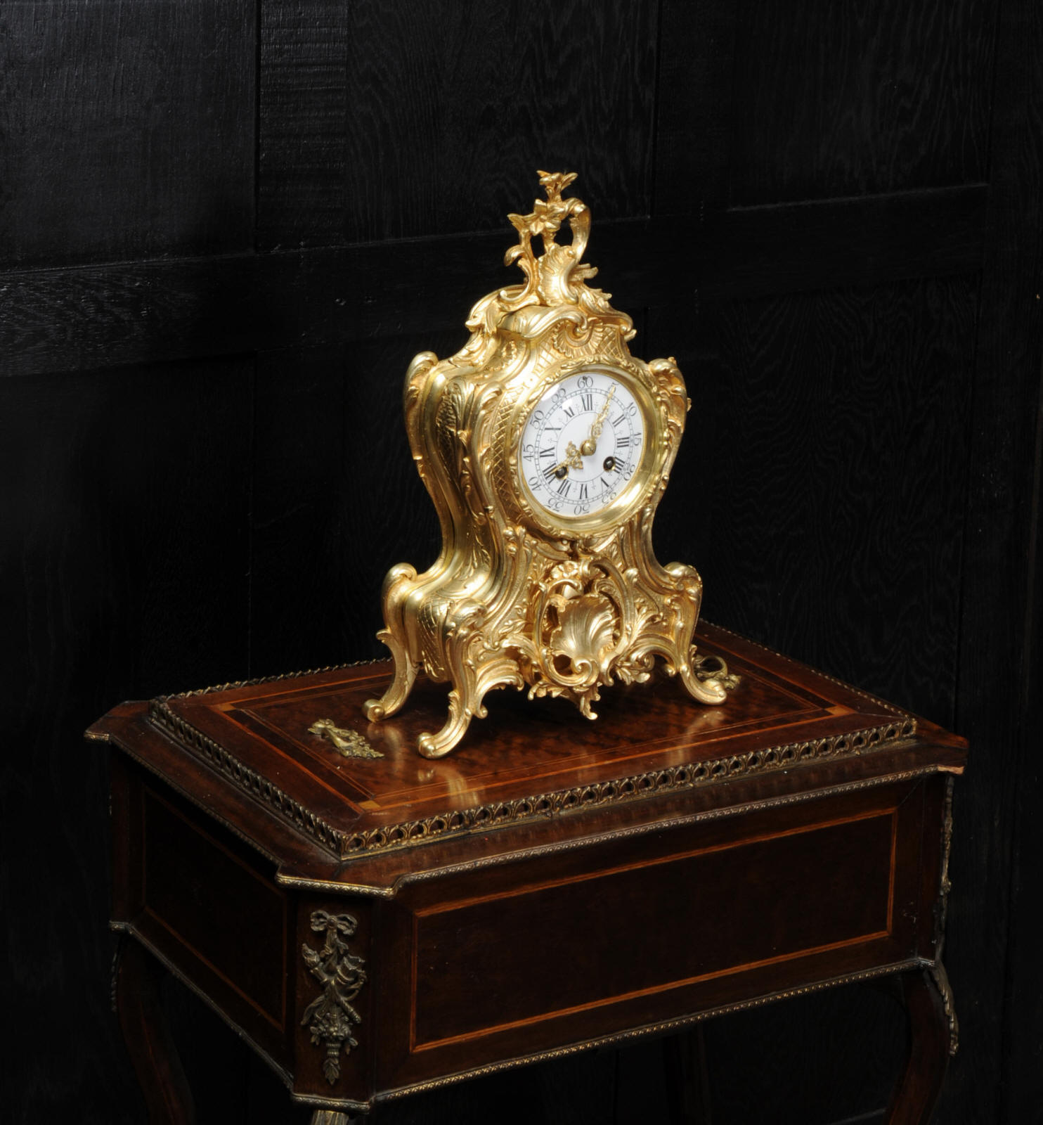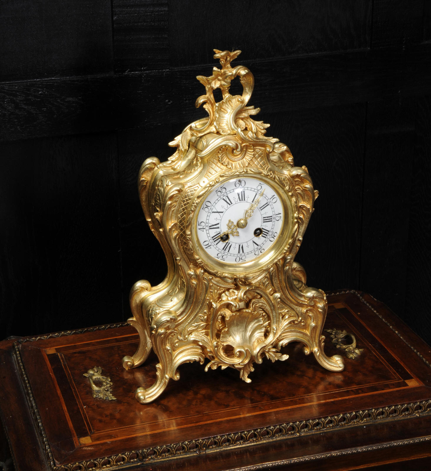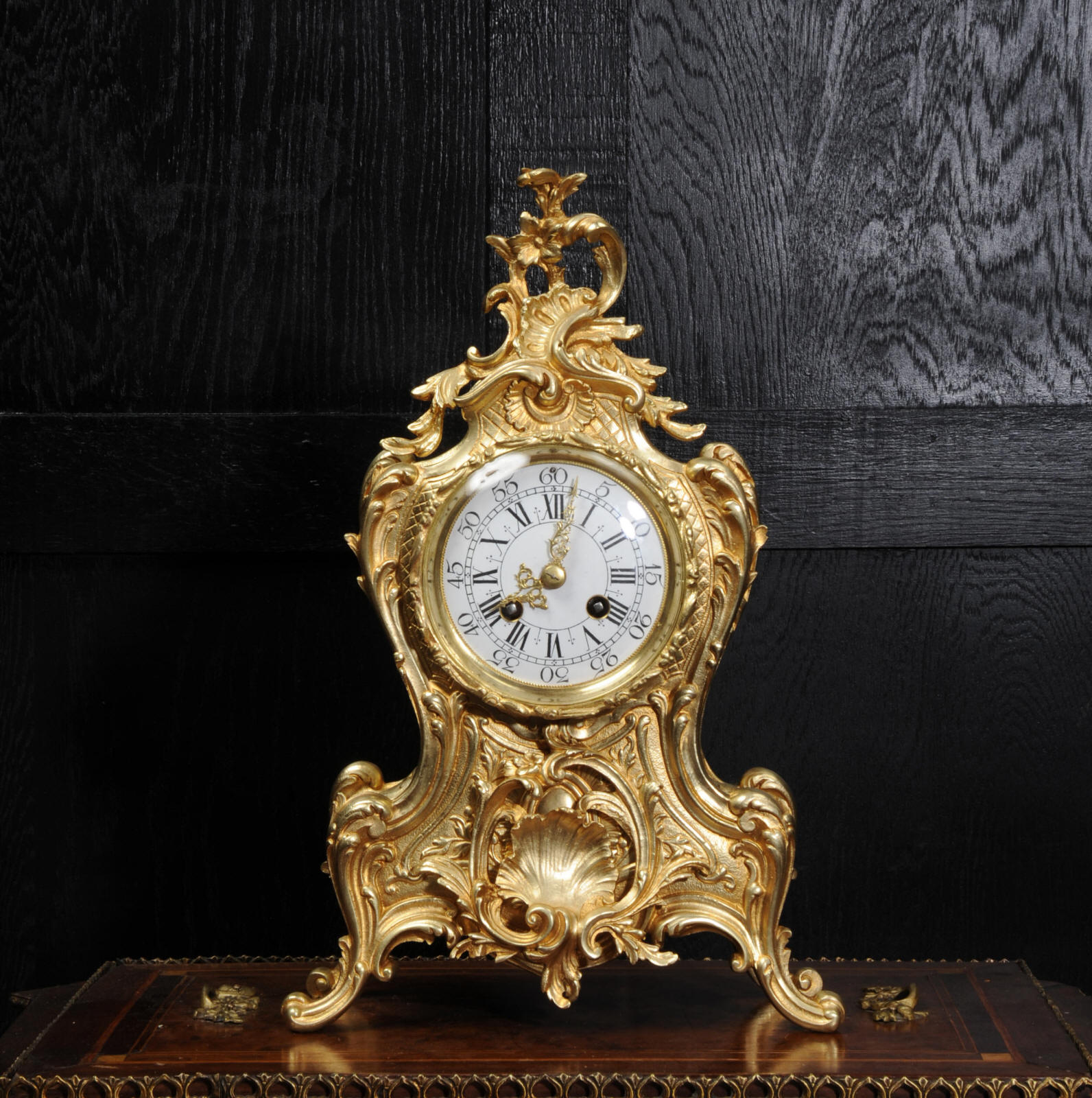 Condition of the case is excellent, the original gilding is beautifully clean and bright with hardly any wear or discolouration and there are no losses. The dial is also in excellent condition with no damage. Complete with pendulum, bell and a suitable key. Full setting up instructions supplied if required.