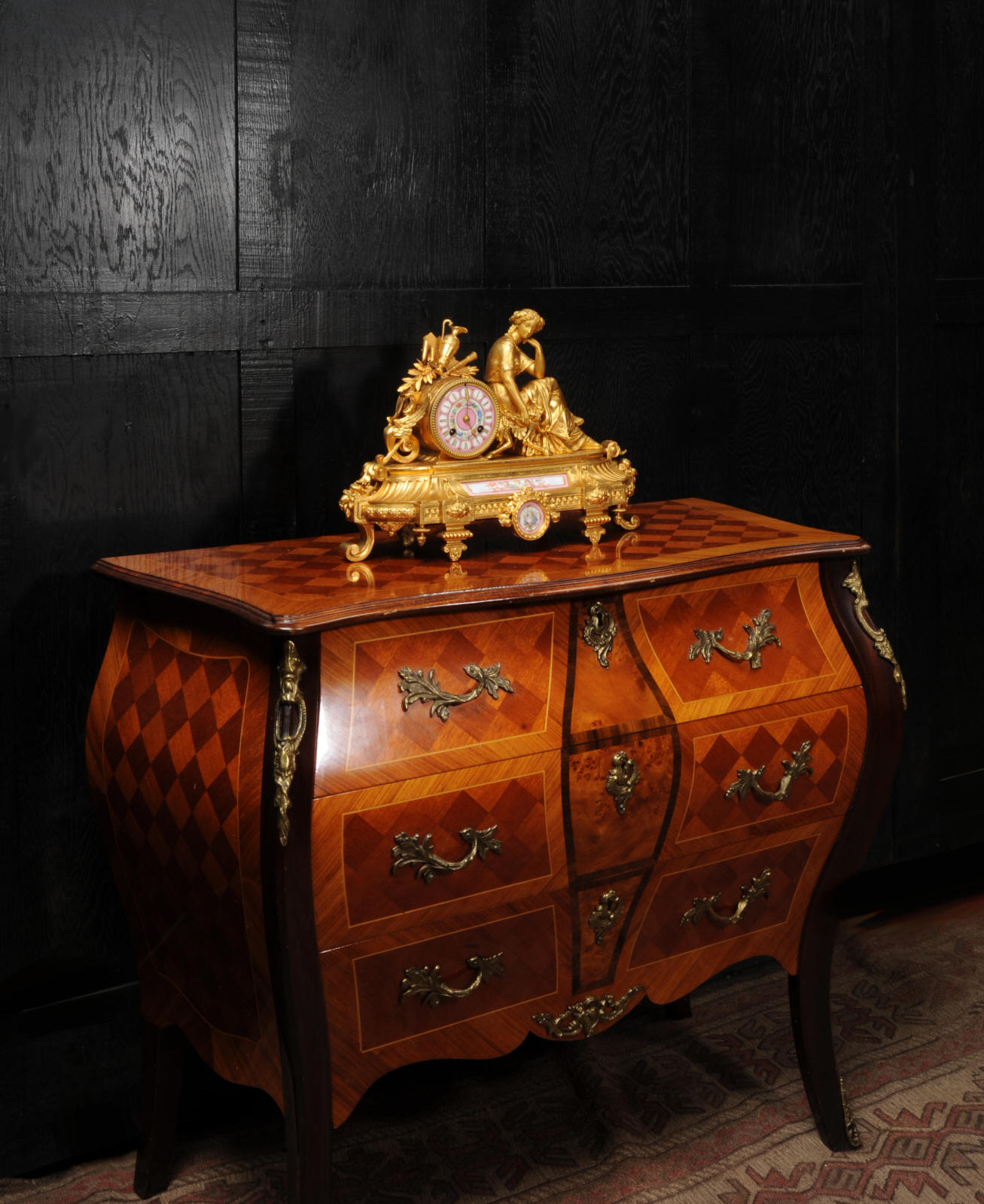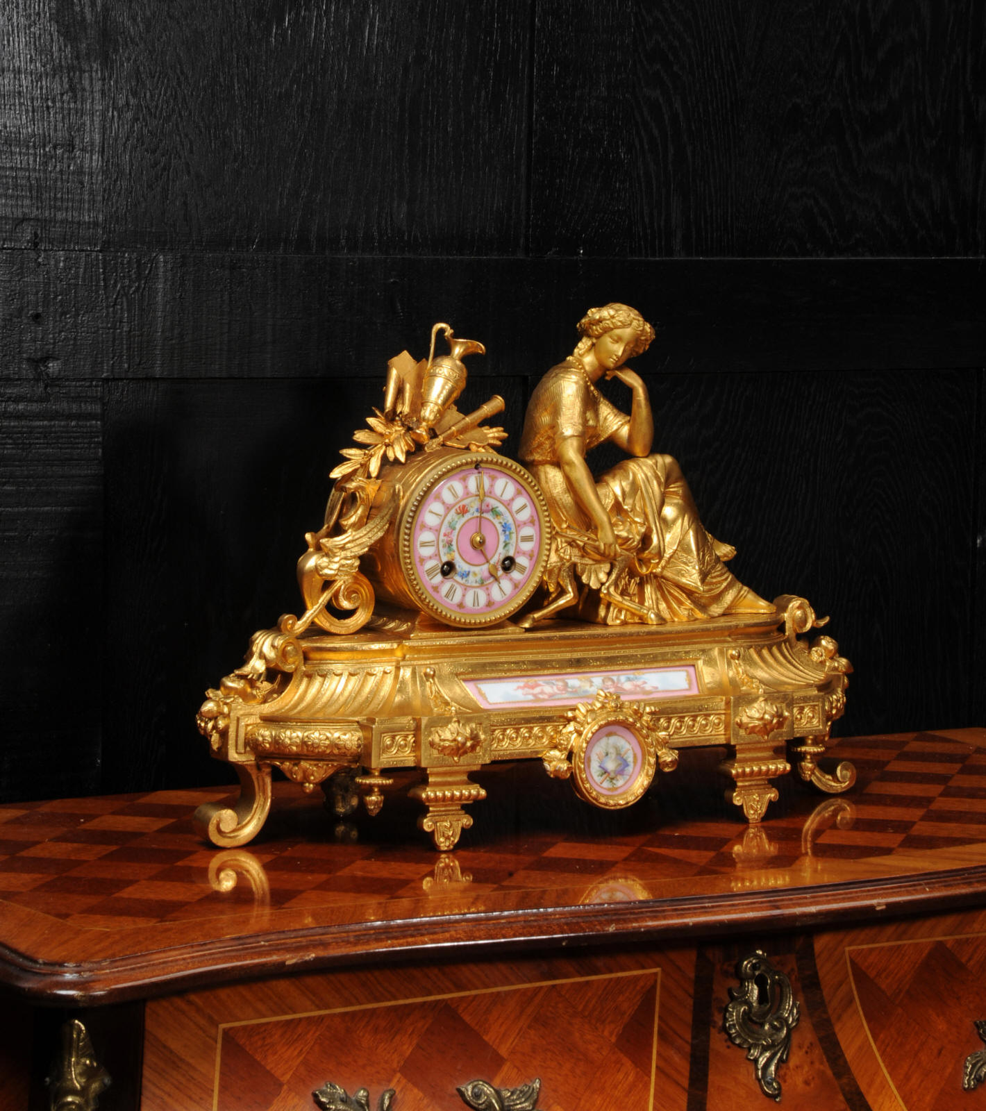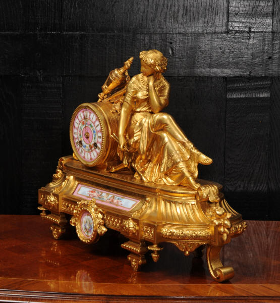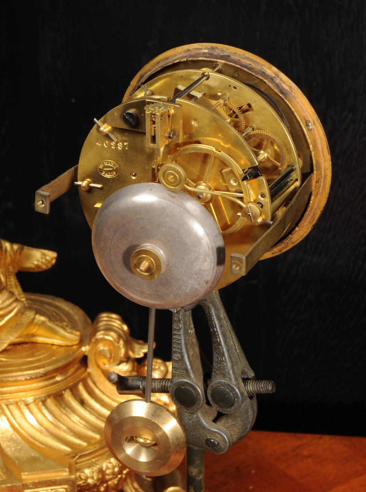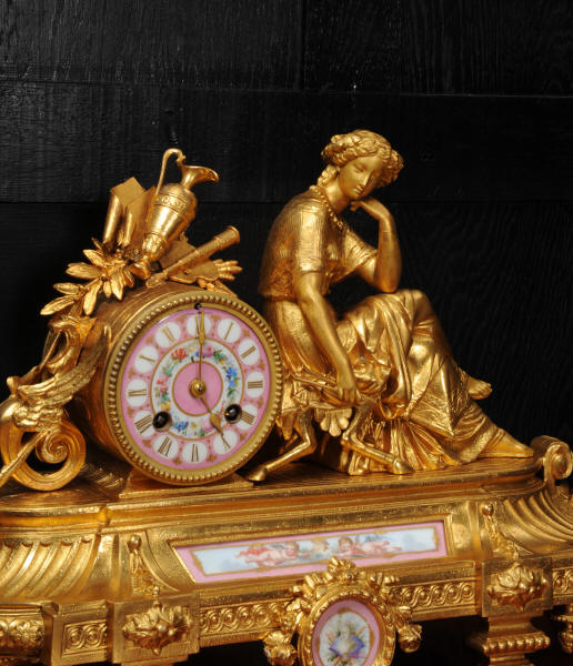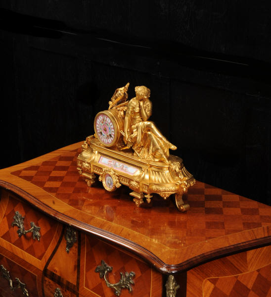 The dial is also porcelain, finely painted with a floral swag. It is complete with its original gilded hands and is signed for Henri Marc. Please note that this design of clock does not have a glazed bezel or a rear door. The French movement is by Japy Freres and is of the maker's usual high quality. It is in excellent clean and running condition having been fully overhauled by our clockmaker. Pendulum is a replacement. It runs for 8 days and strikes the hours and halves on a bell. Click the video below to hear the bell and watch the clock running! Condition of the case is excellent, the original gilding is beautifully clean and bright with some slight wear, discolouration and tarnish. The rear of the case has been repaired in the past but does not detract. The porcelain is in excellent condition with no damage and only very slight wear to the over-glaze gilt decoration.