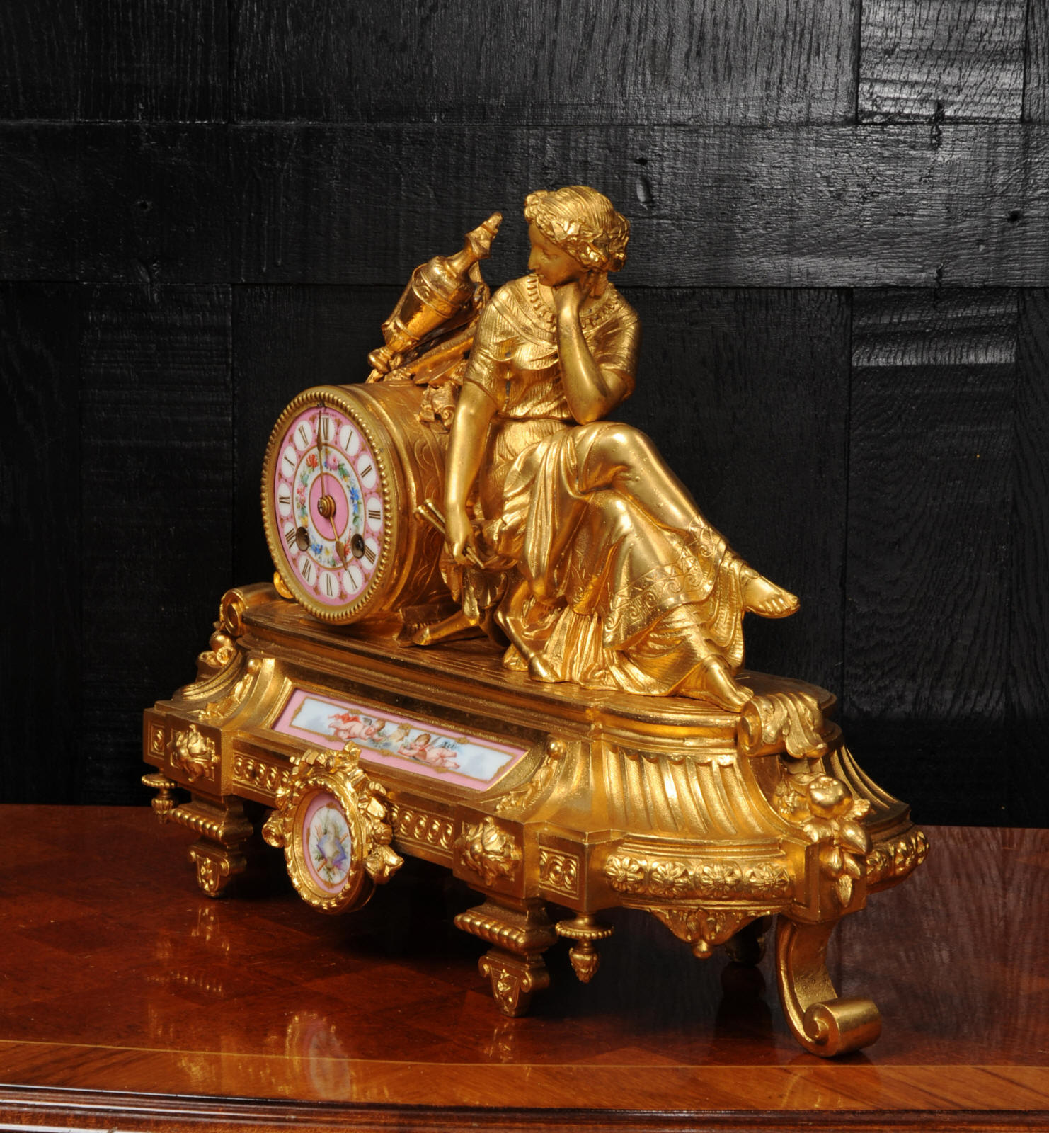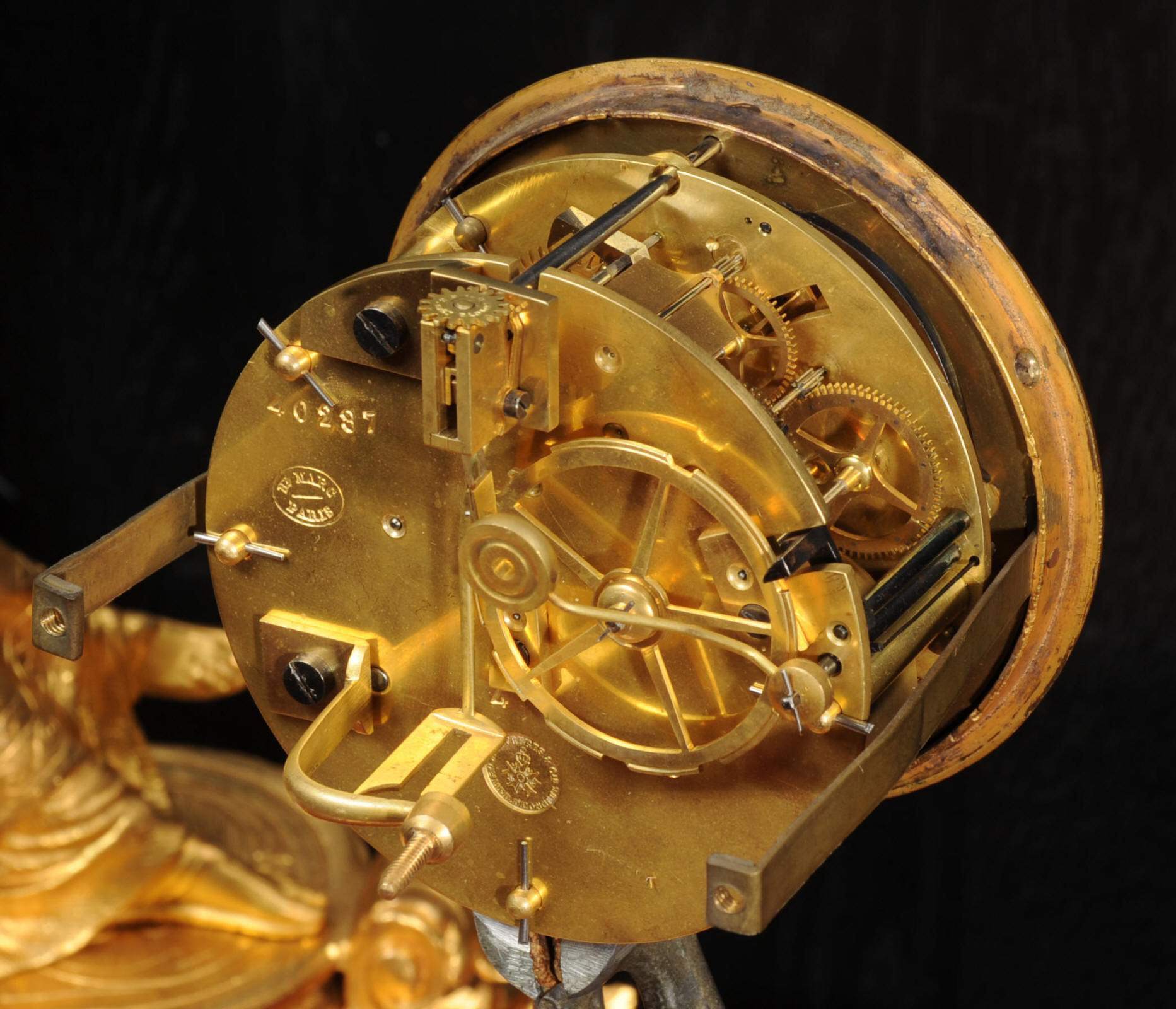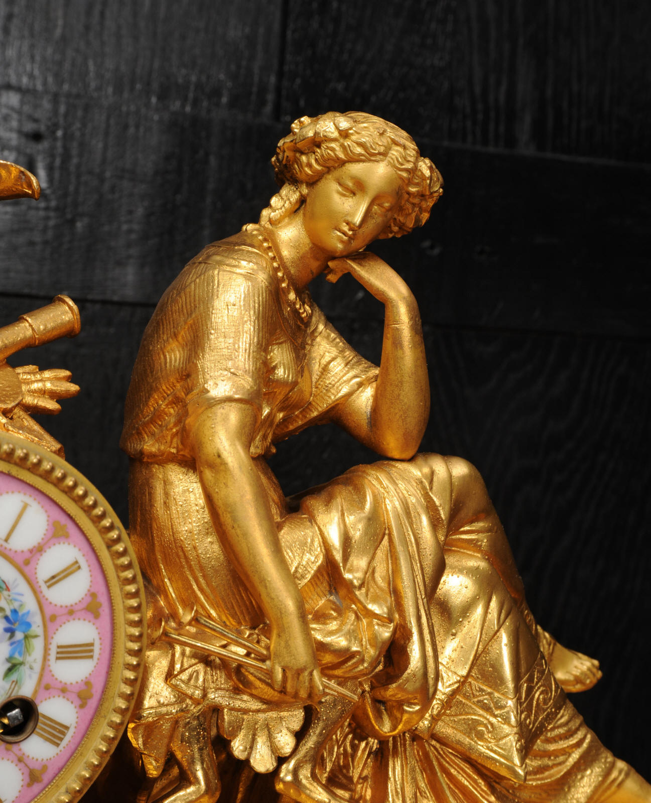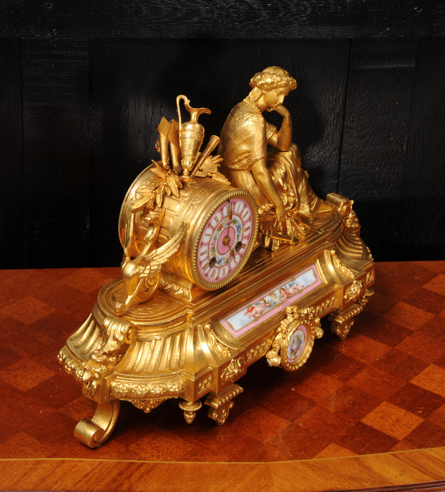 The dial is also porcelain, finely painted with a floral swag. It is complete with its original gilded hands and is signed for Henri Marc. Please note that this design of clock does not have a glazed bezel or a rear door. The French movement is by Japy Freres and is of the maker's usual high quality. It is in excellent clean and running condition having been fully overhauled by our clockmaker. Pendulum is a replacement. It runs for 8 days and strikes the hours and halves on a bell. Click the video below to hear the bell and watch the clock running! Condition of the case is excellent, the original gilding is beautifully clean and bright with some slight wear, discolouration and tarnish. The rear of the case has been repaired in the past but does not detract. The porcelain is in excellent condition with no damage and only very slight wear to the over-glaze gilt decoration.