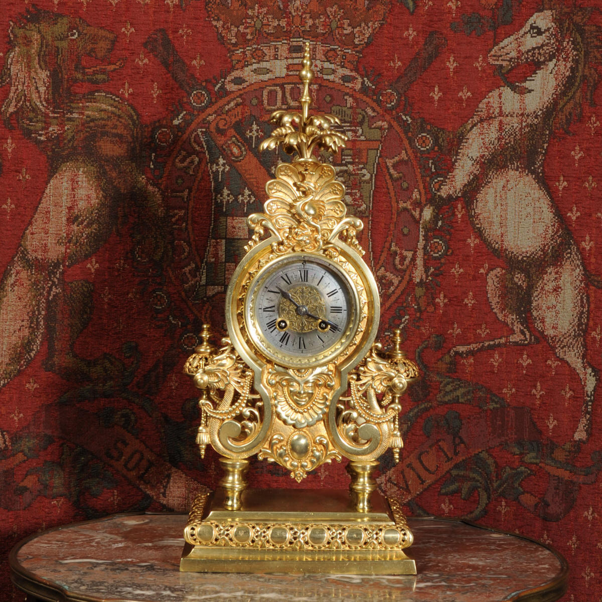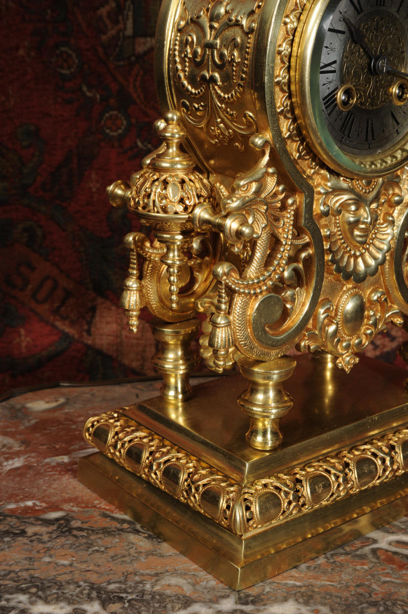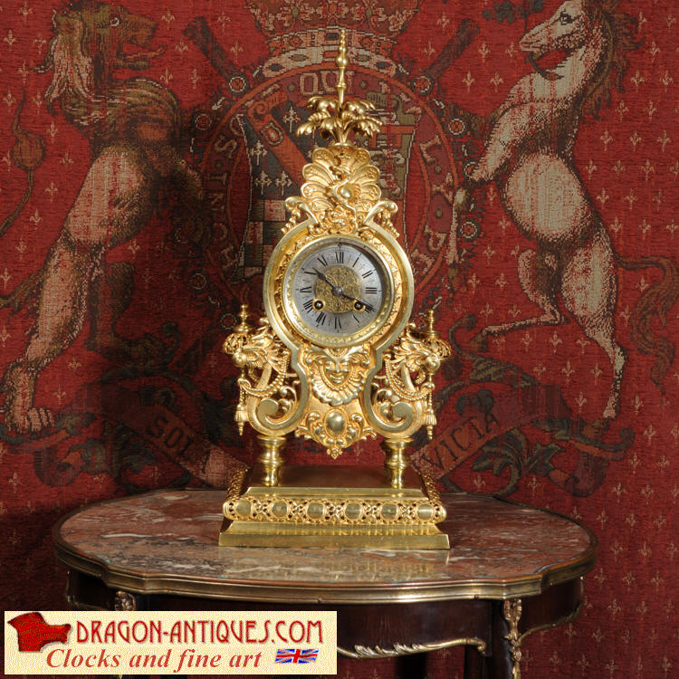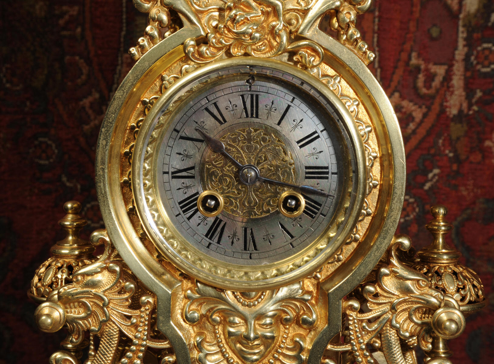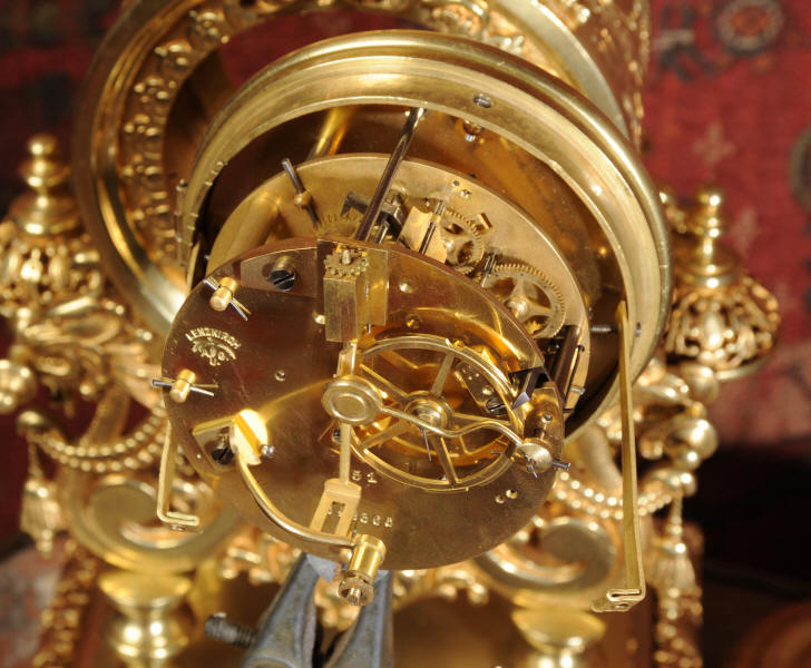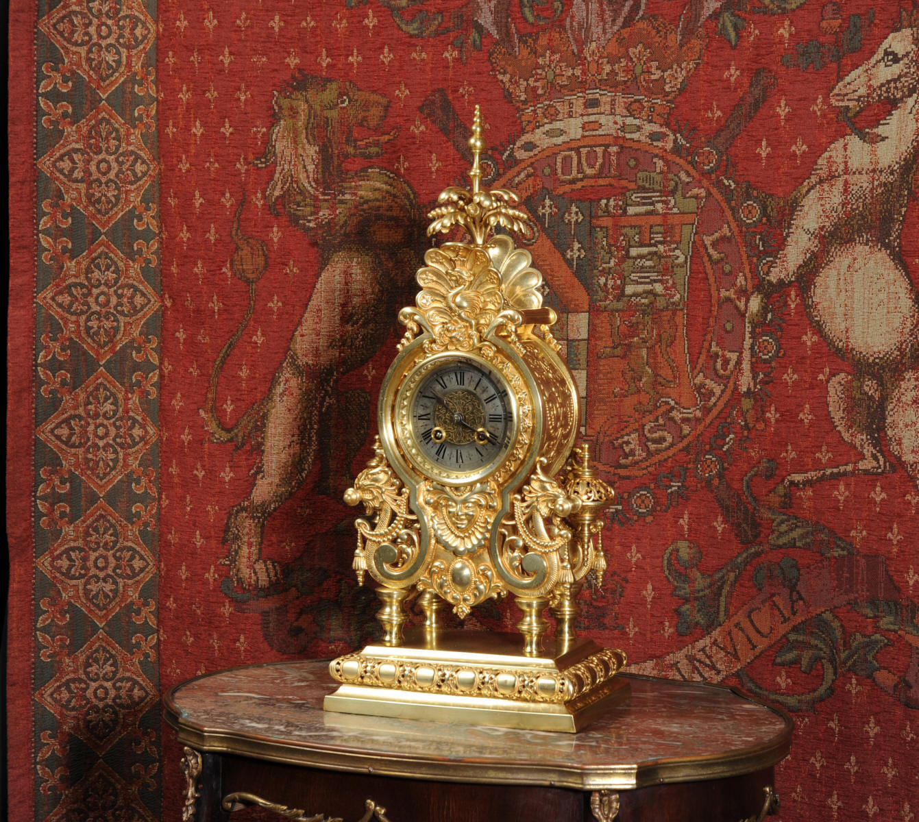 The stunning dial is bronze with an engraved silvered chapter ring. The Lenzkirch movement is of French design and we can date this from the serial number 549365 to the year 1881. It is in excellent and fully running condition, we have overhauled and thoroughly tested it in our workshop. It strikes a bell at the hours and the halves and runs for 8 days. The pendulum is a replacement. Please see the video below. Condition of the case is excellent, the original gilding is beautifully clean and bright with hardly any wear or discolouration and there are no losses. The dial is also in excellent condition This is a stunning clock in beautiful condition.