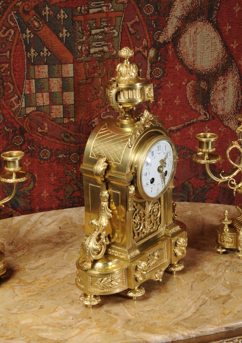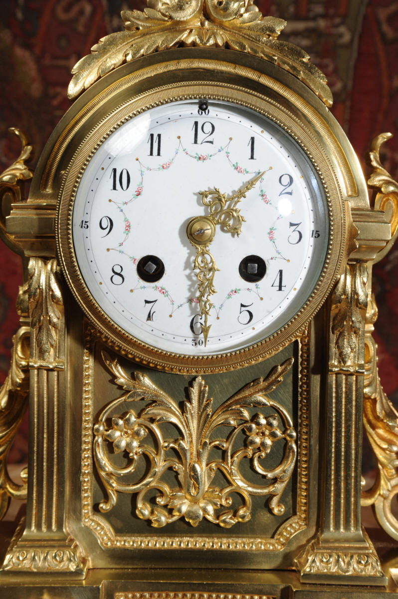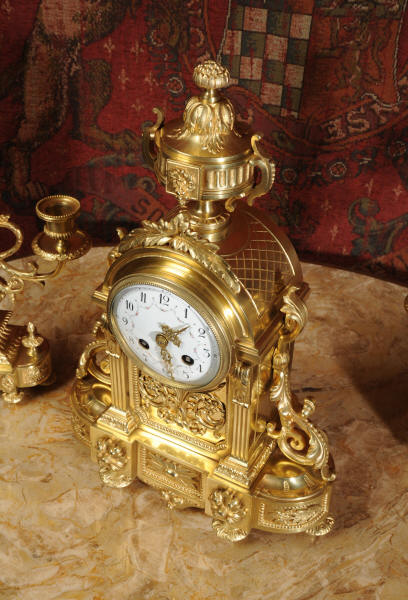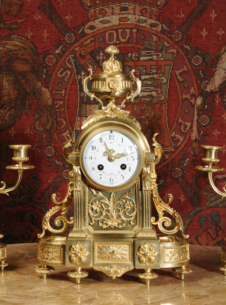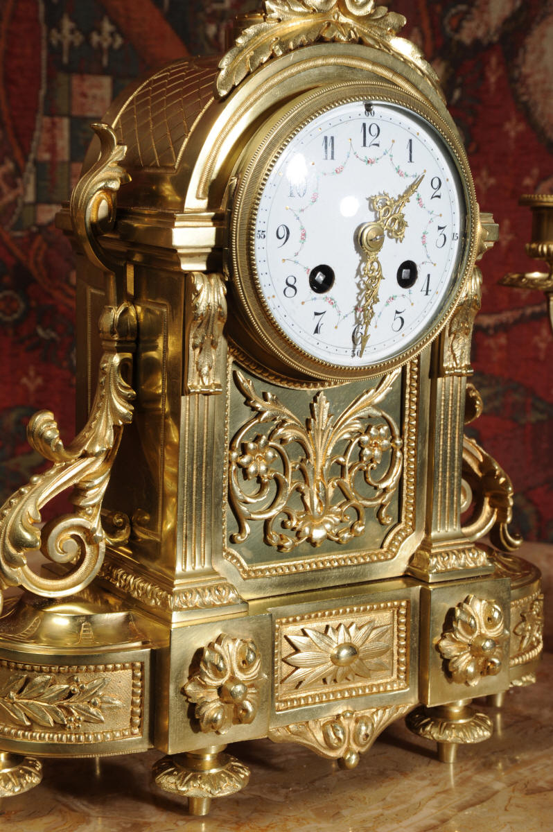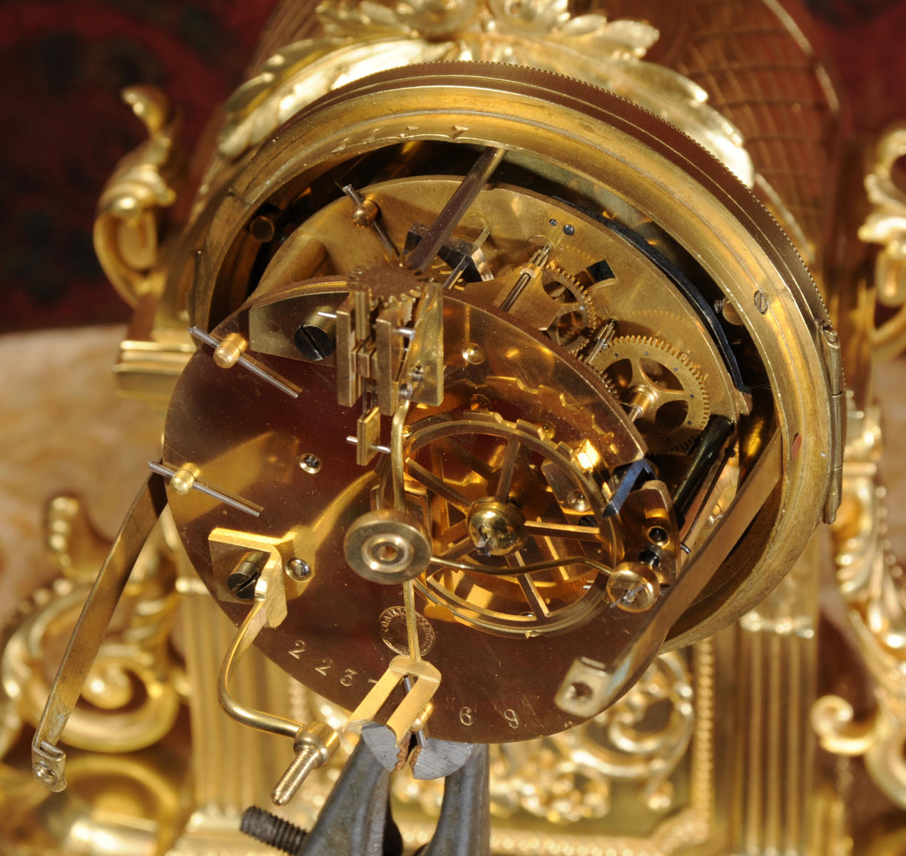 Condition of the case is excellent, the original gilding is beautifully clean and bright with hardly any wear or discolouration and there are no losses. The dial is also in excellent condition just some tiny nibbles around the winding holes and a couple of small hairlines. Candelabra are slightly distorted. The original glass has a small scratch.