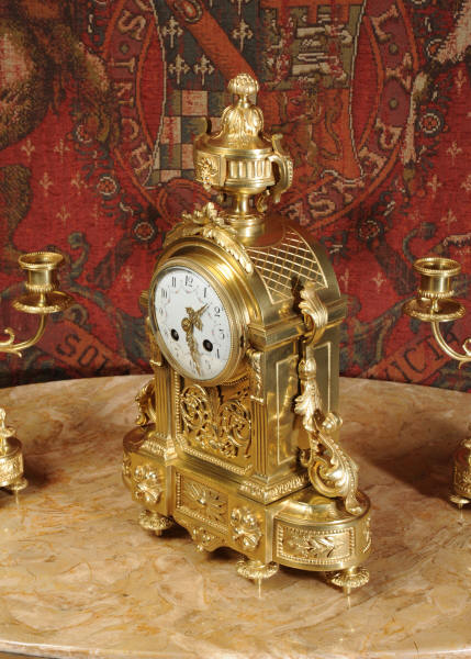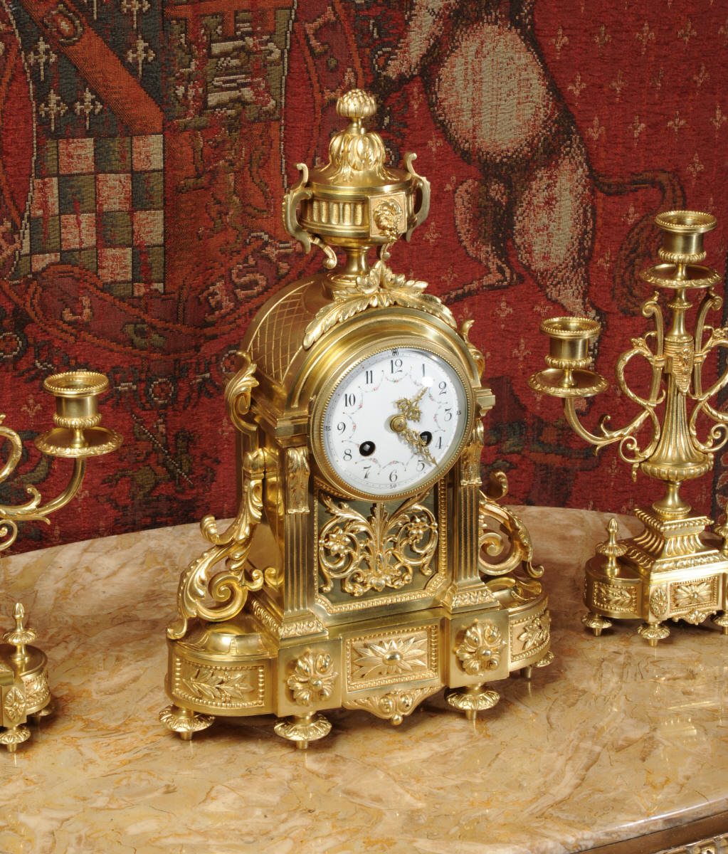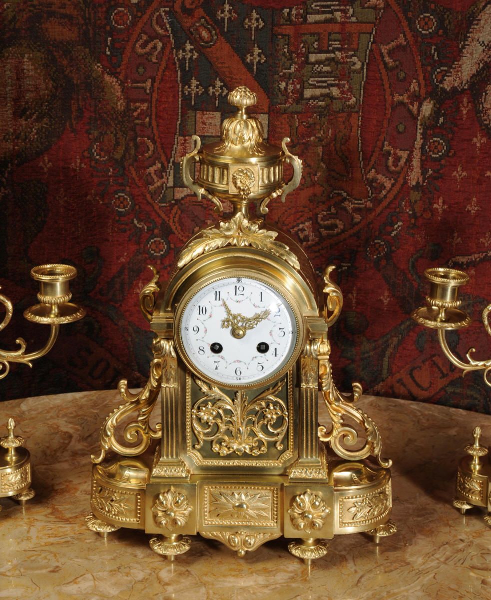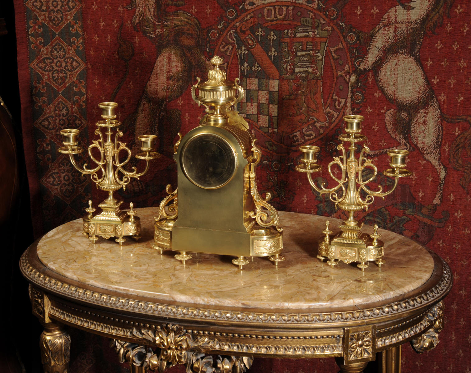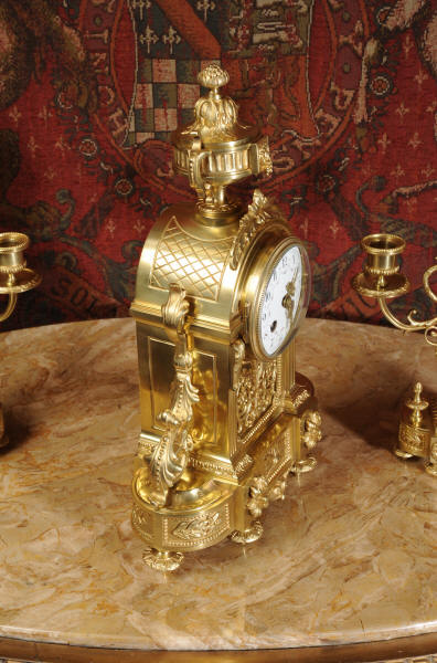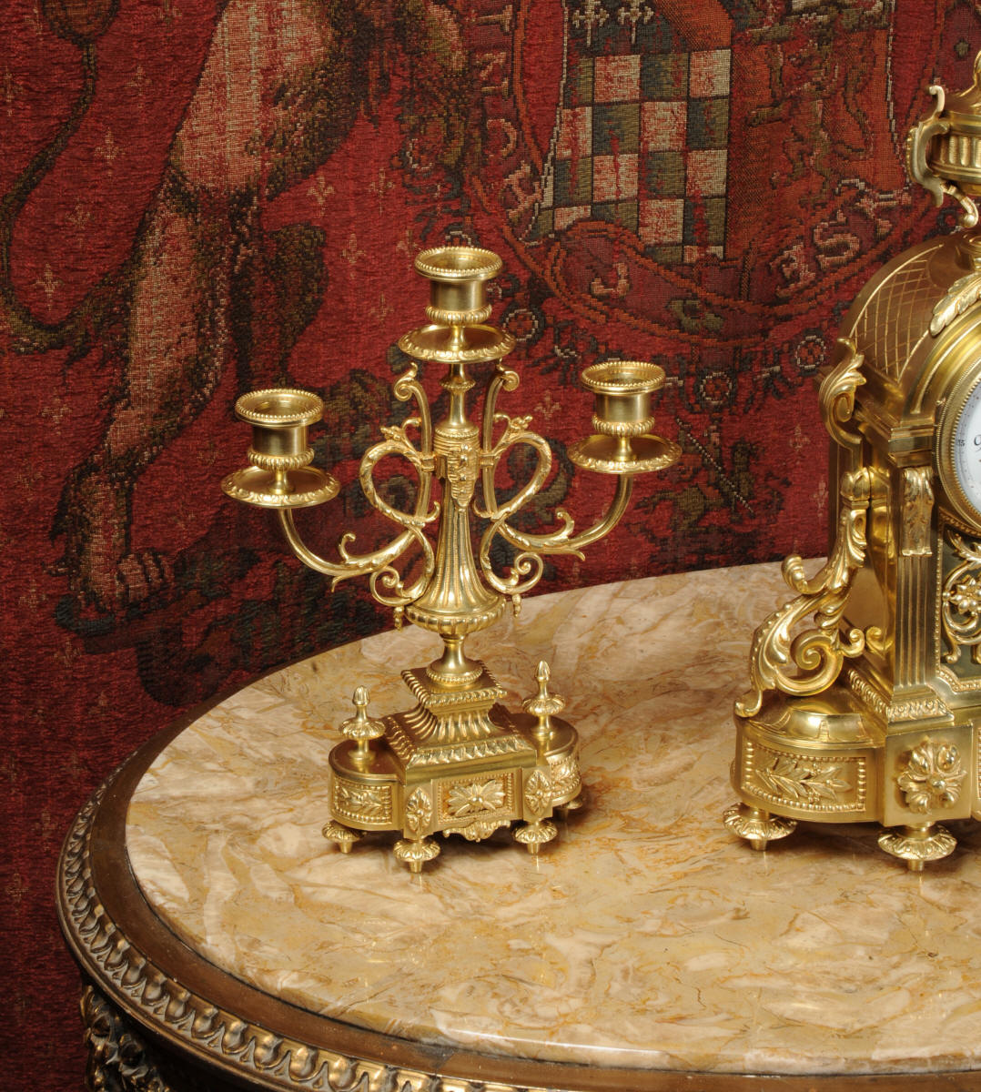 Condition of the case is excellent, the original gilding is beautifully clean and bright with hardly any wear or discolouration and there are no losses. The dial is also in excellent condition just some tiny nibbles around the winding holes and a couple of small hairlines. Candelabra are slightly distorted. The original glass has a small scratch.