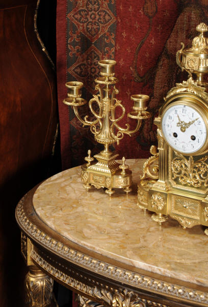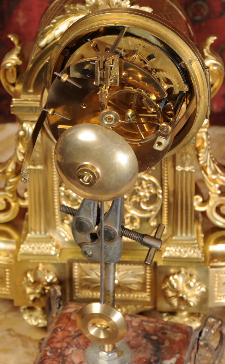 The French movement is by Vincenti and has the makers mark on the movement backplate. It is of high quality and is in excellent clean and running condition having been fully overhauled by our clockmaker. Pendulum is a replacement. It runs for 8 days and strikes the hours and halves on a bell. Click the video clip below to hear the bell and watch the clock running!