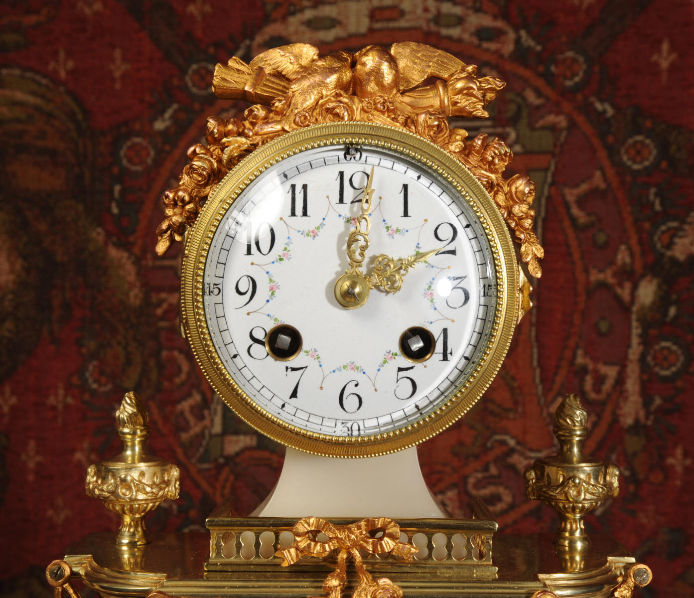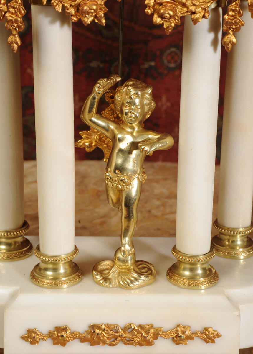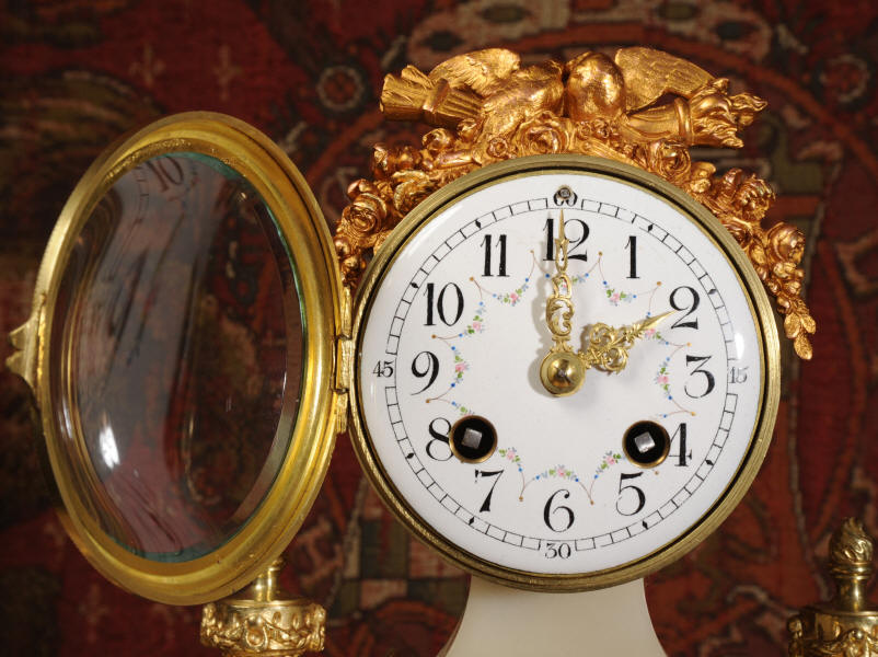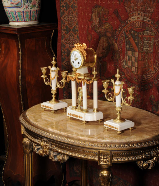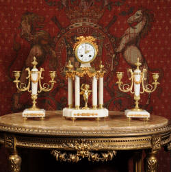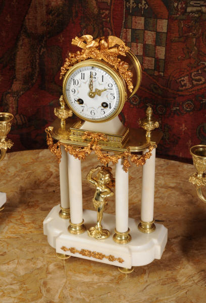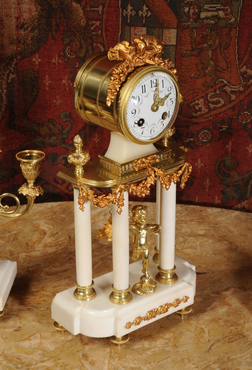 Antique Clock Set ~ Ormolu and White Marble