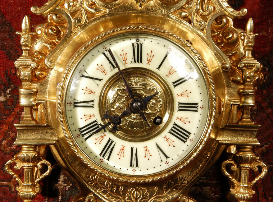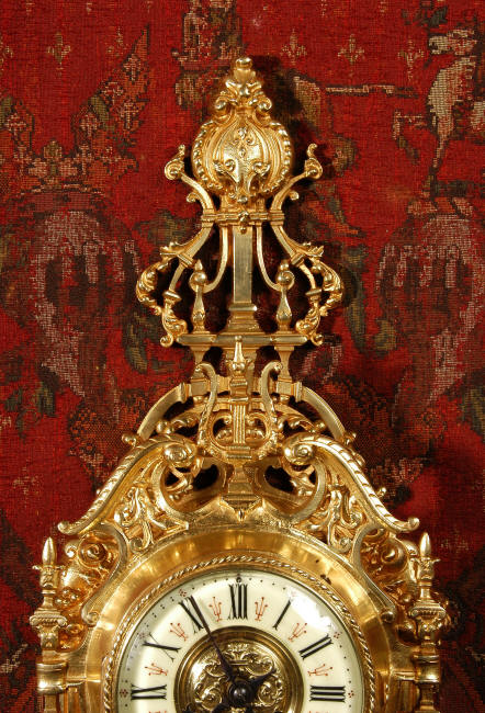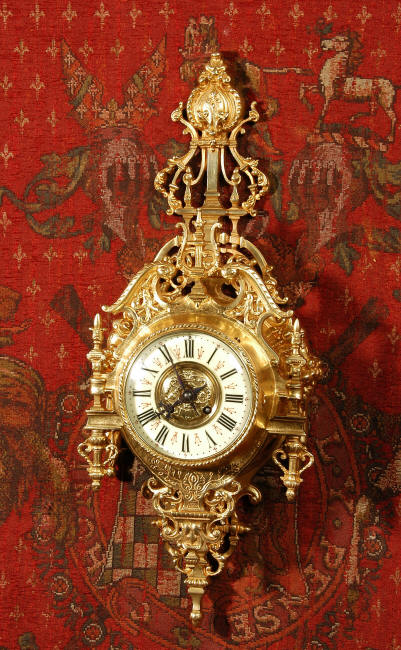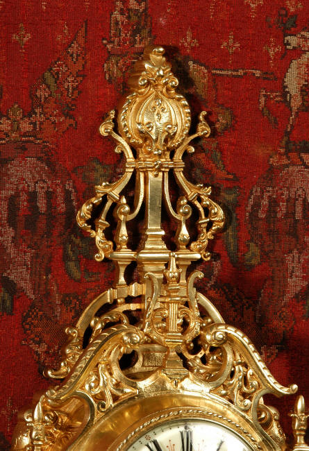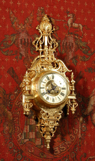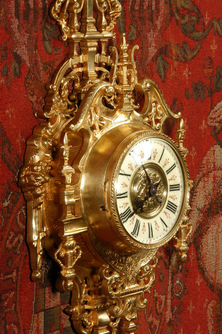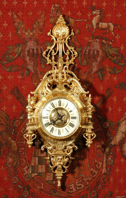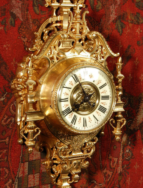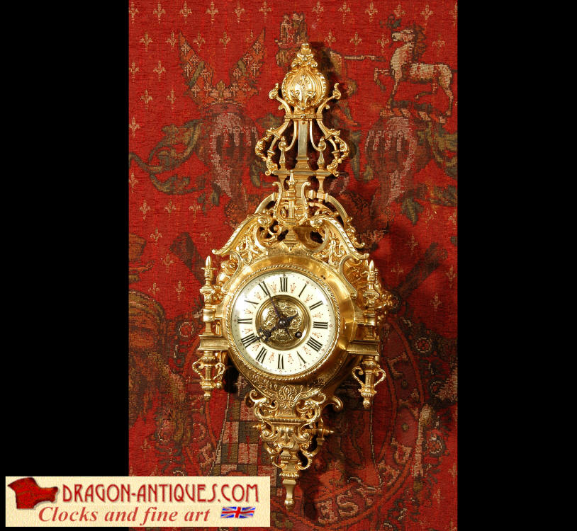 ~ French - Circa 1880 ~ ~~ Fully overhauled and tested ~~ A stunning antique French cartel wall clock, resplendent in its original gilding which is bright and clean. It is Baroque in style and features stylised mythical creatures and flowing foliage. Above the dial is a swan neck pediment with a lyre in the centre. The large dial has a dished gilt brass centre and is enamel on copper with red half-hour markers. It is complete with original blued steel hands and bevelled convex glass. The French movement is by the famous maker Japy Freres and has their 'Grande Medaille de Honour' mark on the movement backplate. We have stripped, cleaned and fully overhauled the movement. We then tested the movement for at least 2 weeks to prove its reliability. Pendulum is a replacement. Duration of the movement is 8 days between winding and it sounds the hours and half-hours on a sonorous bell. Below we have a video of the movement running and striking. Condition of the case is
