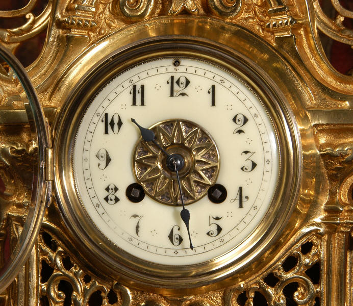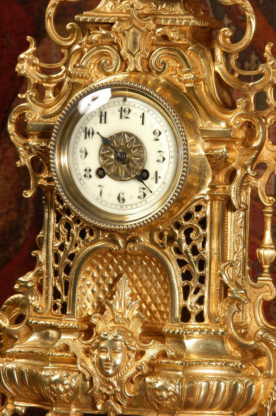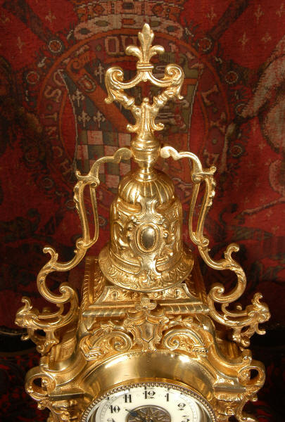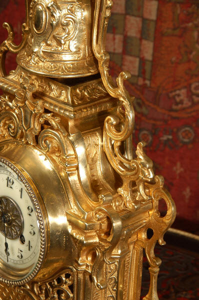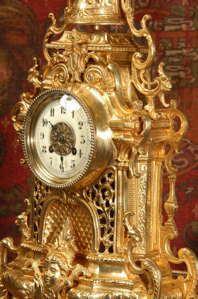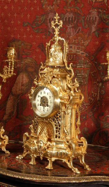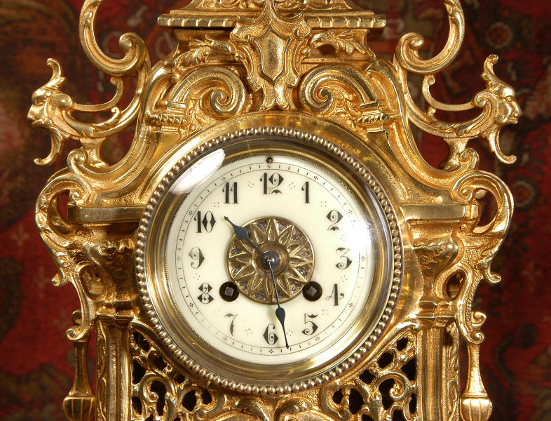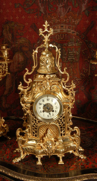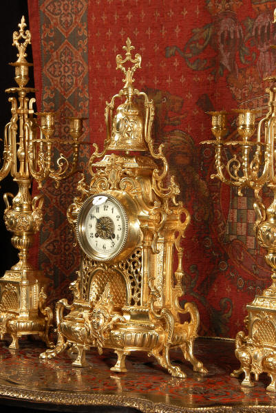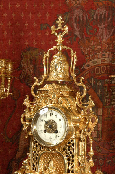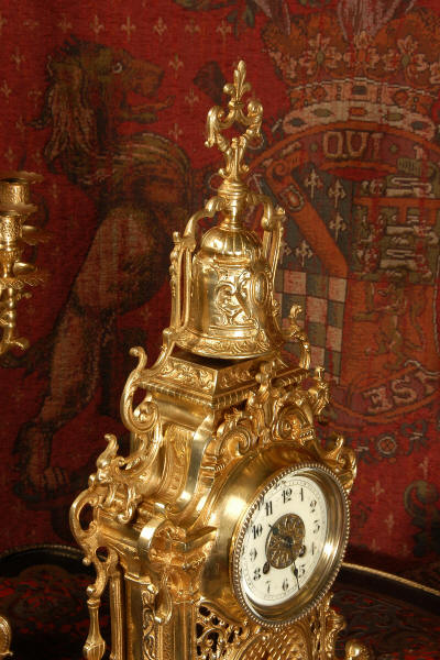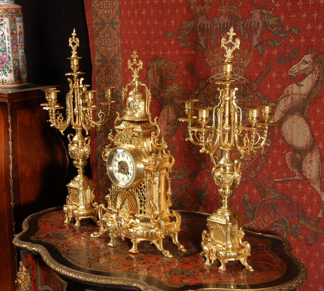 original antique French Gothic clock set, beautifully made in gilt brass, very heavy and