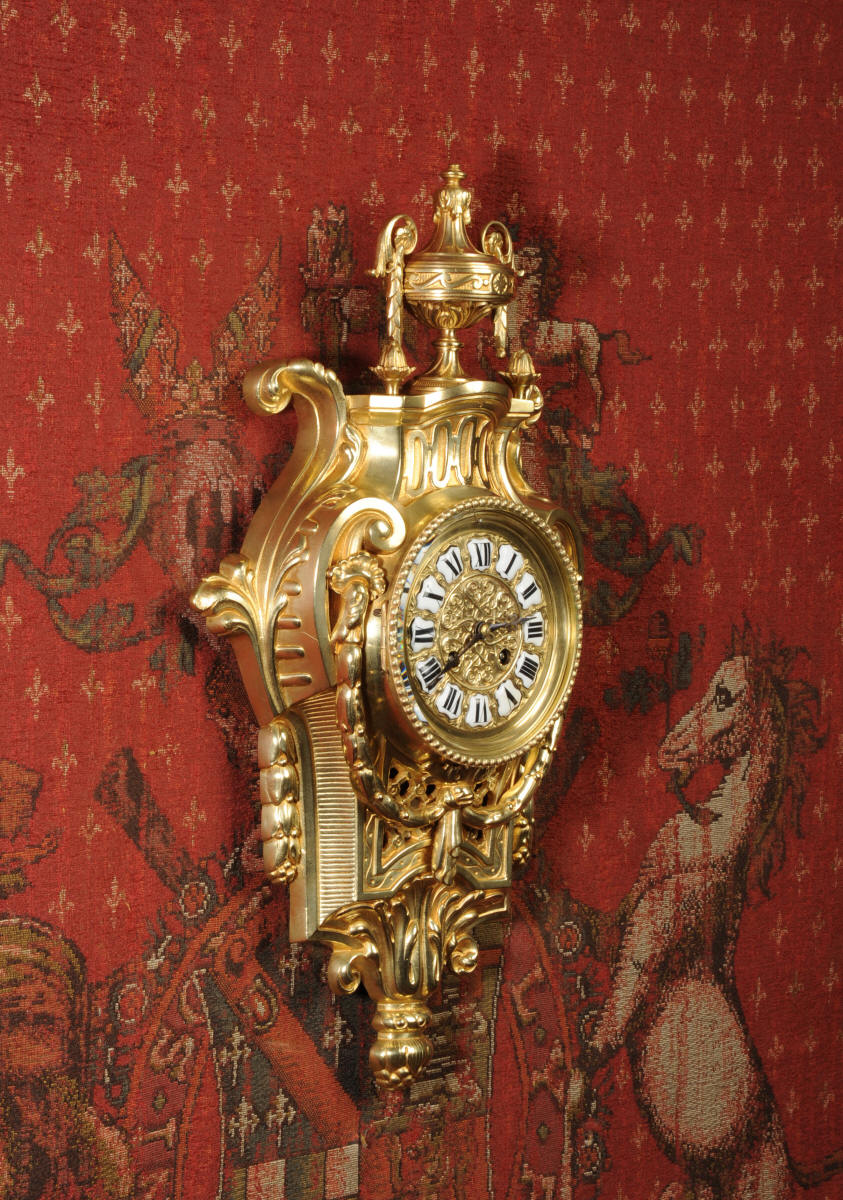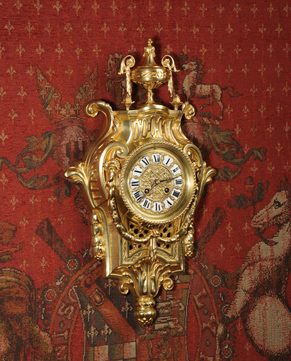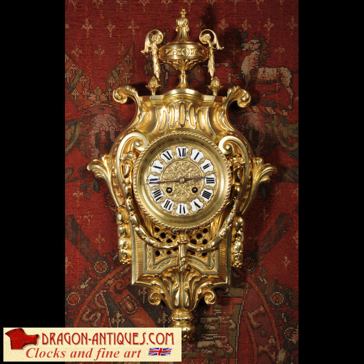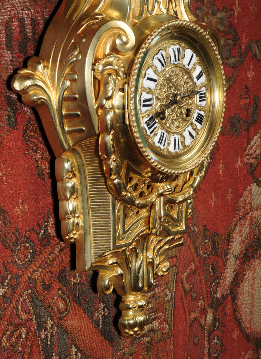 Freres Antique French Gilt Bronze Cartel Wall Clock