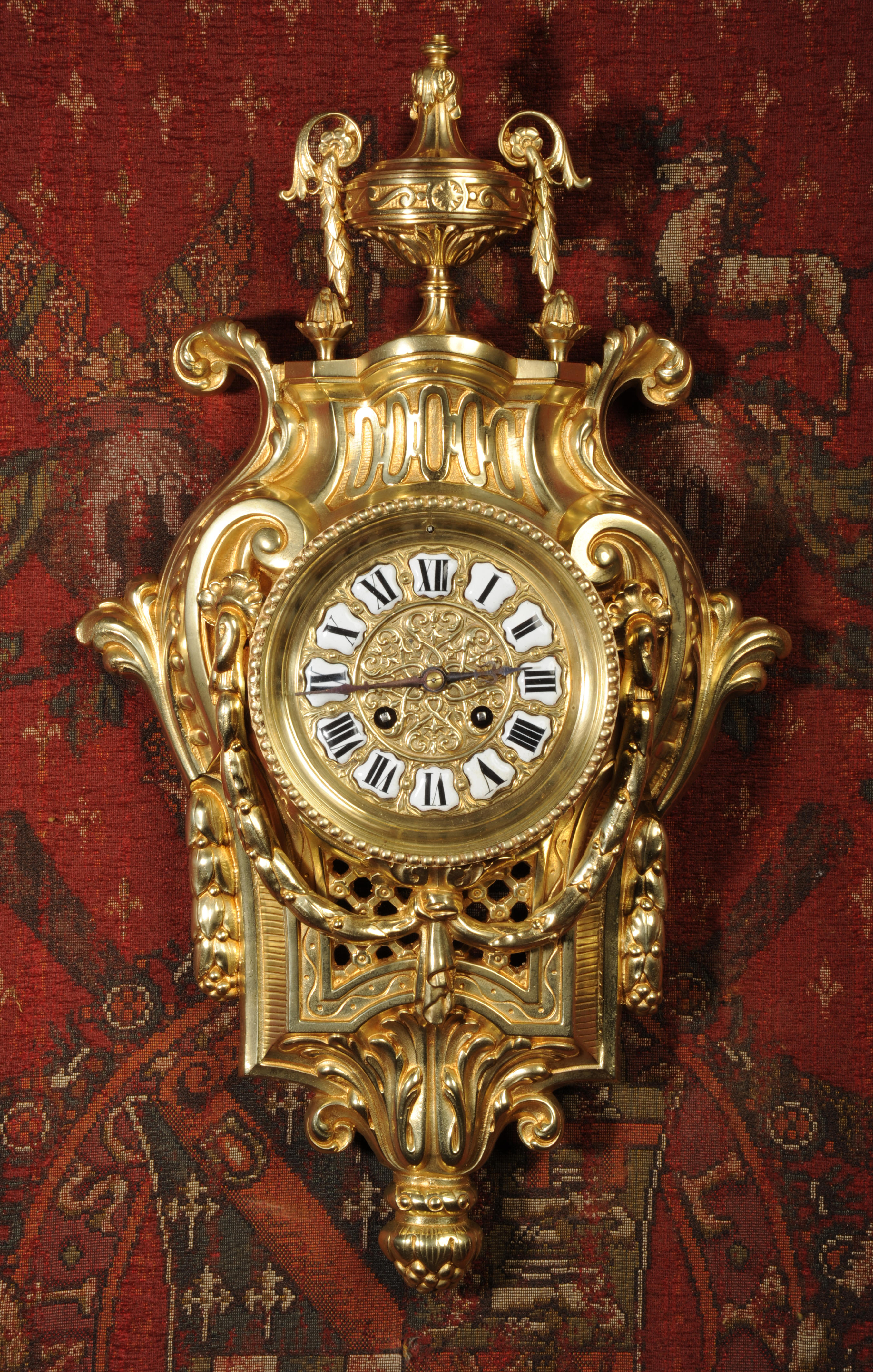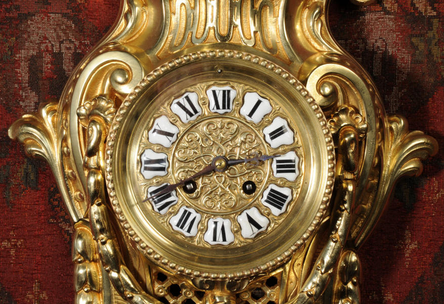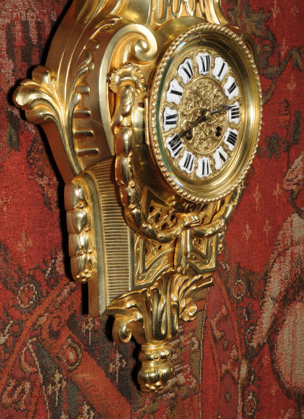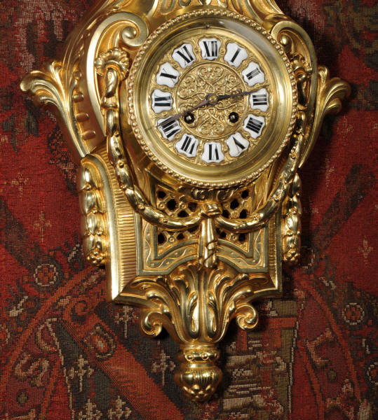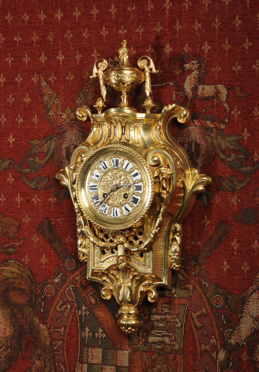 Freres Antique French Gilt Bronze Cartel Wall Clock