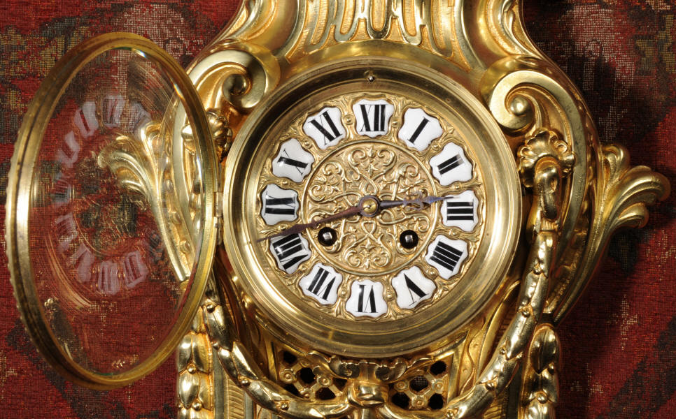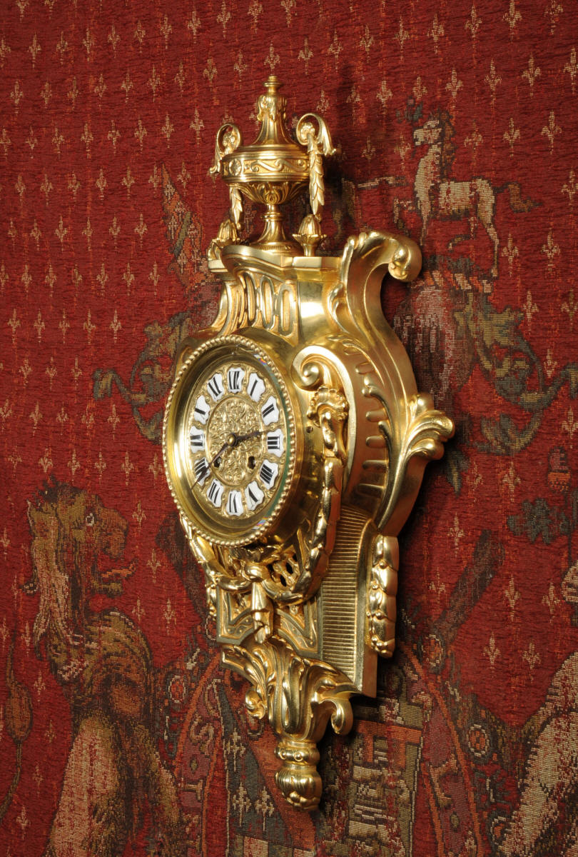 A very decorative, original antique French gilt bronze cartel wall clock by the