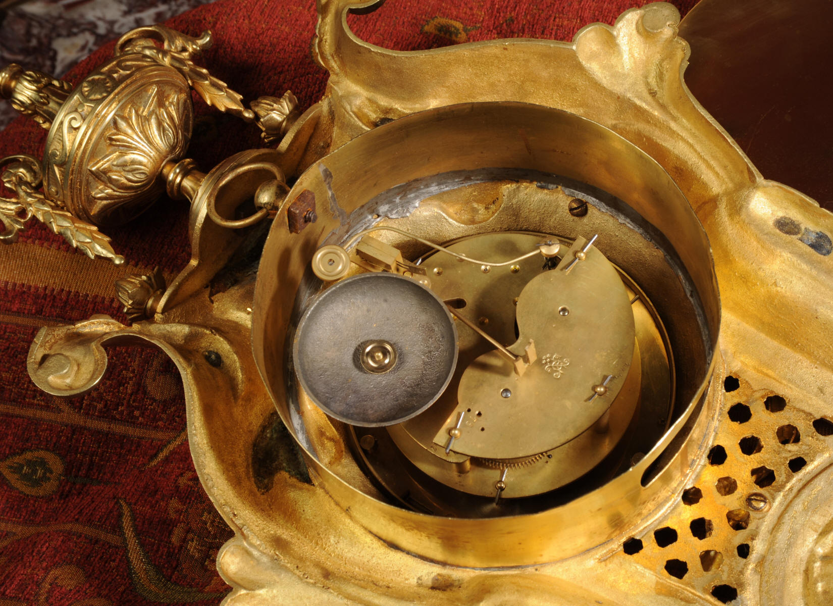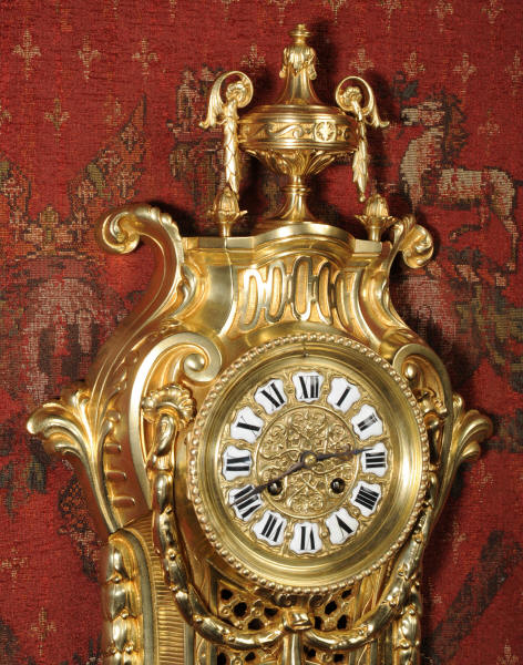 case. The large dial is also gilt bronze with an elaborately decorated centre,