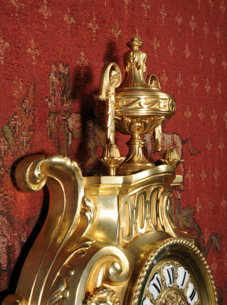The French movement is by Japy Freres and has the clockmakers mark on the movement backplate. It is the more unusual Japy Freres design with pin-pallet escapement, rack strike and large detachable barrels within a split, shaped backplate. It is of high quality and is in excellent clean and running condition having been fully serviced by our clockmaker. Pendulum is a replacement. It runs for 8 days on one wind and strikes the hours and halves on a bell. Click the video clip below to hear the bell and watch the clock running! Condition of the case is excellent, the original gilding is beautifully clean and bright with hardly any wear or discolouration and there are no losses. The dial is also in excellent condition just with no chips or scratches.