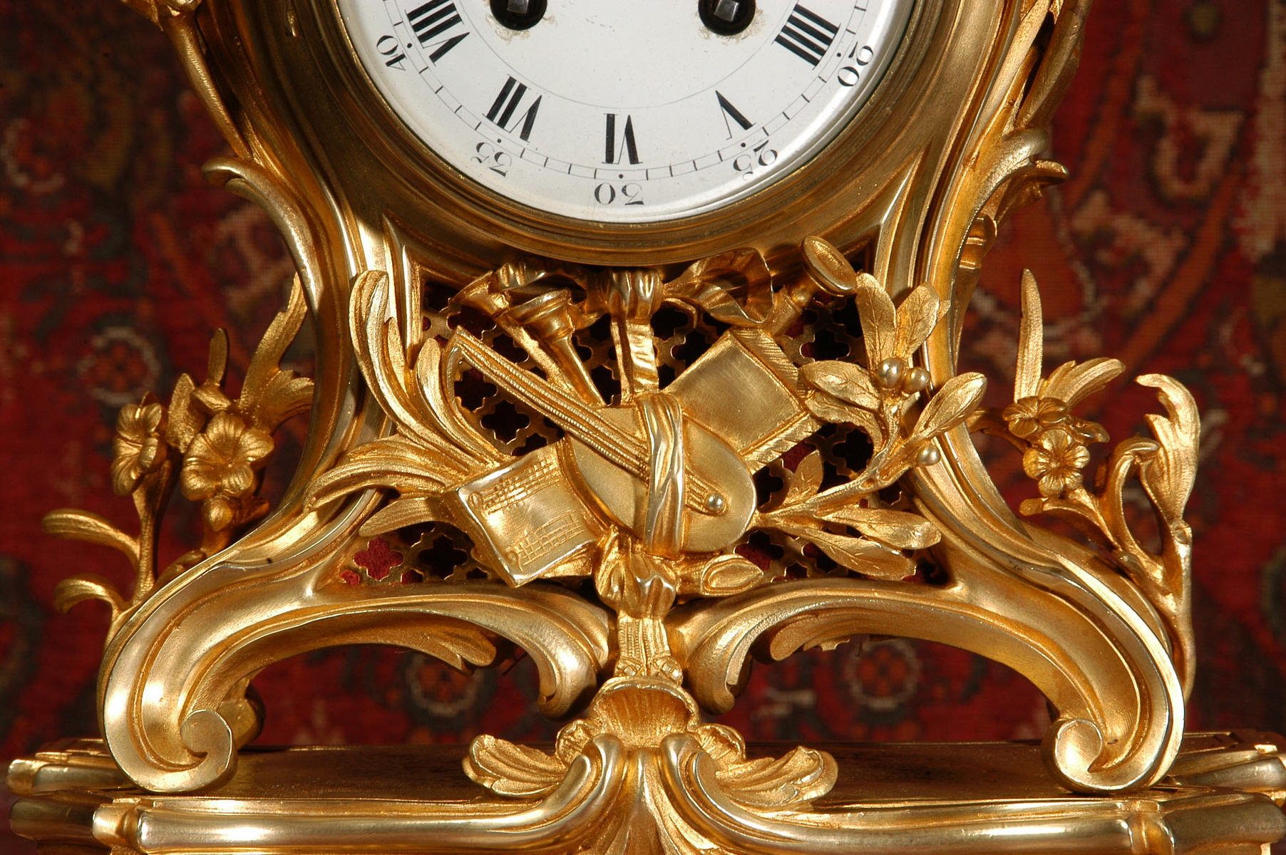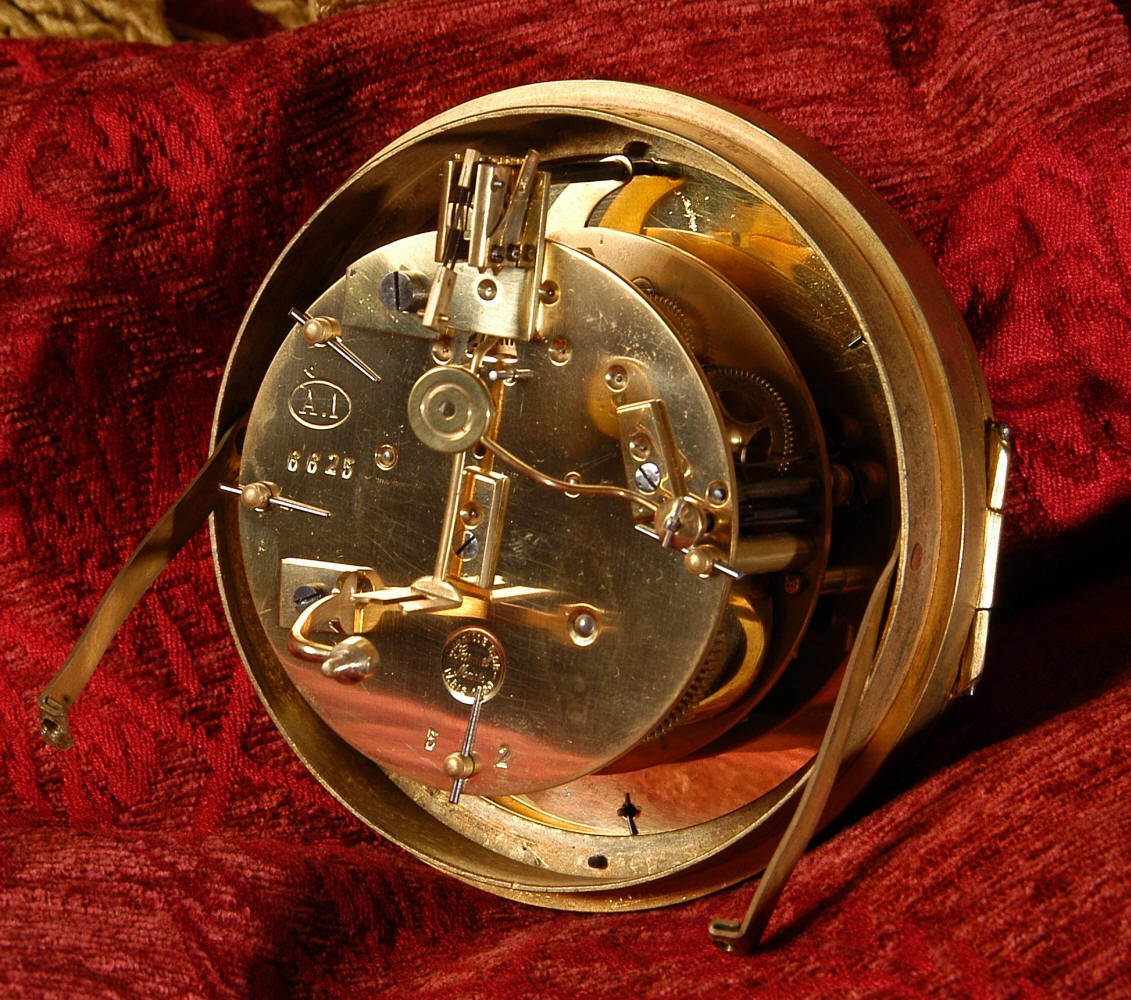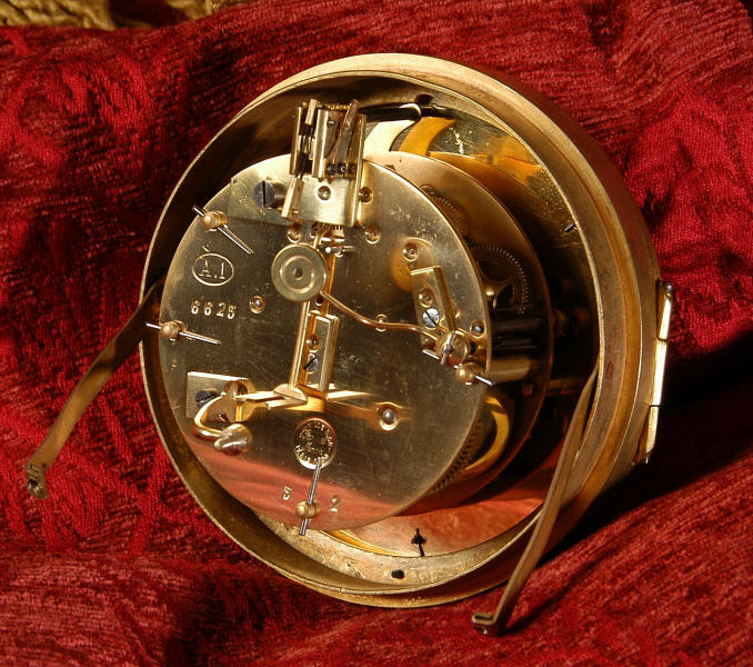 Below the dial is a collection of musical trophies, a lute, pipes and a book of music. The front, rear and the sides of the case have fretted sound panels backed with red velvet. The rear door is glazed to allow the movement to be seen. The design is beautifully bold and heavily moulded in brass, well chased and finished. It is modelled in the round and so would display very well on a table. The French movement is by Samuel Marti and has the makers 'gold medal' mark on the back plate. It is of high quality and is in excellent clean and running condition having been fully overhauled by our clockmaker. Pendulum is a replacement. It runs for 8 days on one wind and strikes the hours and halves on a large, sonorous bell. Click the video clip below to hear the bell and watch the clock running! Condition of the case is excellent with a clean and bright finish and there are no losses. There is some minor wear / surface scratches and discolouration in places. We have replaced the red velvet with new. The dial is also in excellent condition with just a some minor nibbles around the winding holes and a couple of light marks. This is a stunning clock in excellent condition, ready for your collection.