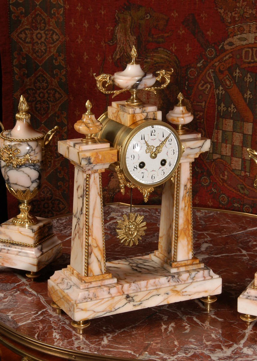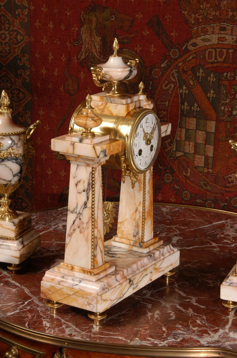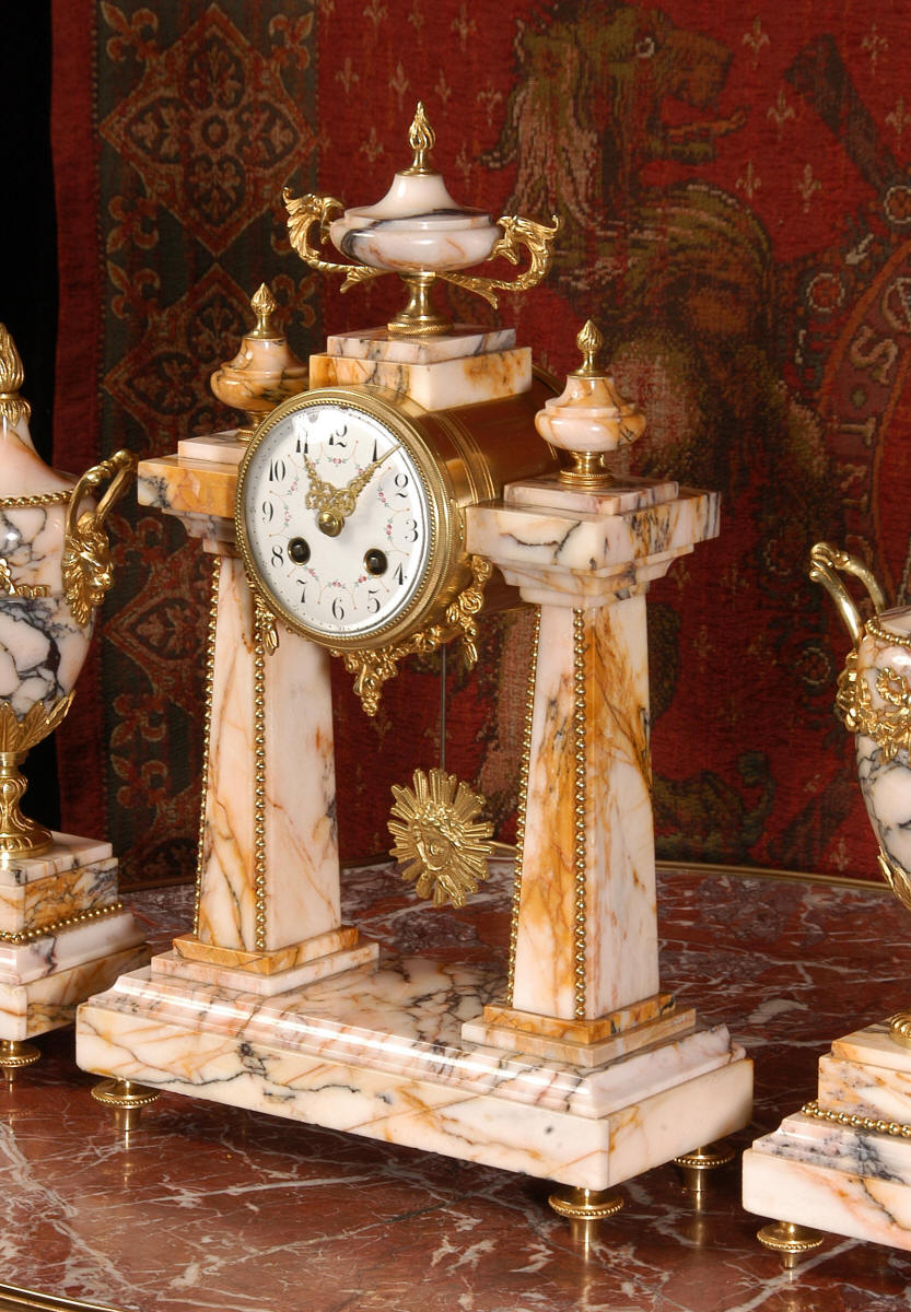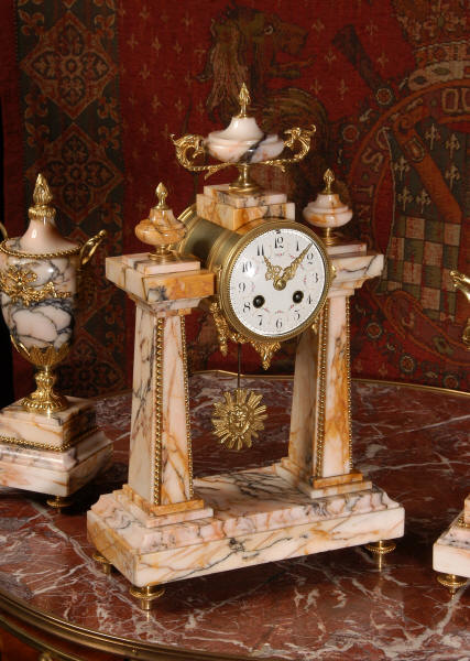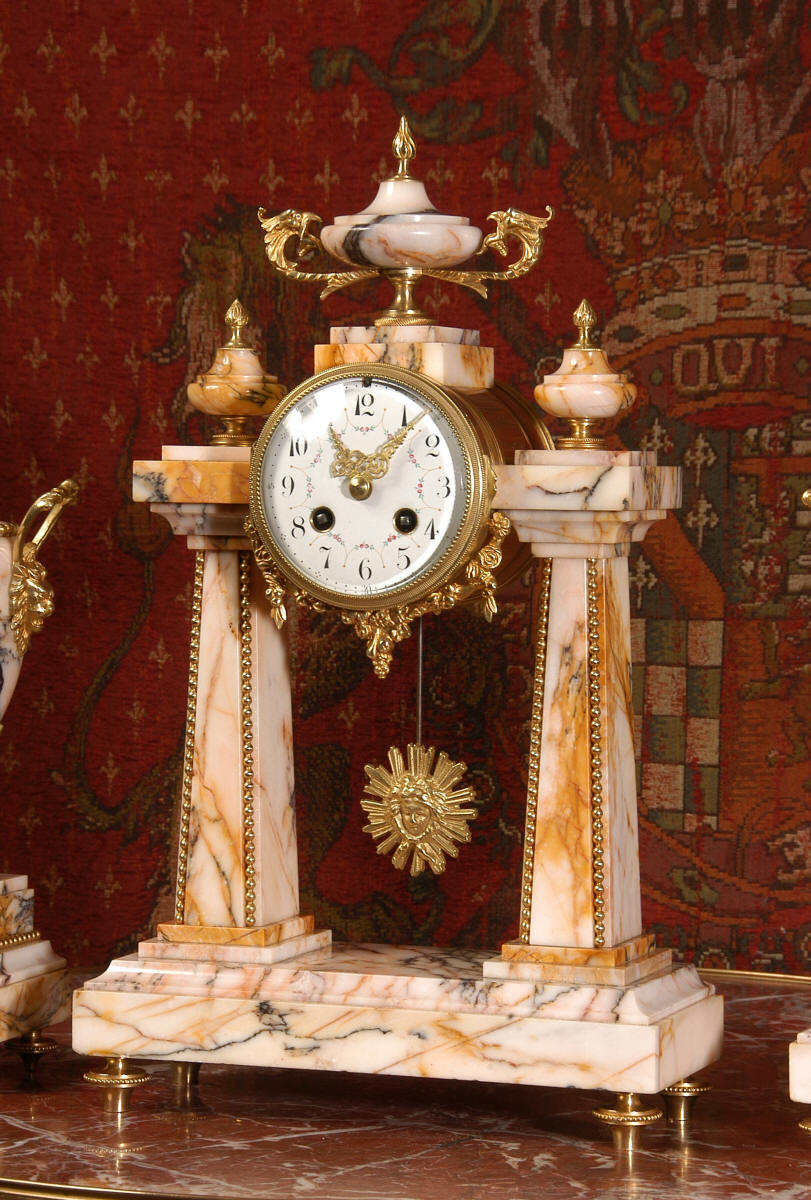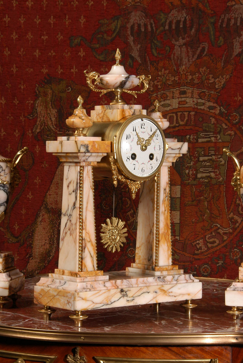 Marble and Ormolu Portico Clock Set